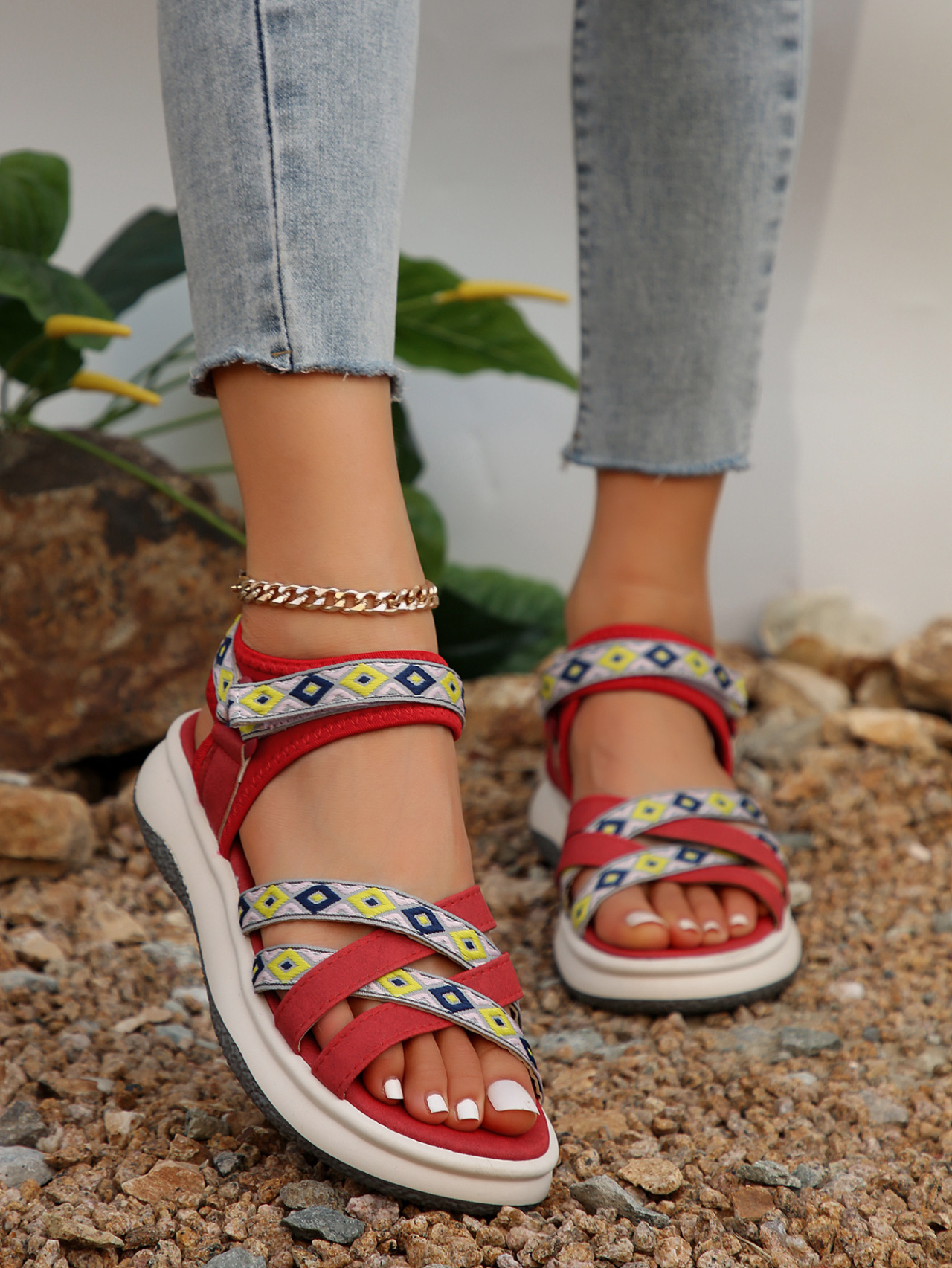 대외 무역 2024 여름 새로운 색상 매칭 패션 민족 스타일 경량 비치 슈즈 크로스 오픈 발가락 소프트 두꺼운 밑창 샌들
