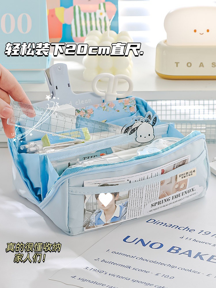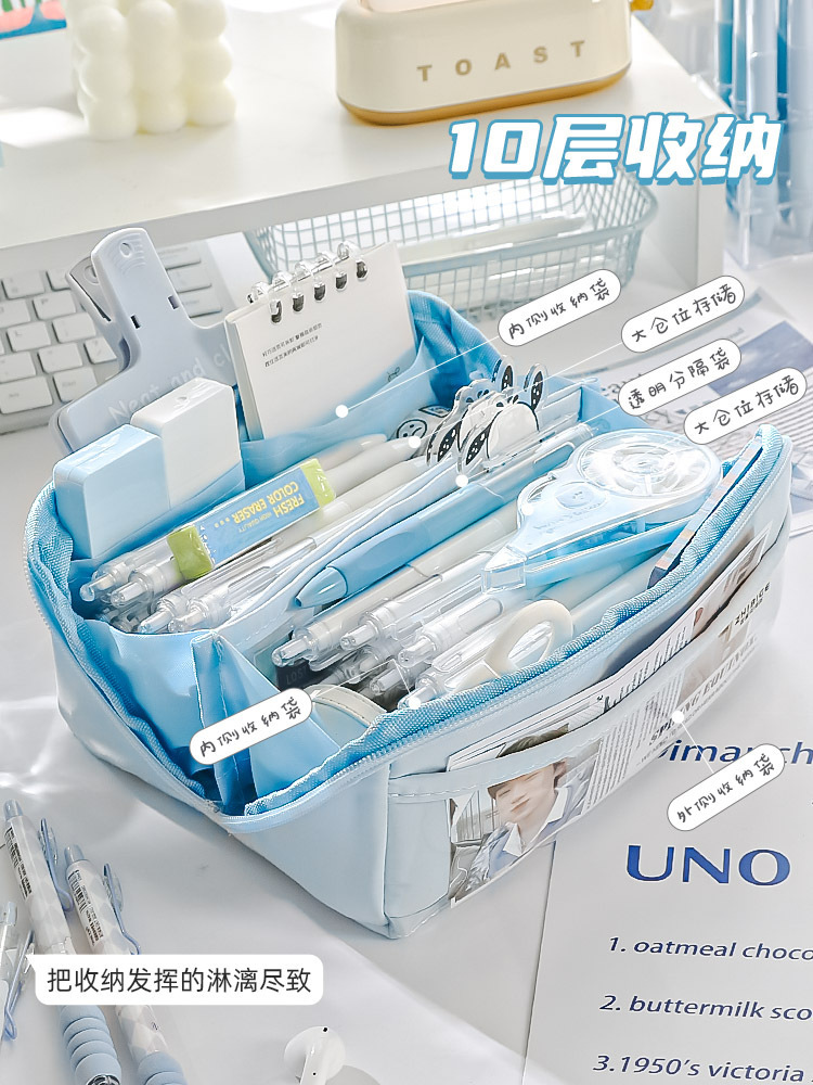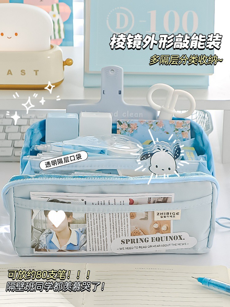 10 층 프리즘 투명 연필 케이스 일본 스타일 대용량 중학교 소년과 소녀 간단한 연필 케이스 판매