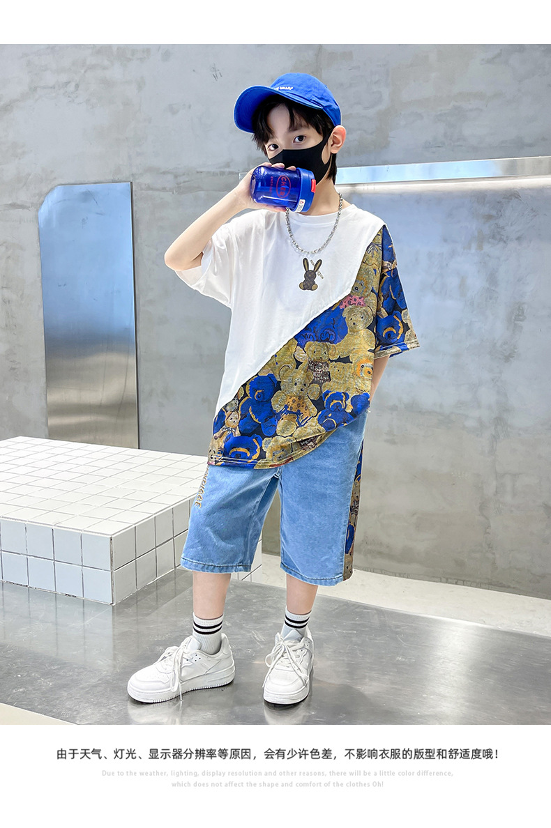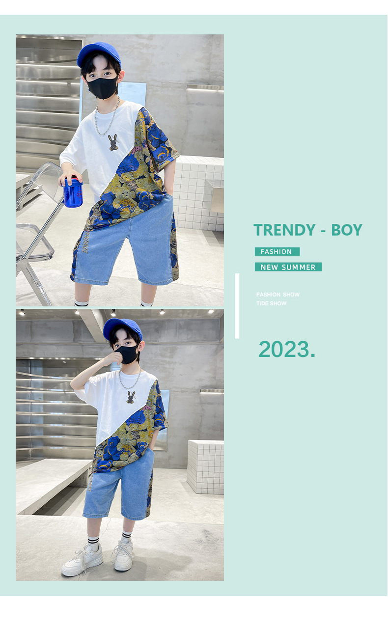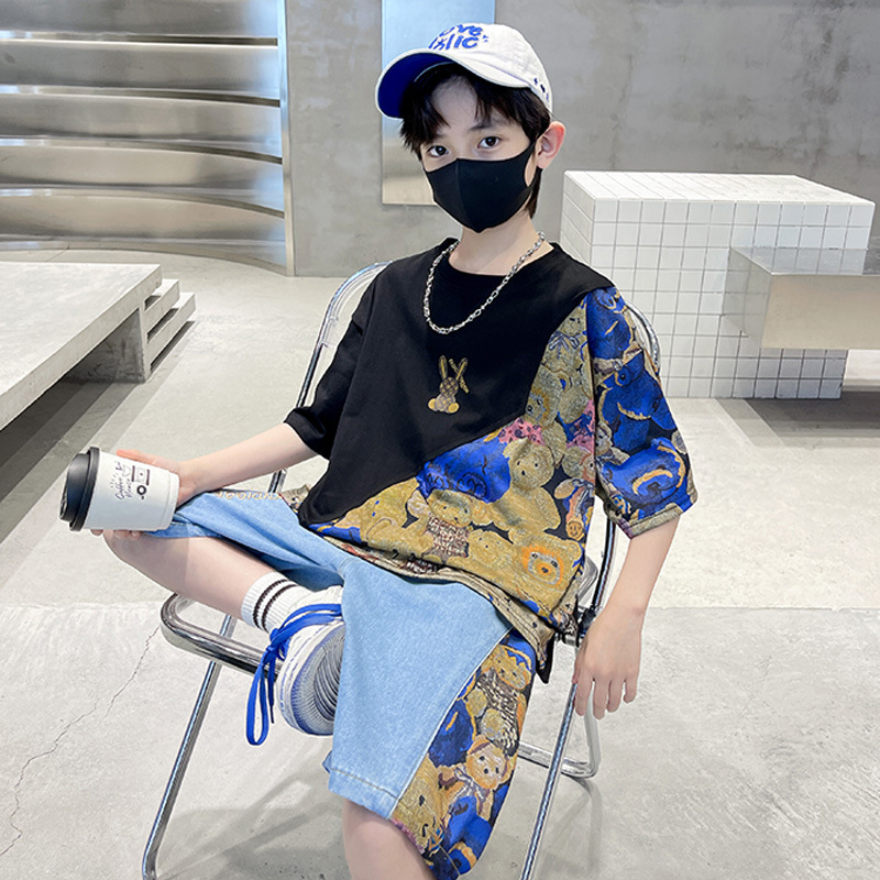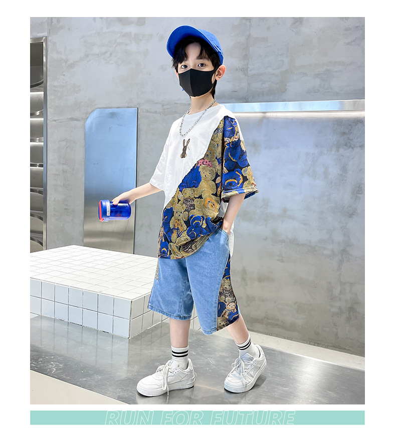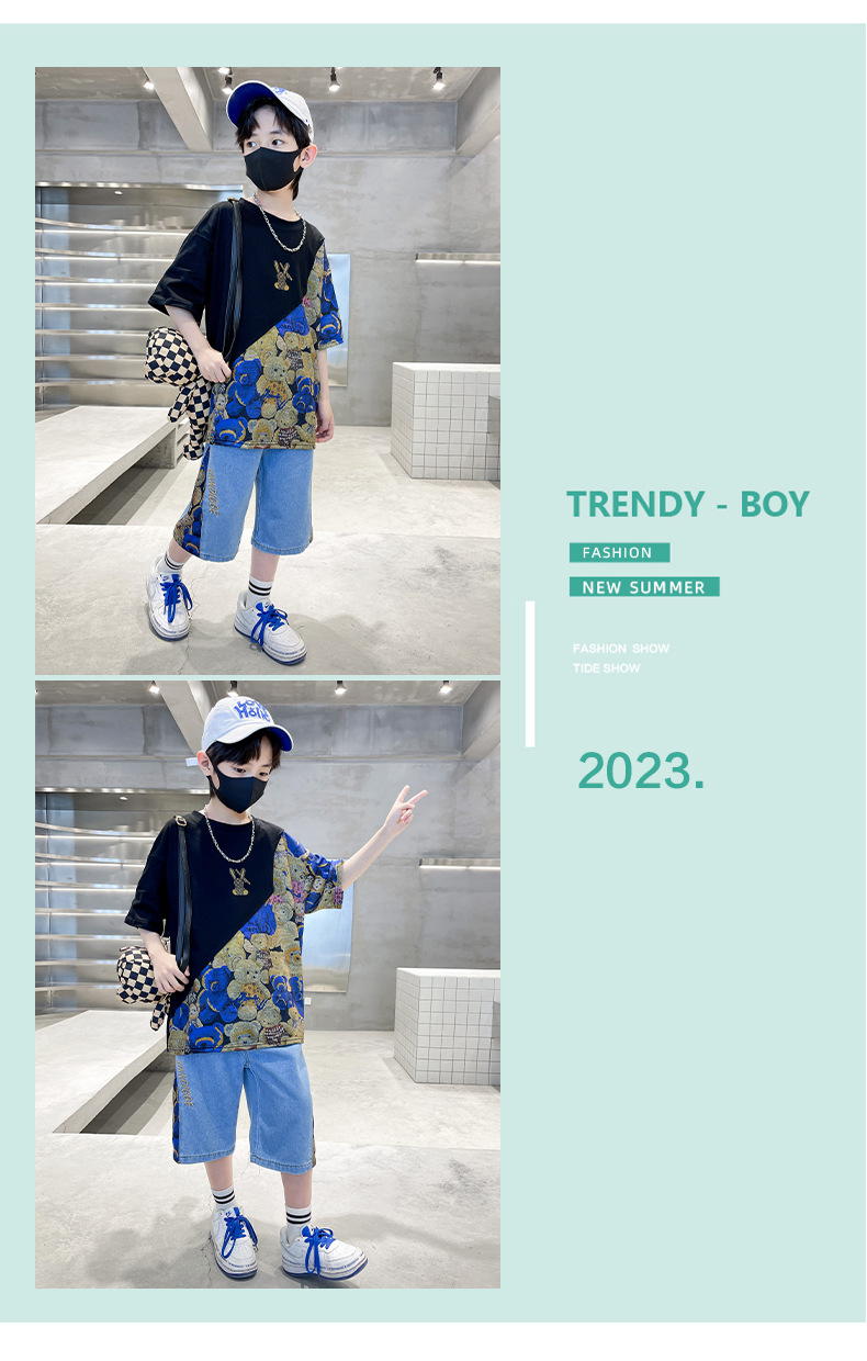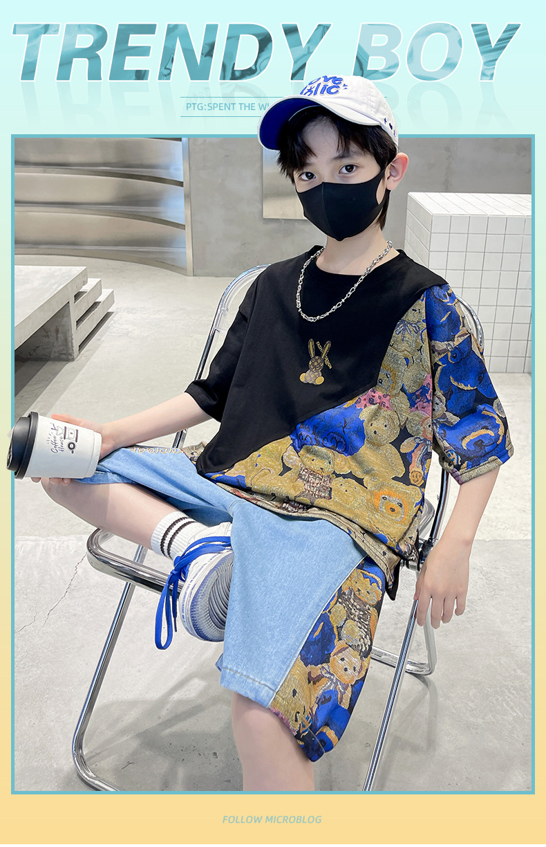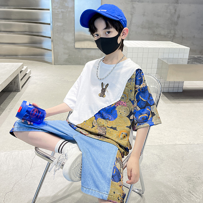 남자들의 여름 세트 소년 2024 새로운 어린이 인터넷 연예인 유행 잘 생긴 스포츠 여름 옷스토어 가기