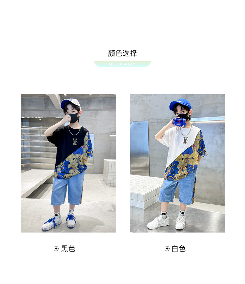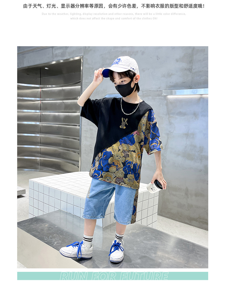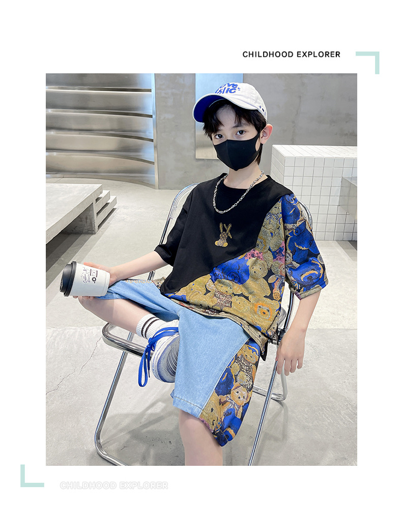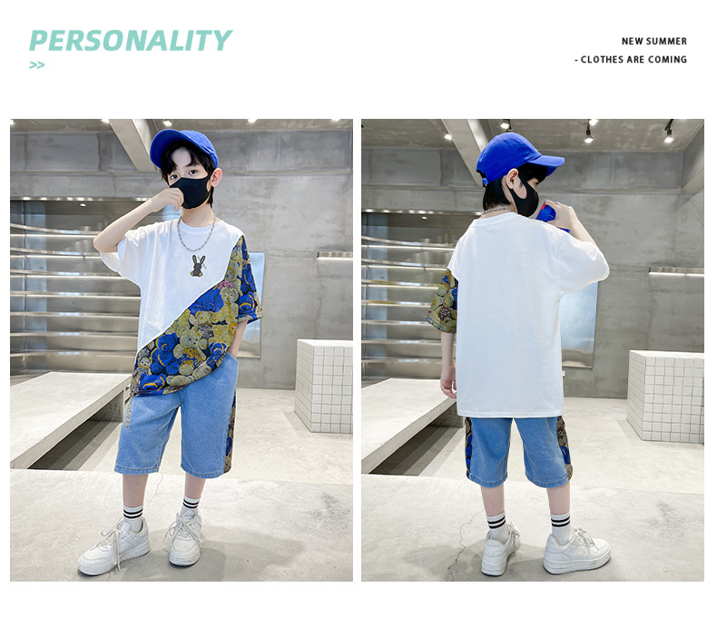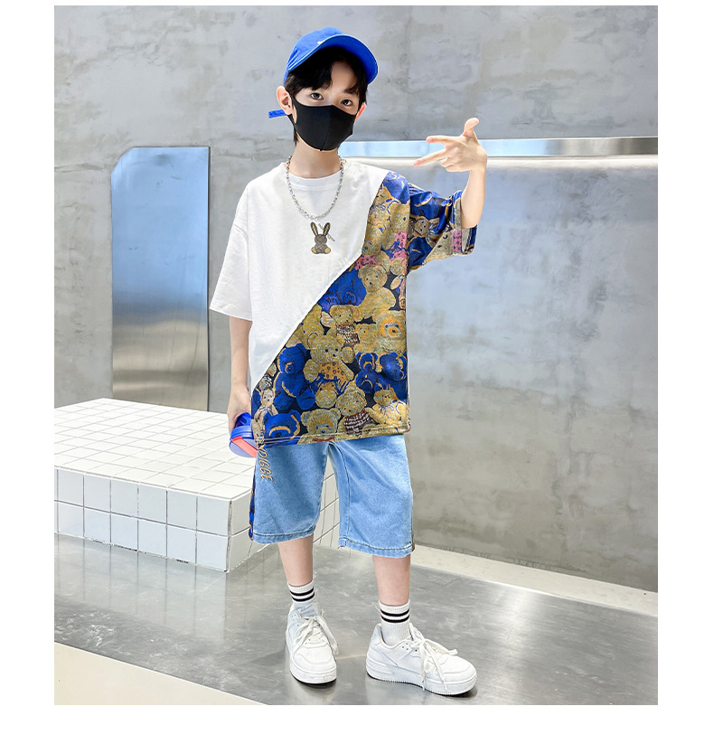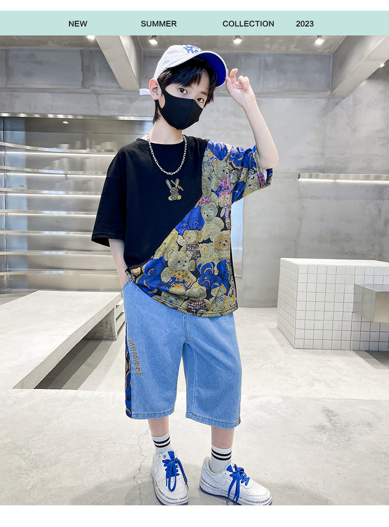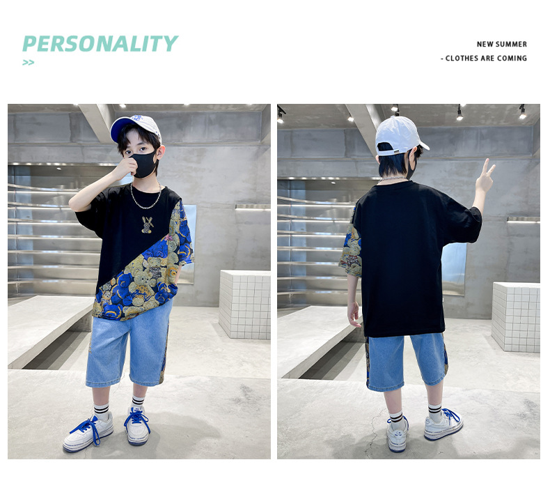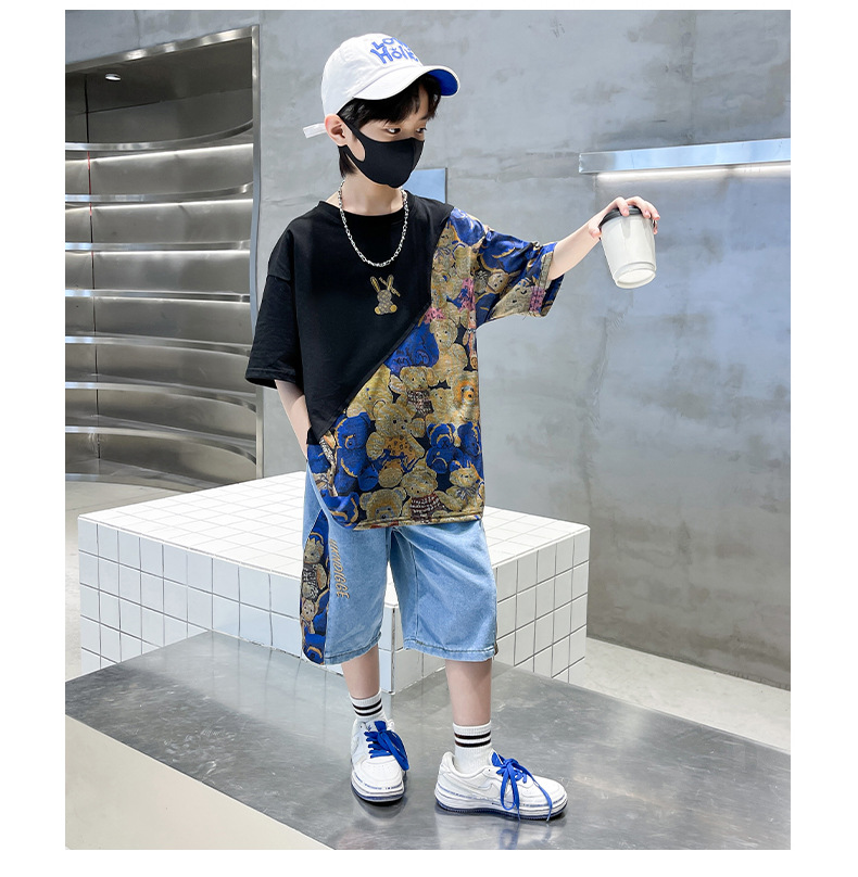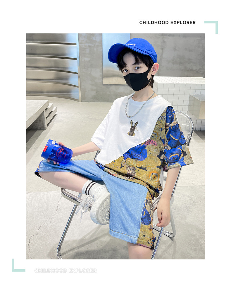 남자들의 여름 세트 소년 2024 새로운 어린이 인터넷 연예인 유행 잘 생긴 스포츠 여름 옷스토어 가기
