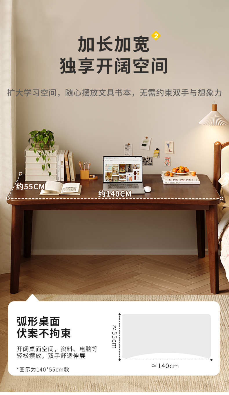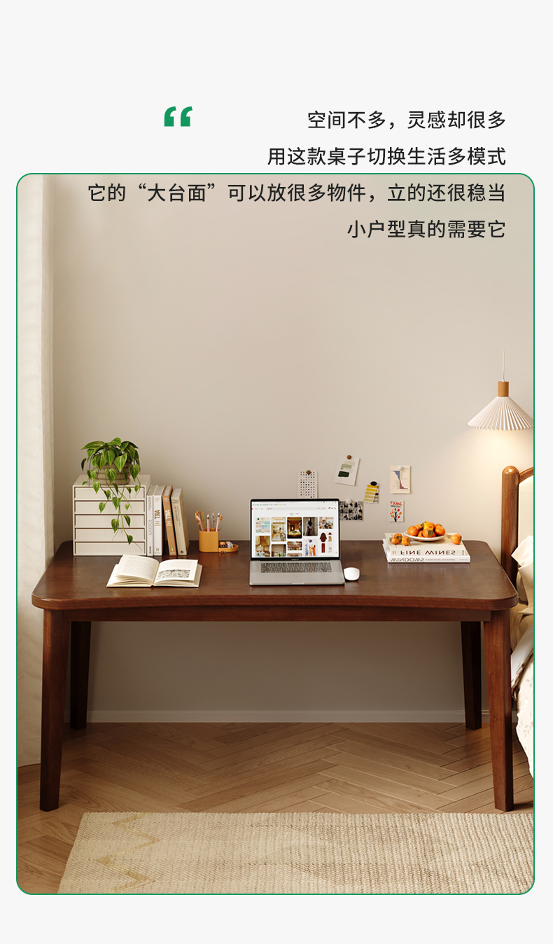 小户型家用实木书桌台式电脑桌卧室简易学习桌子成人办公靠墙窄桌