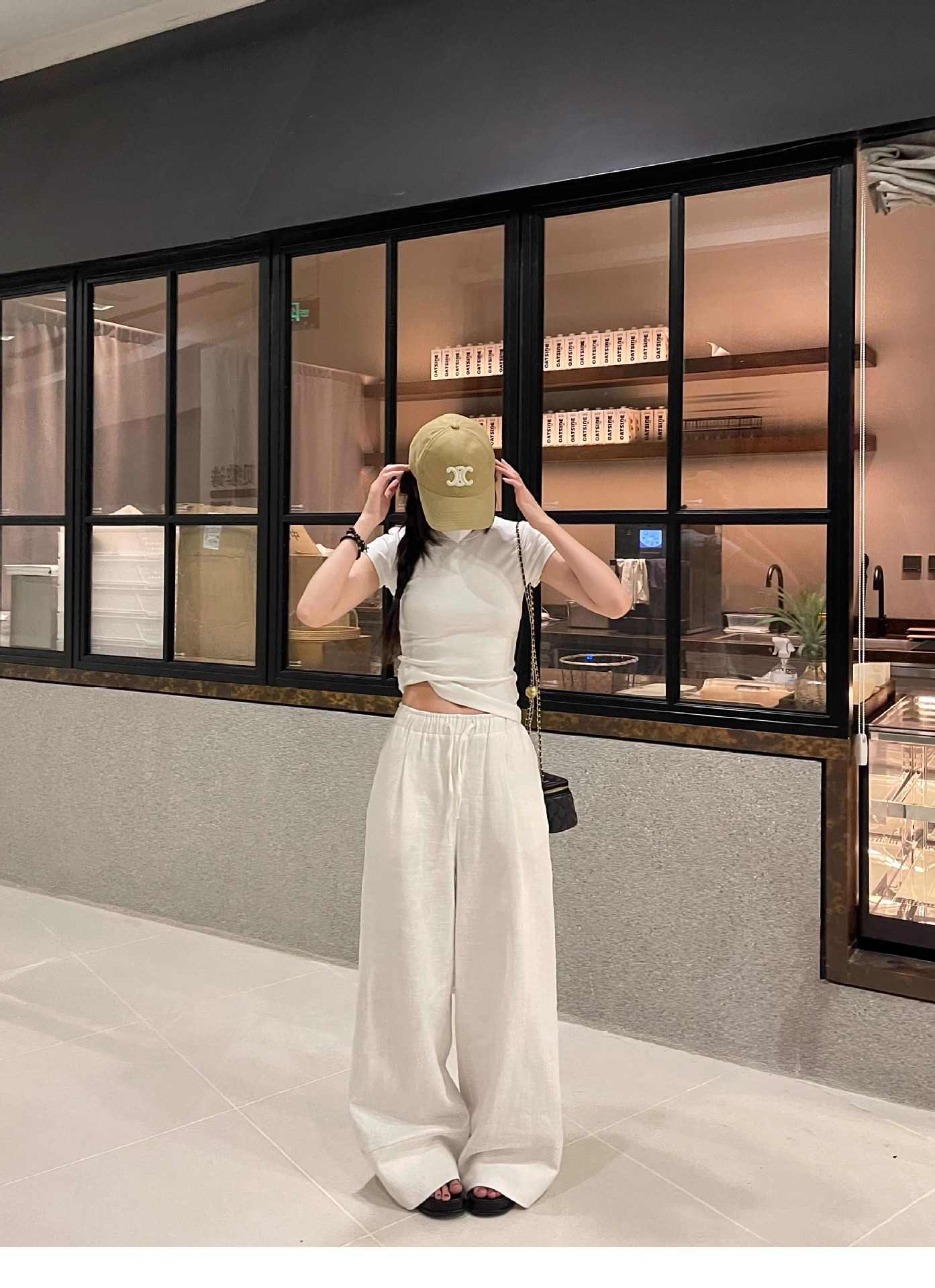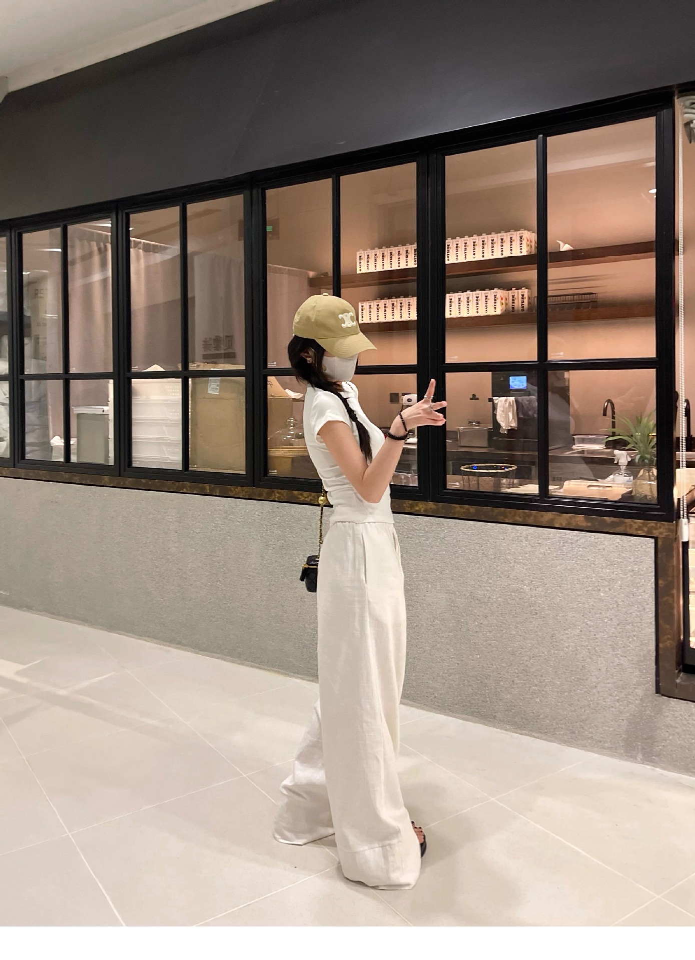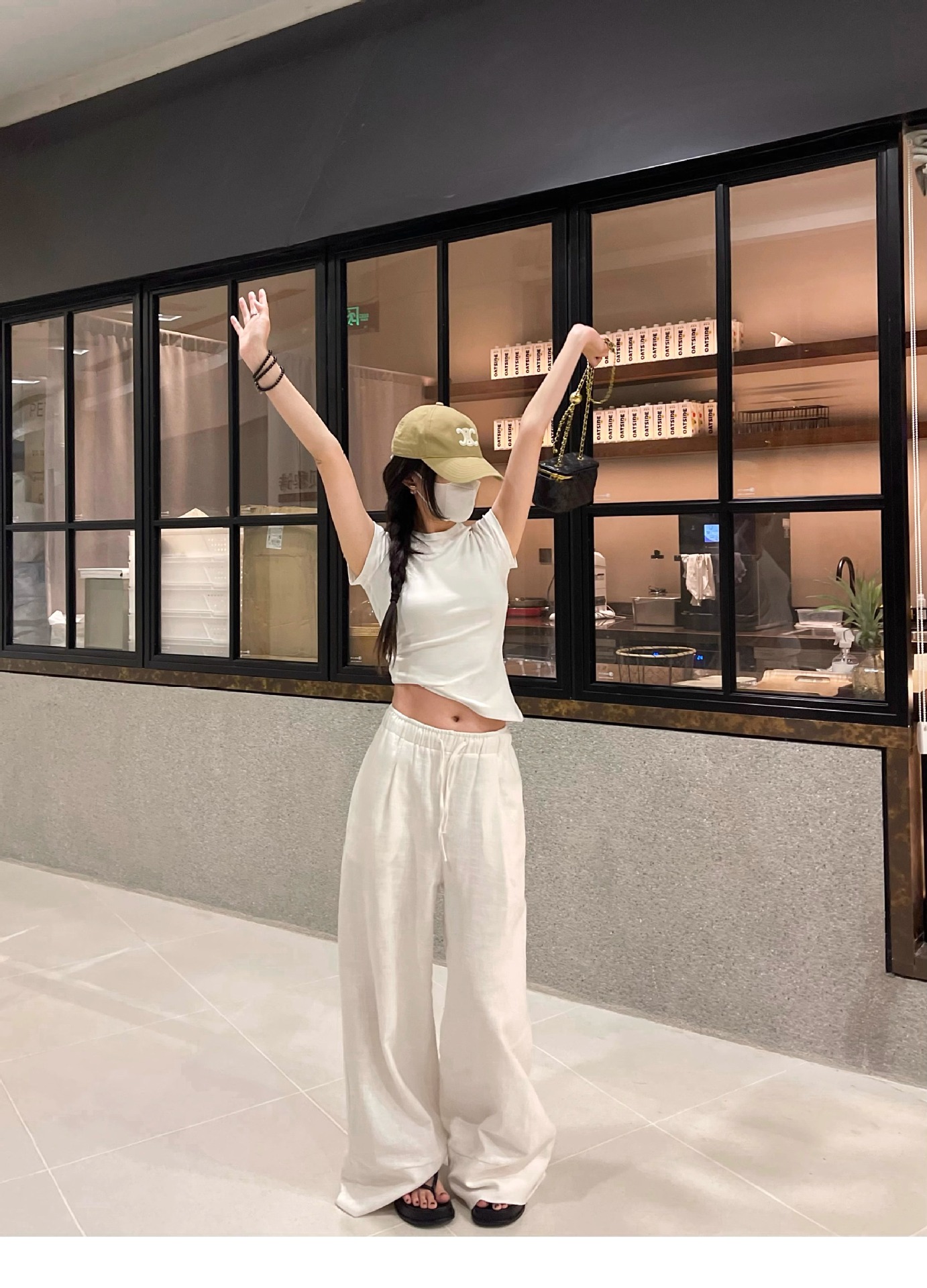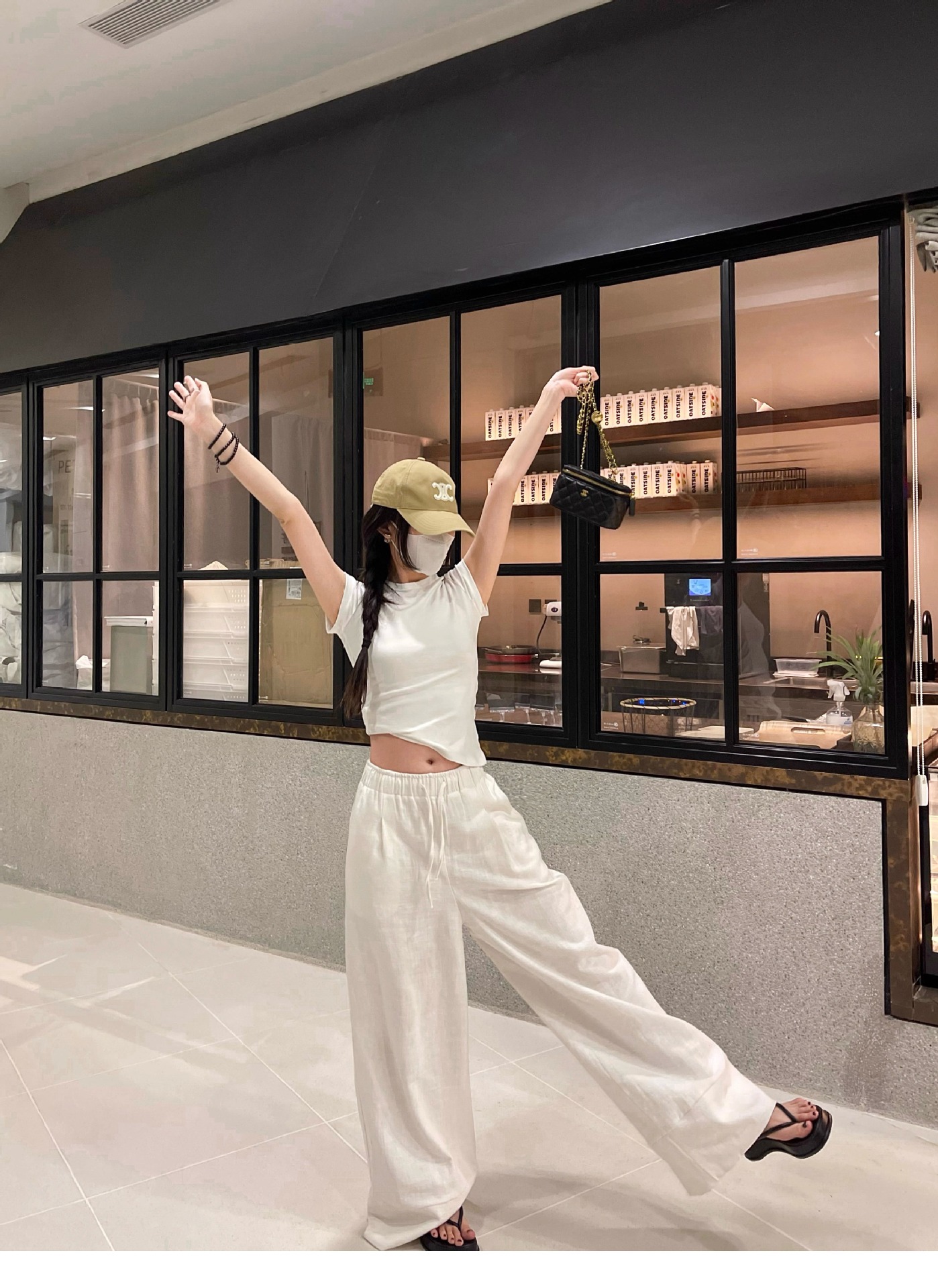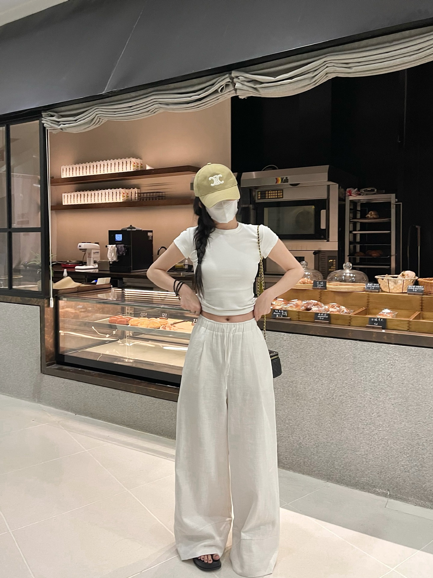 不会透的水洗白色苎麻裤宽松阔腿裤薄款棉麻裤子女夏季亚麻遛弯裤