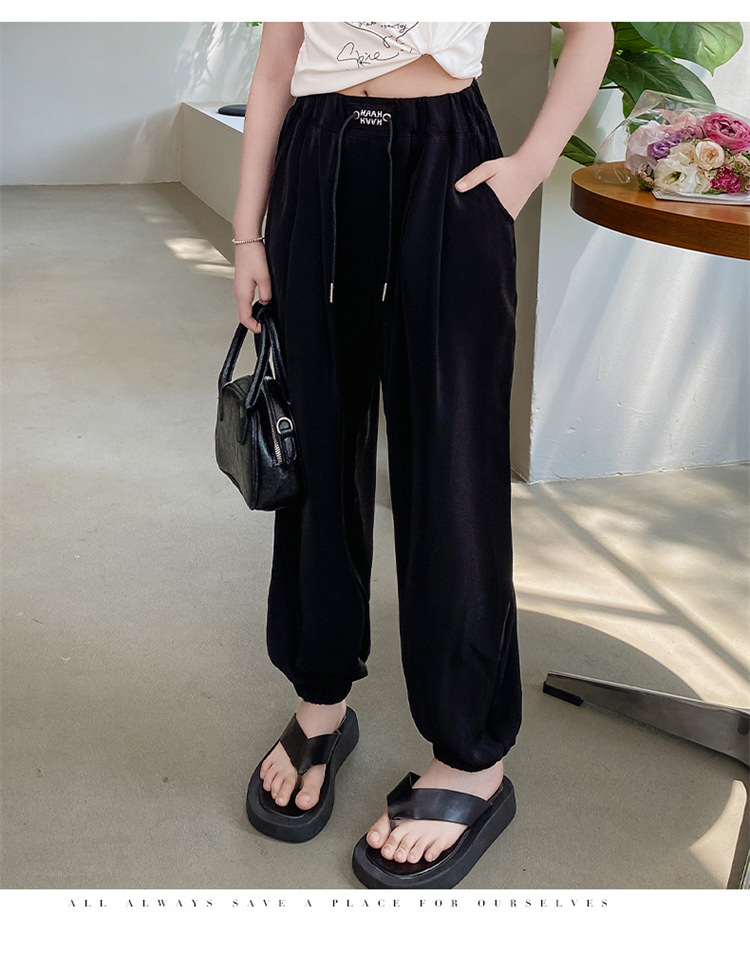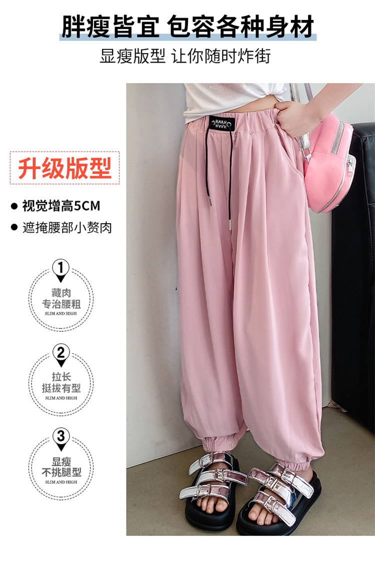소녀 안티 모기 바지 여름 얇은 2024 새로운 어린이 큰 어린이 여름 아이스 실크 소녀 바지 캐주얼 스포츠