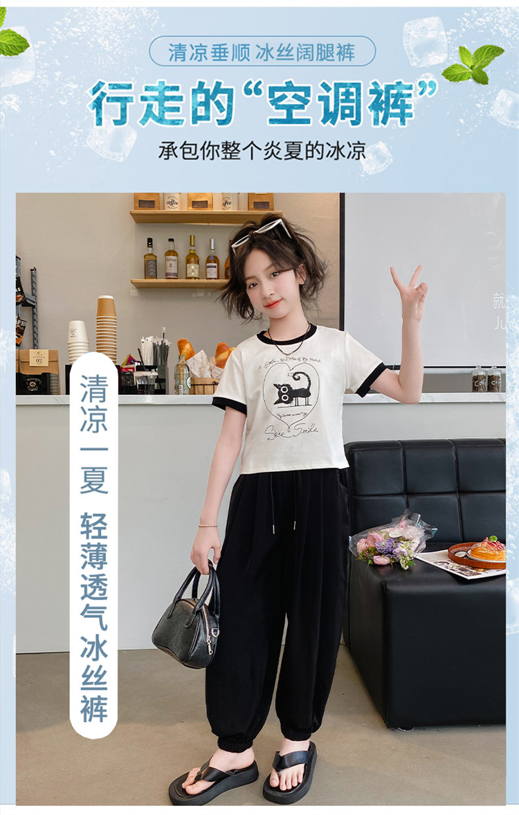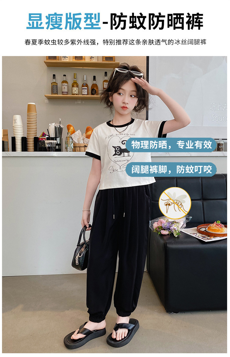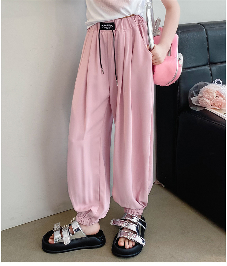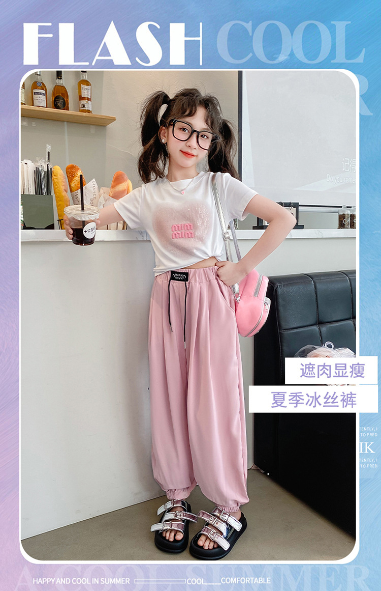 소녀 안티 모기 바지 여름 얇은 2024 새로운 어린이 큰 어린이 여름 아이스 실크 소녀 바지 캐주얼 스포츠스토어 가기