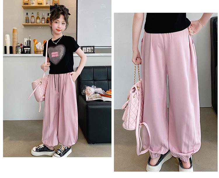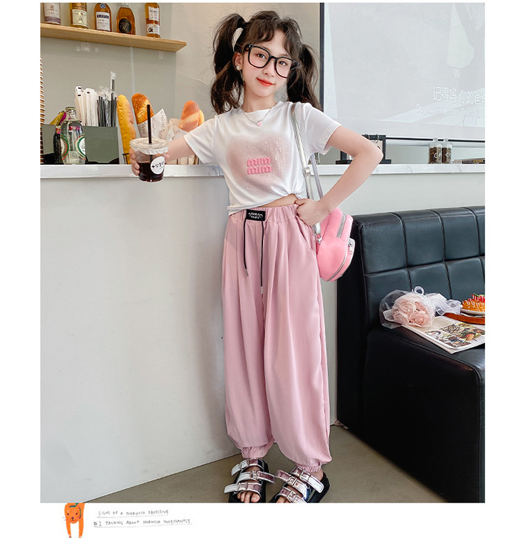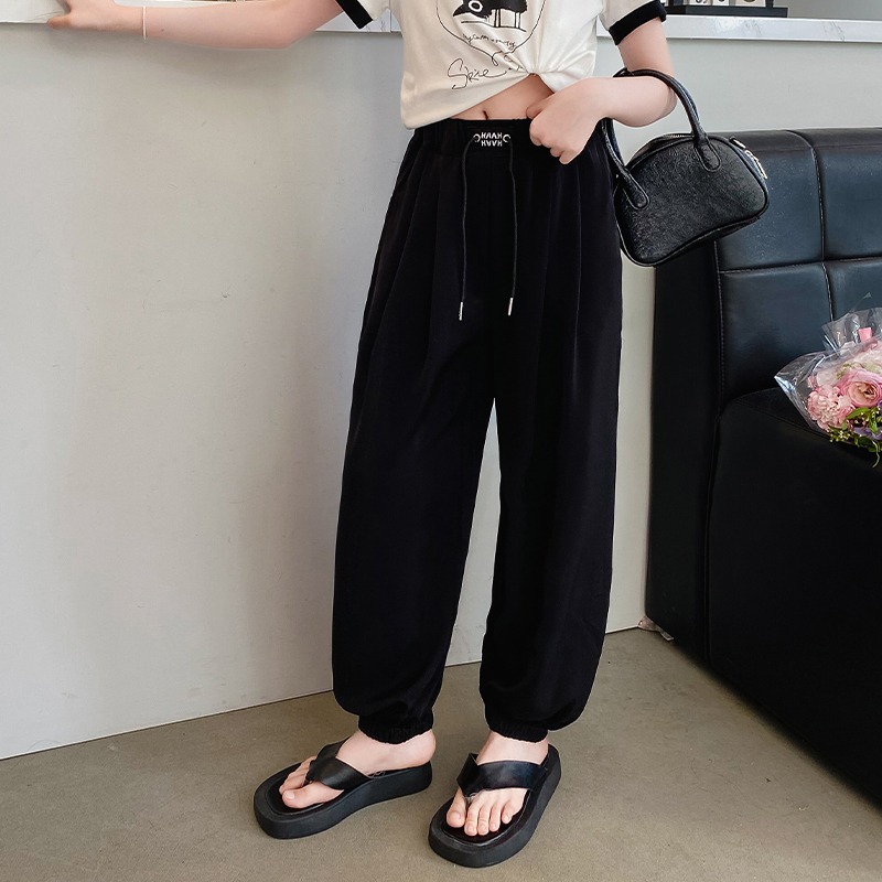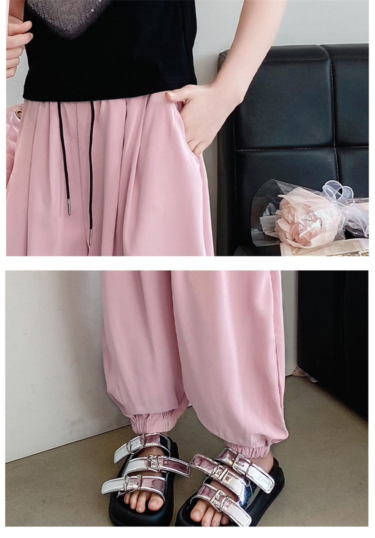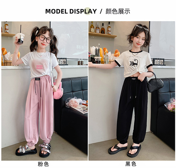 소녀 안티 모기 바지 여름 얇은 2024 새로운 어린이 큰 어린이 여름 아이스 실크 소녀 바지 캐주얼 스포츠스토어 가기