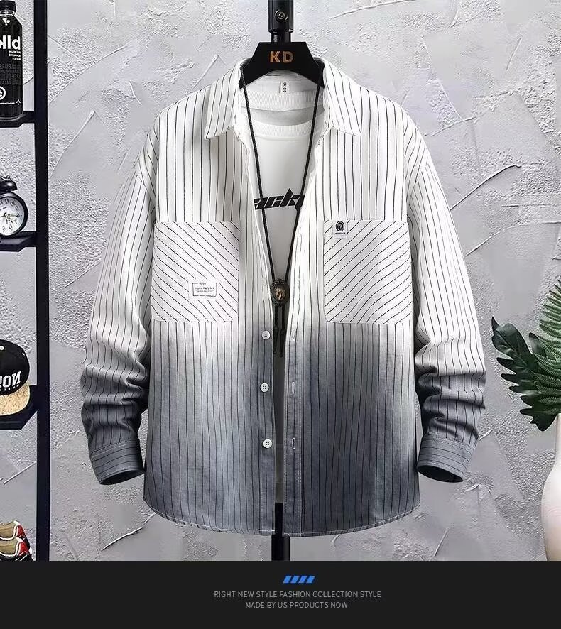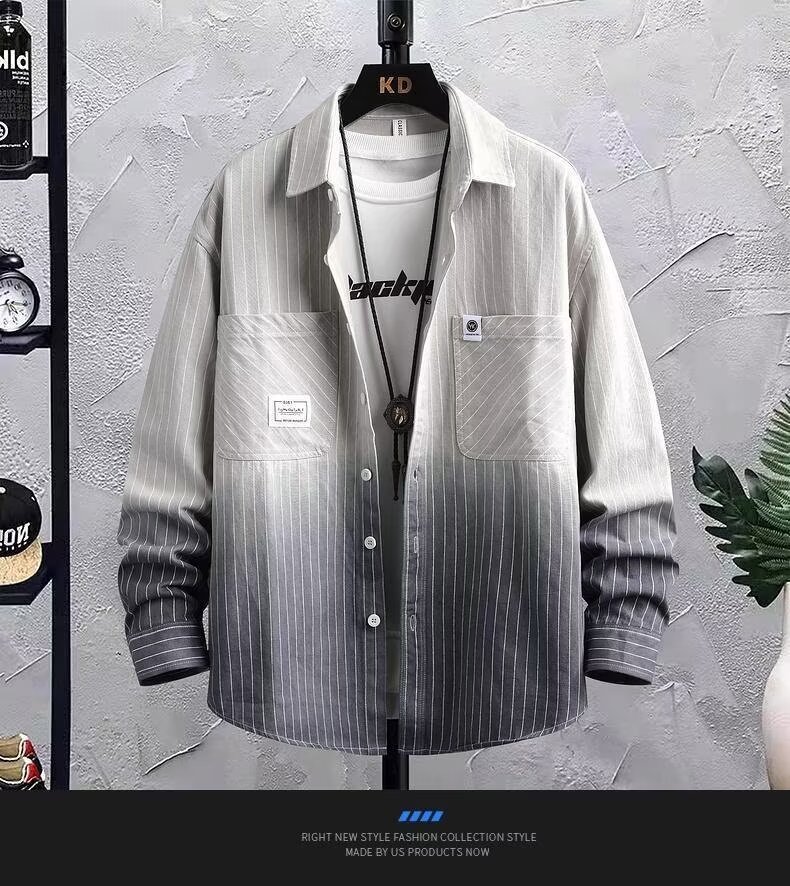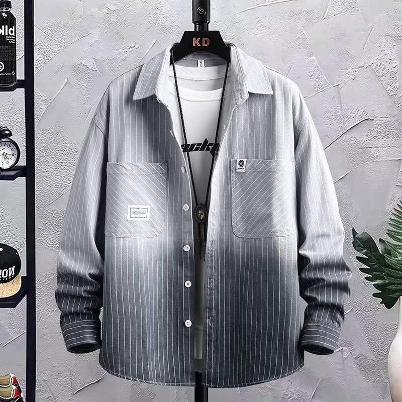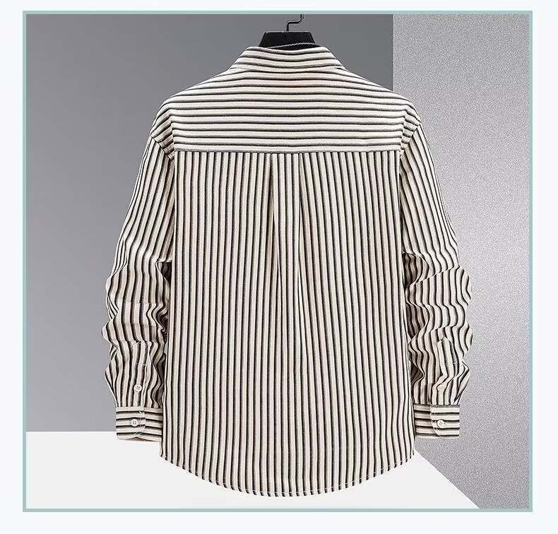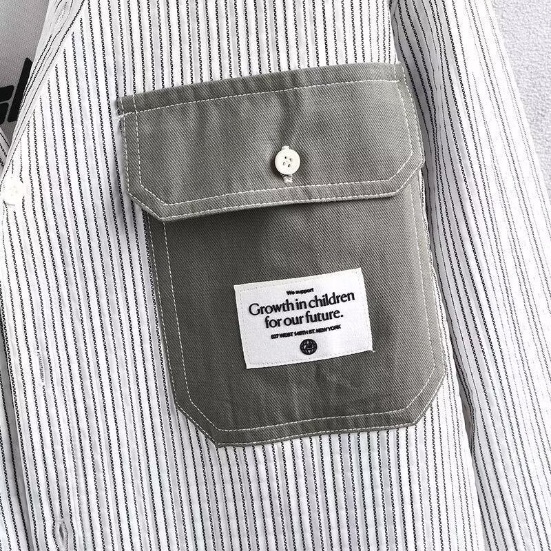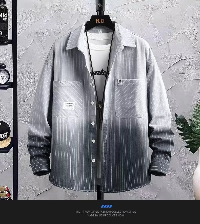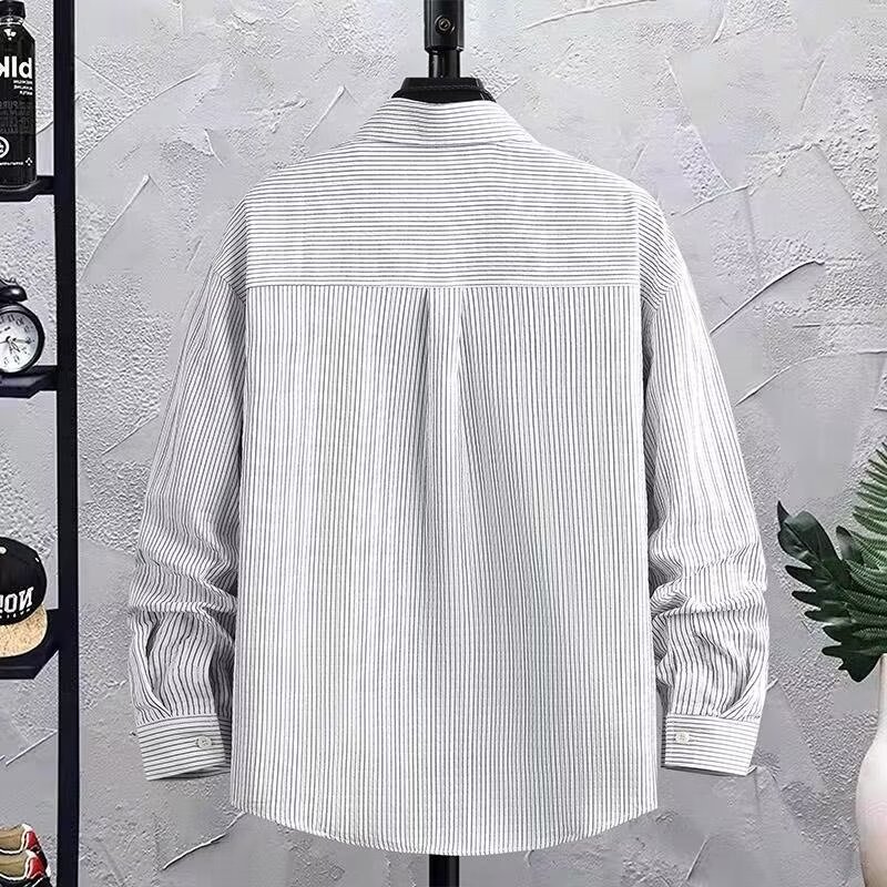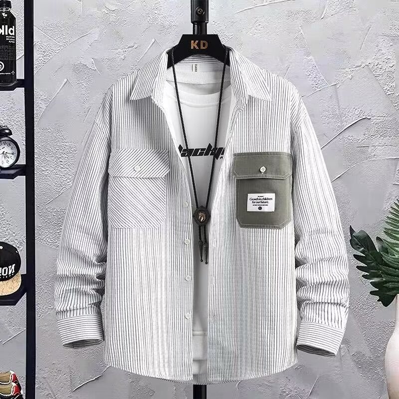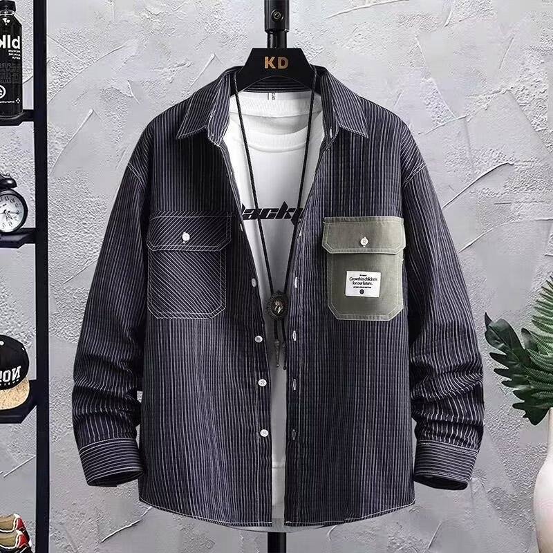 긴 소매 셔츠 남자 홍콩 스타일 트렌디 인 캐주얼 스트라이프 셔츠 잘 생긴 올매치 느슨한 작업복 셔츠 재킷스토어 가기