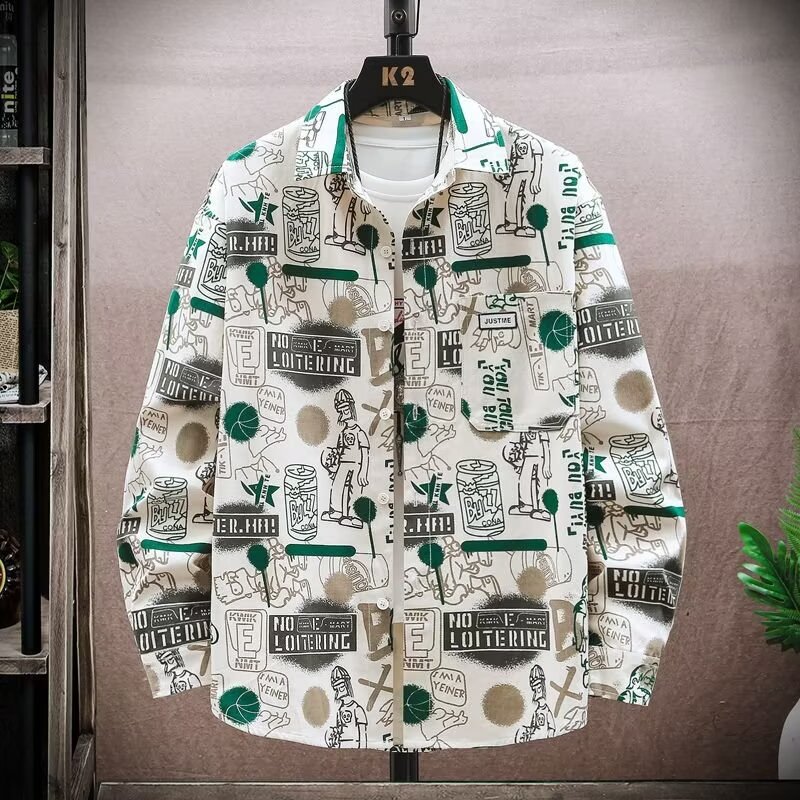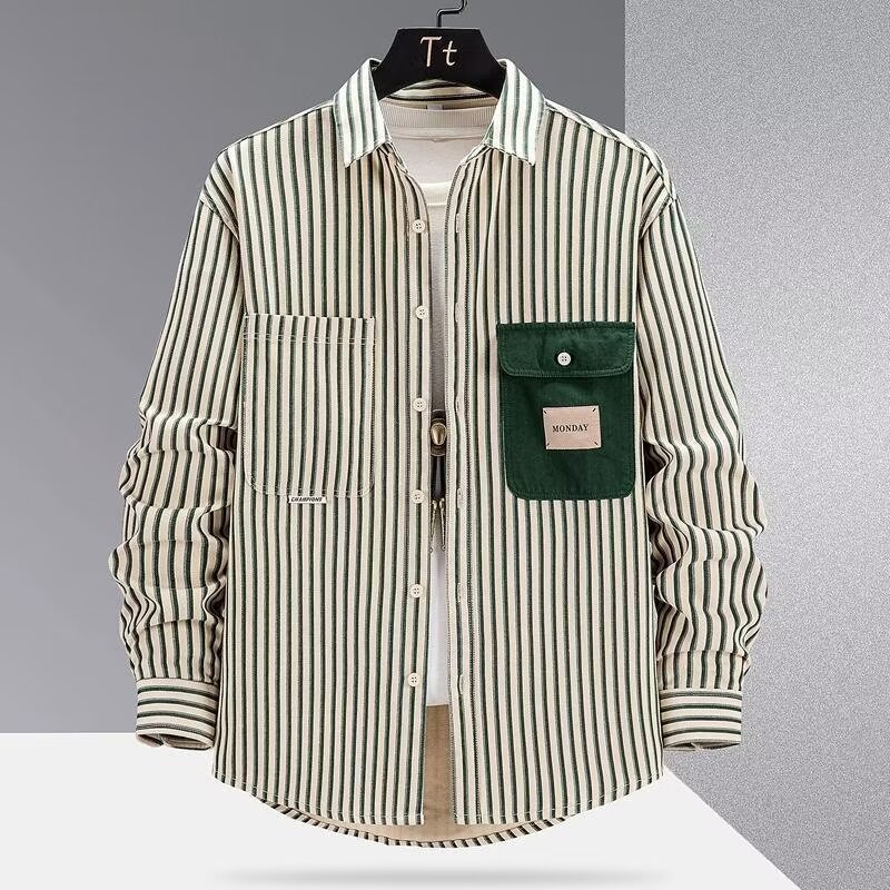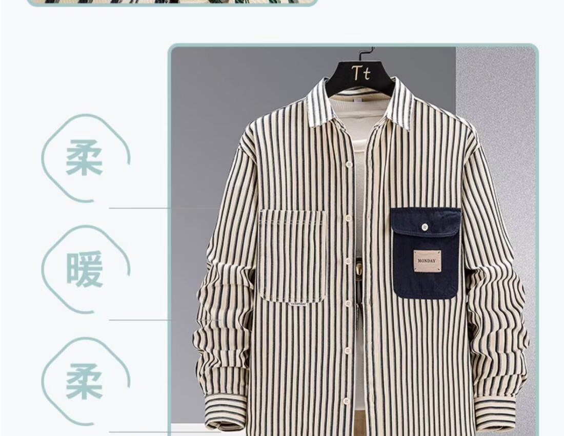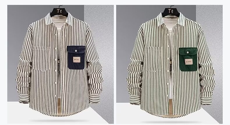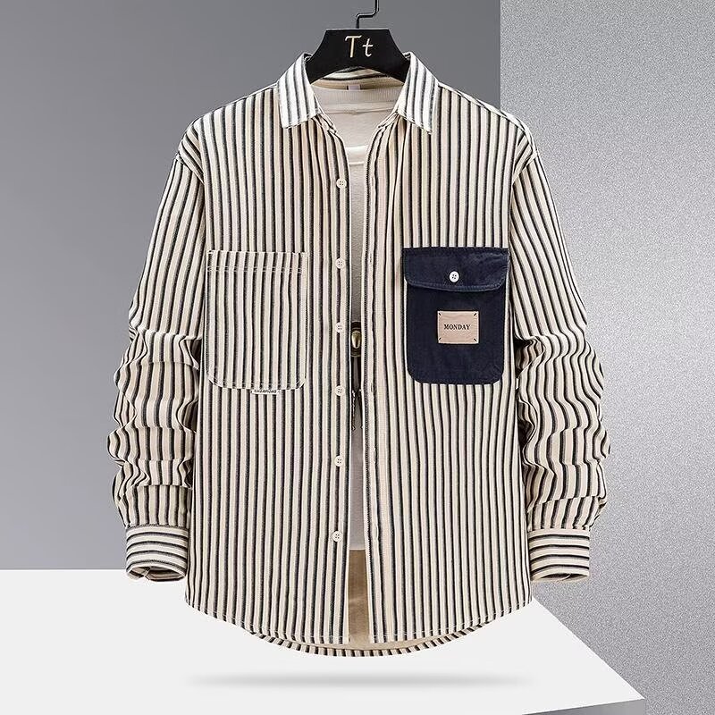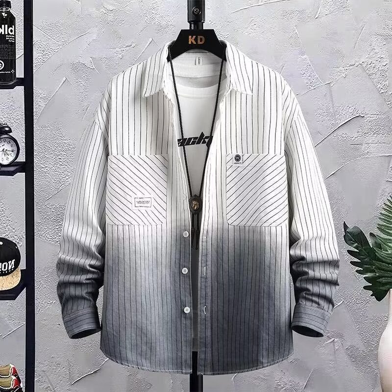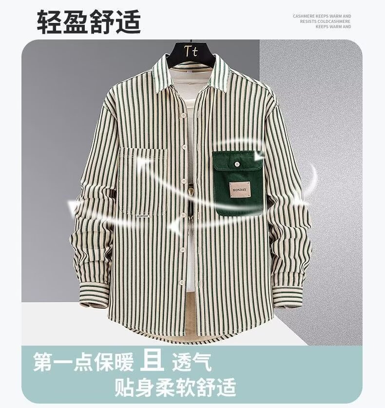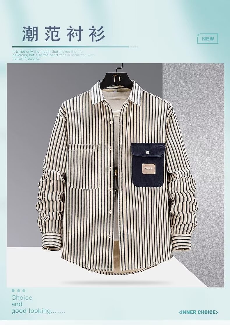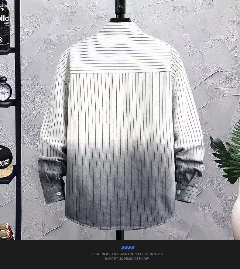 긴 소매 셔츠 남자 홍콩 스타일 트렌디 인 캐주얼 스트라이프 셔츠 잘 생긴 올매치 느슨한 작업복 셔츠 재킷스토어 가기