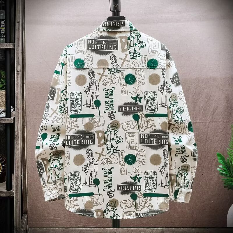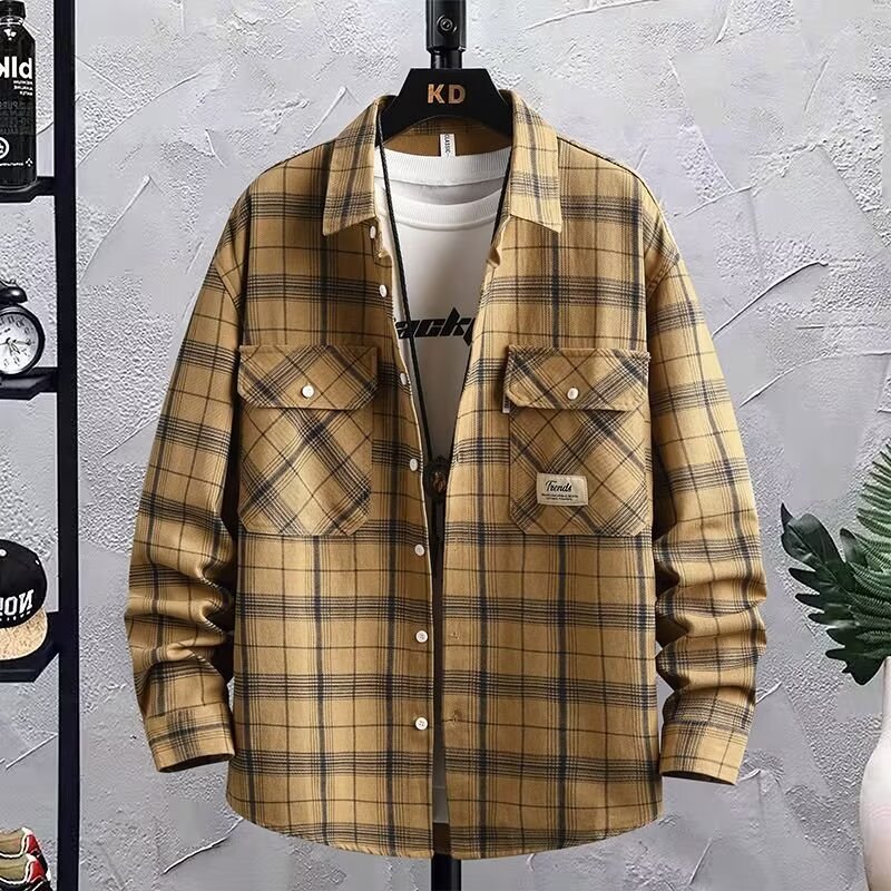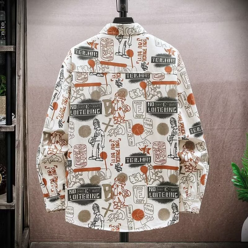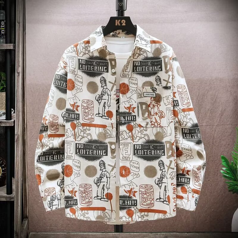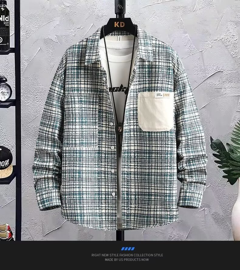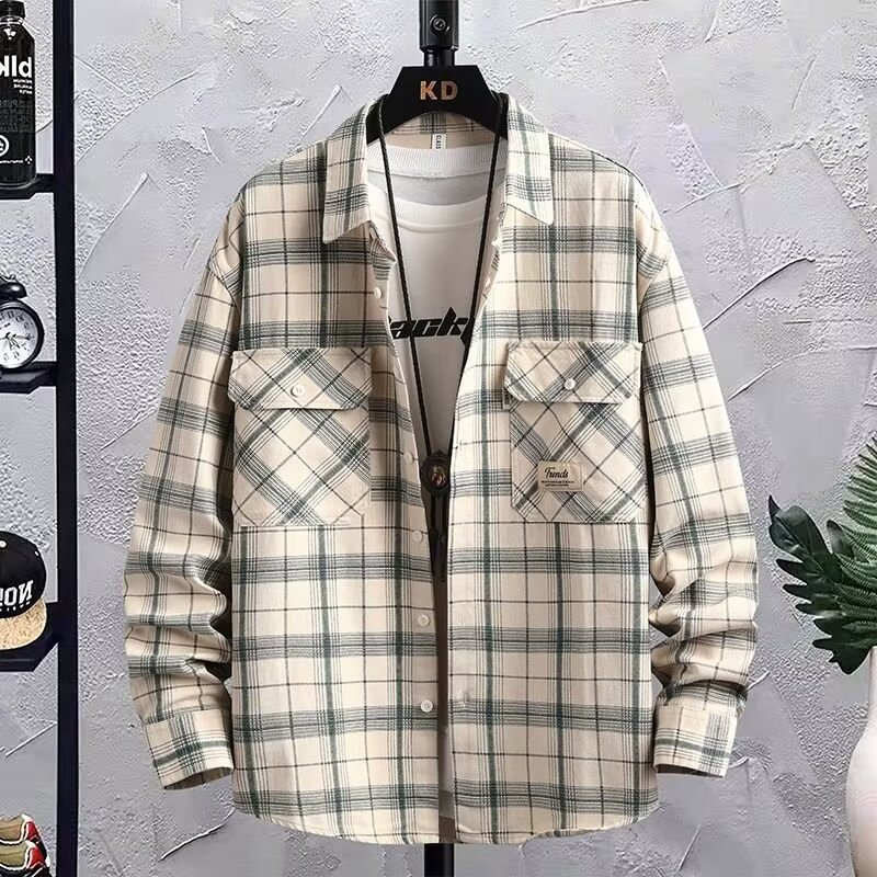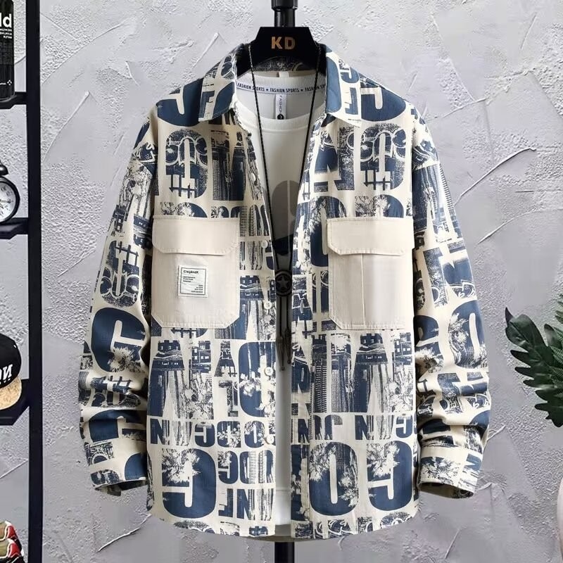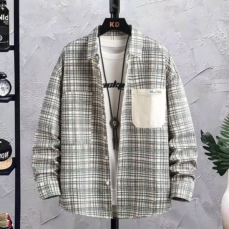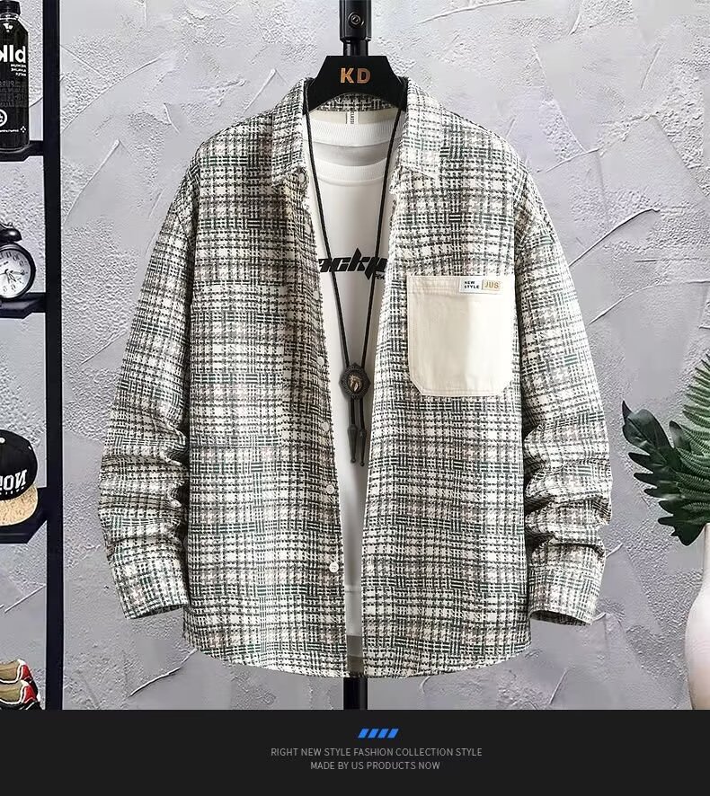 긴 소매 셔츠 남자 홍콩 스타일 트렌디 인 캐주얼 스트라이프 셔츠 잘 생긴 올매치 느슨한 작업복 셔츠 재킷스토어 가기