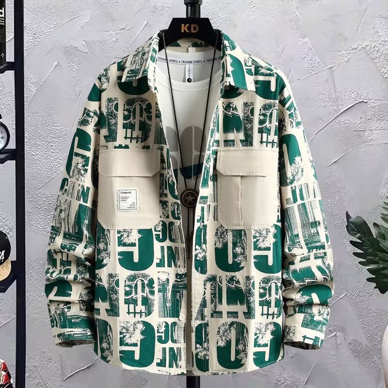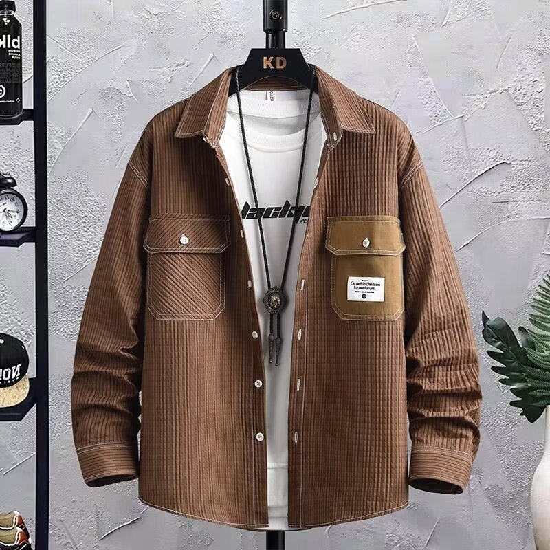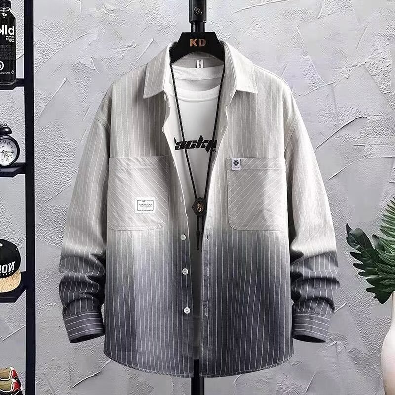 긴 소매 셔츠 남자 홍콩 스타일 트렌디 인 캐주얼 스트라이프 셔츠 잘 생긴 올매치 느슨한 작업복 셔츠 재킷