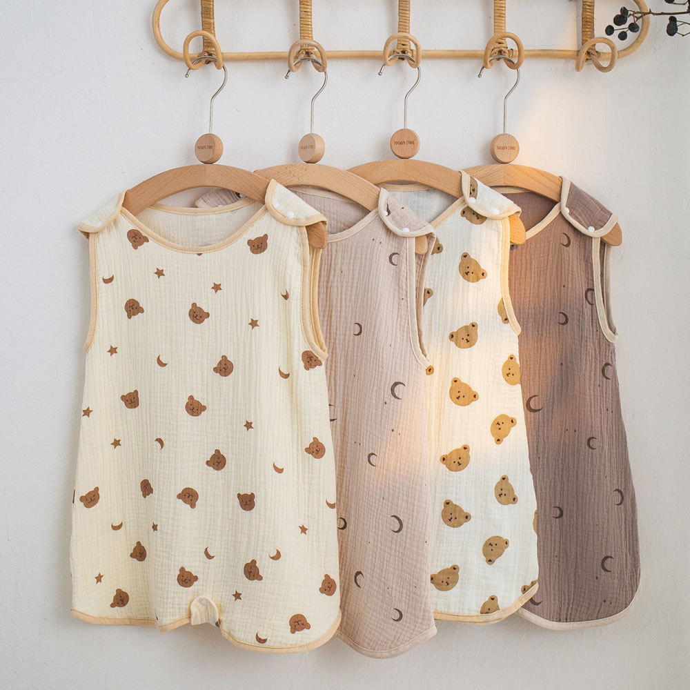 공장 도매 아기 조끼 전면 4 후면 2 신생아 침낭 거즈 면화 통기성 아기 여름 민소매 잠옷스토어 가기