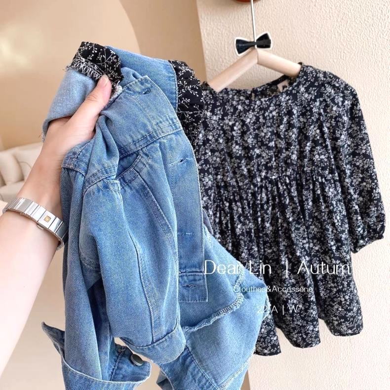 소녀의 봄 세트 새로운 한국 스타일 어린이 데님 코트 소녀의 꽃 원피스 아기의 스타일리스트 투피스 세트
