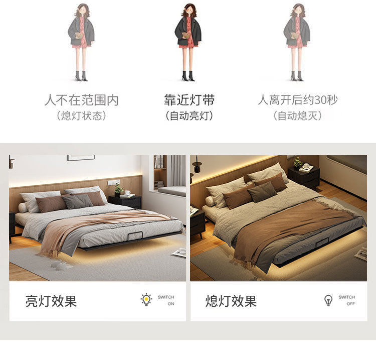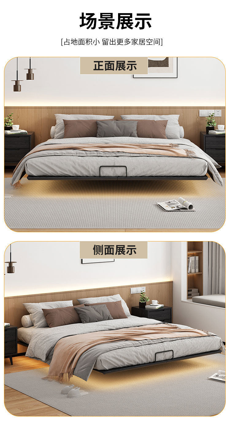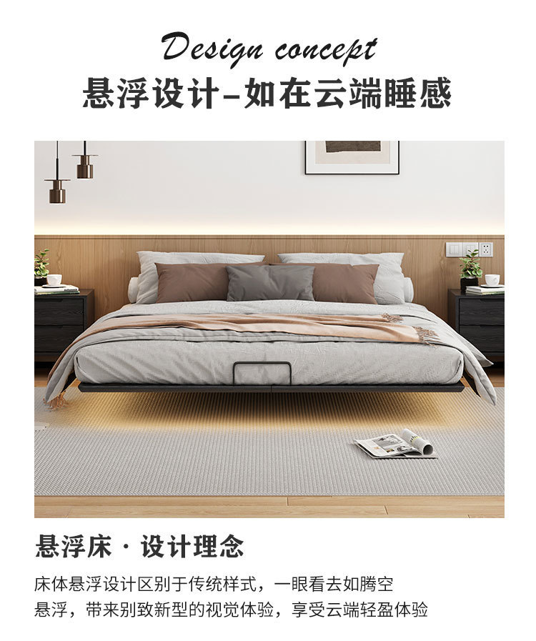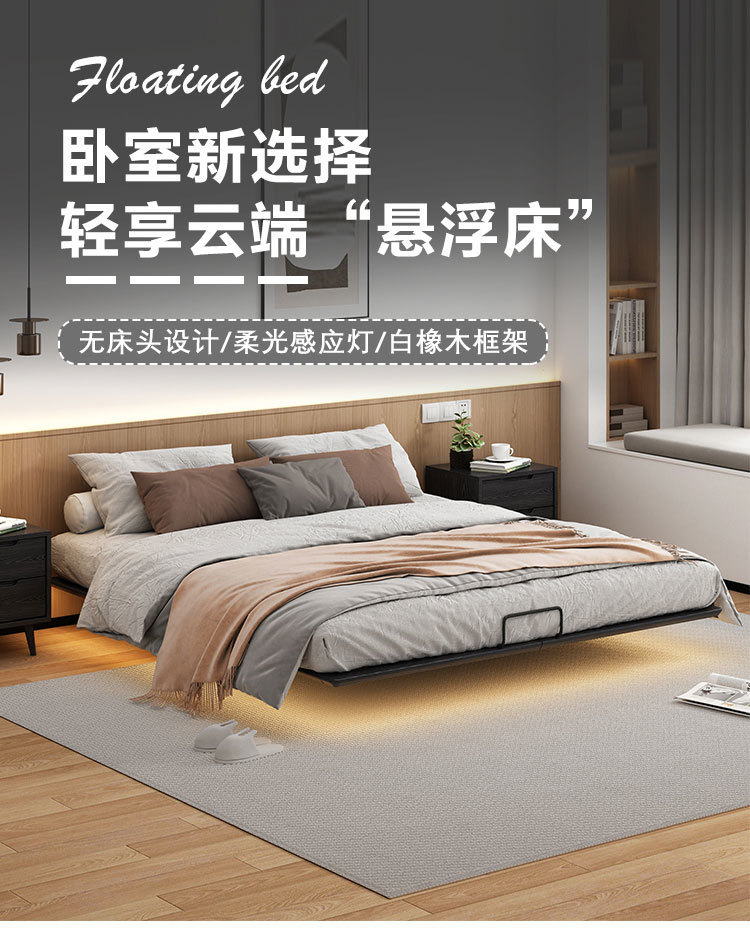 풀 오크 솔리드 우드 침대 헤드 서스펜션 침대 이탈리아 스타일 조용한 스타일 홈스테이 마스터 침실 큰 침대 산업 스타일 미니멀리스트 그물 레드 침대스토어 가기