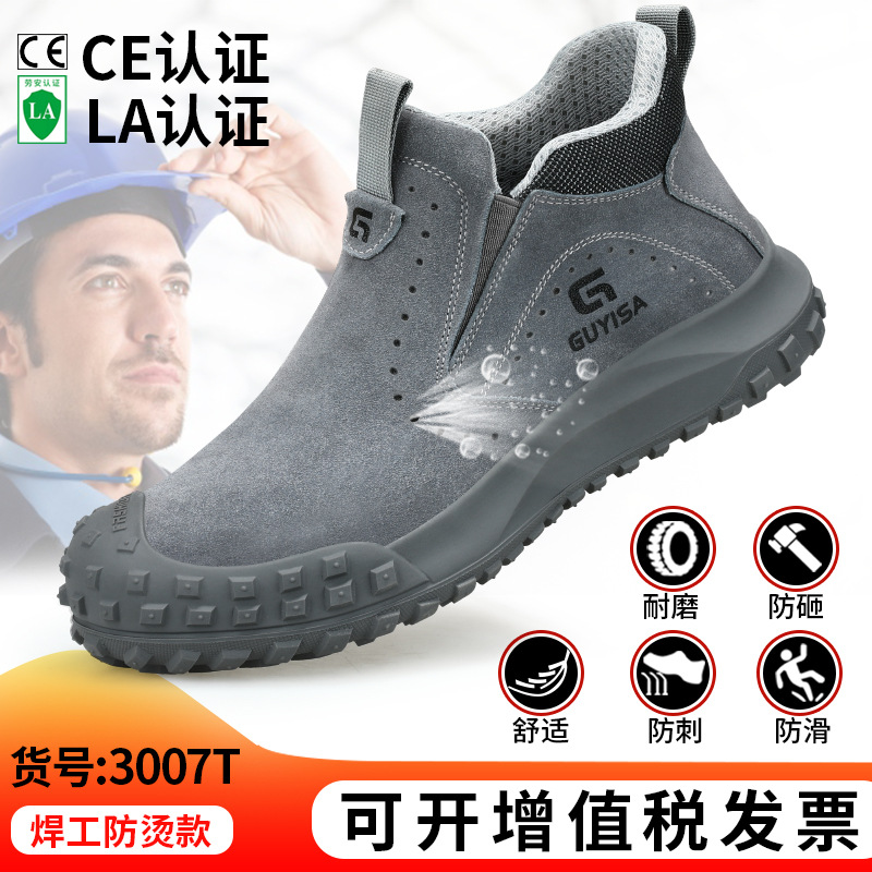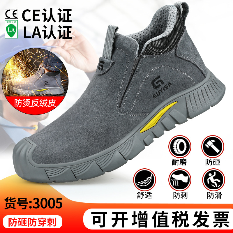 사계절 노동 보호 신발, 충격 방지, 펑크 방지, 미끄럼 방지, 스웨이드 가죽 슬립온, 가볍고 편안한, 방화 용접공 신발 도매스토어 가기