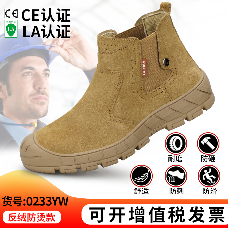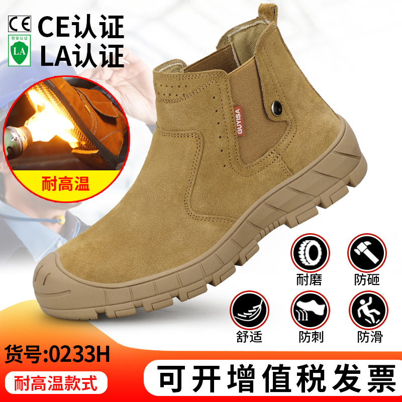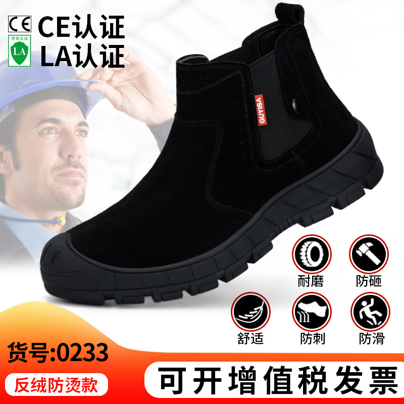 사계절 노동 보호 신발, 충격 방지, 펑크 방지, 미끄럼 방지, 스웨이드 가죽 슬립온, 가볍고 편안한, 방화 용접공 신발 도매