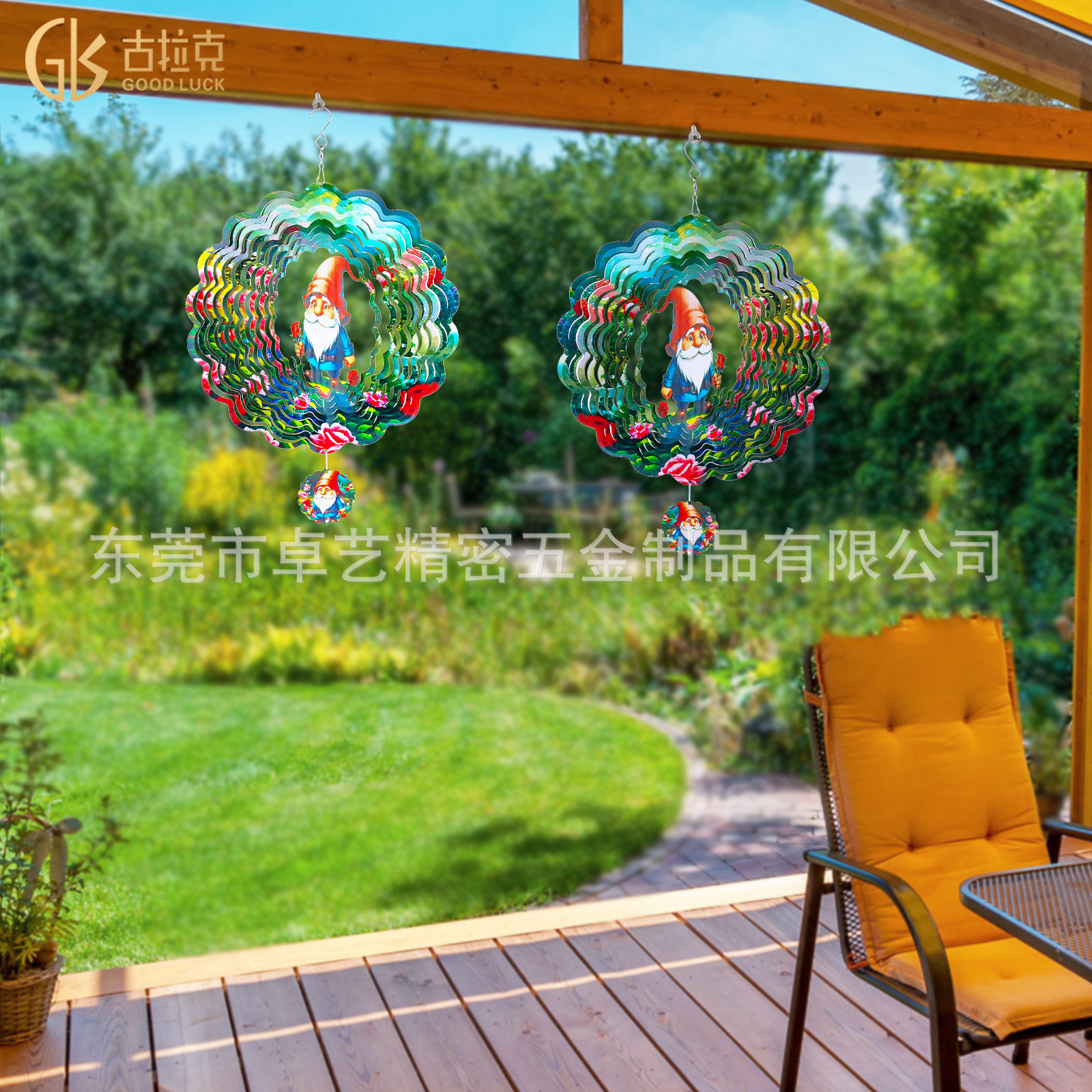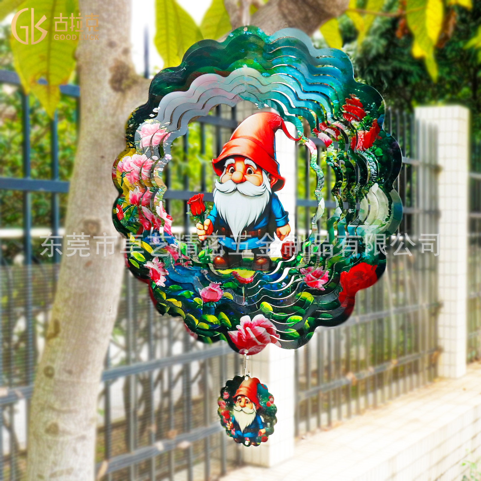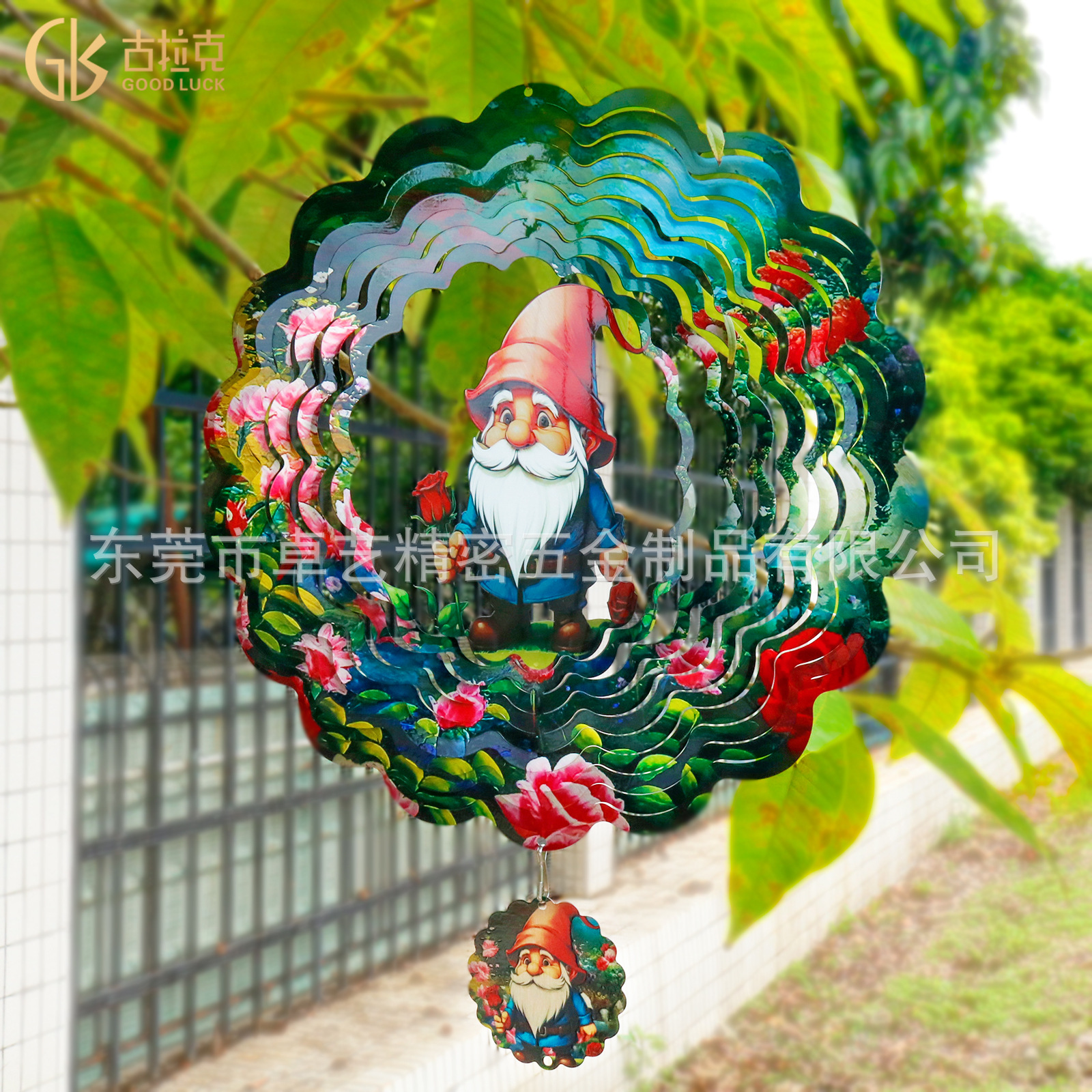 아마존 크리스마스 메탈 3D 회전 풍차 장미 그놈 만다라 풍경종 정원 금속 장식품