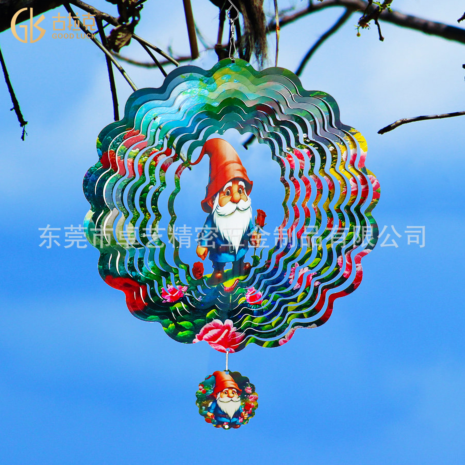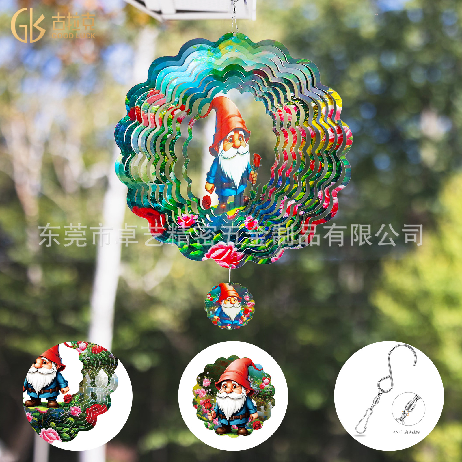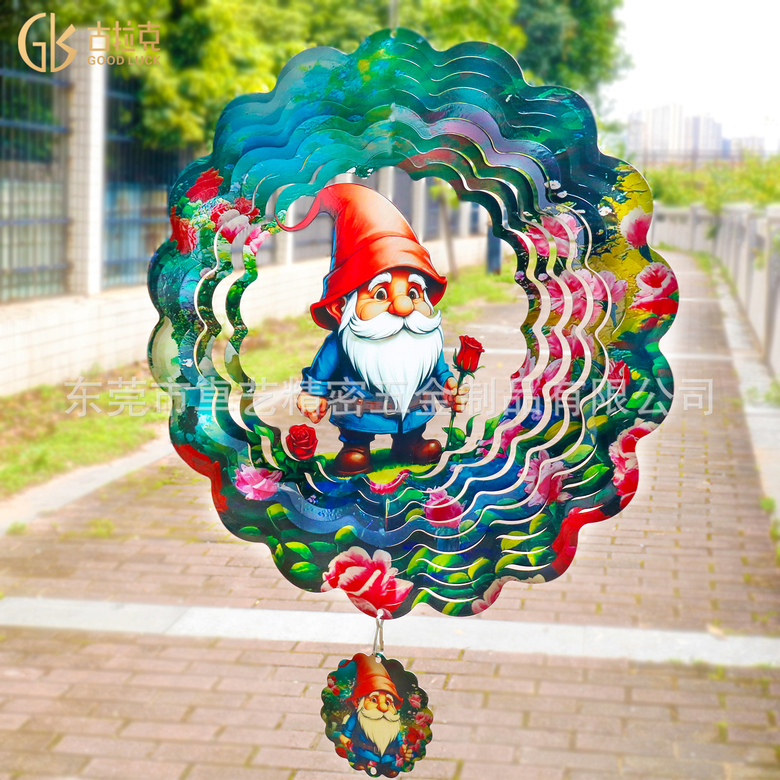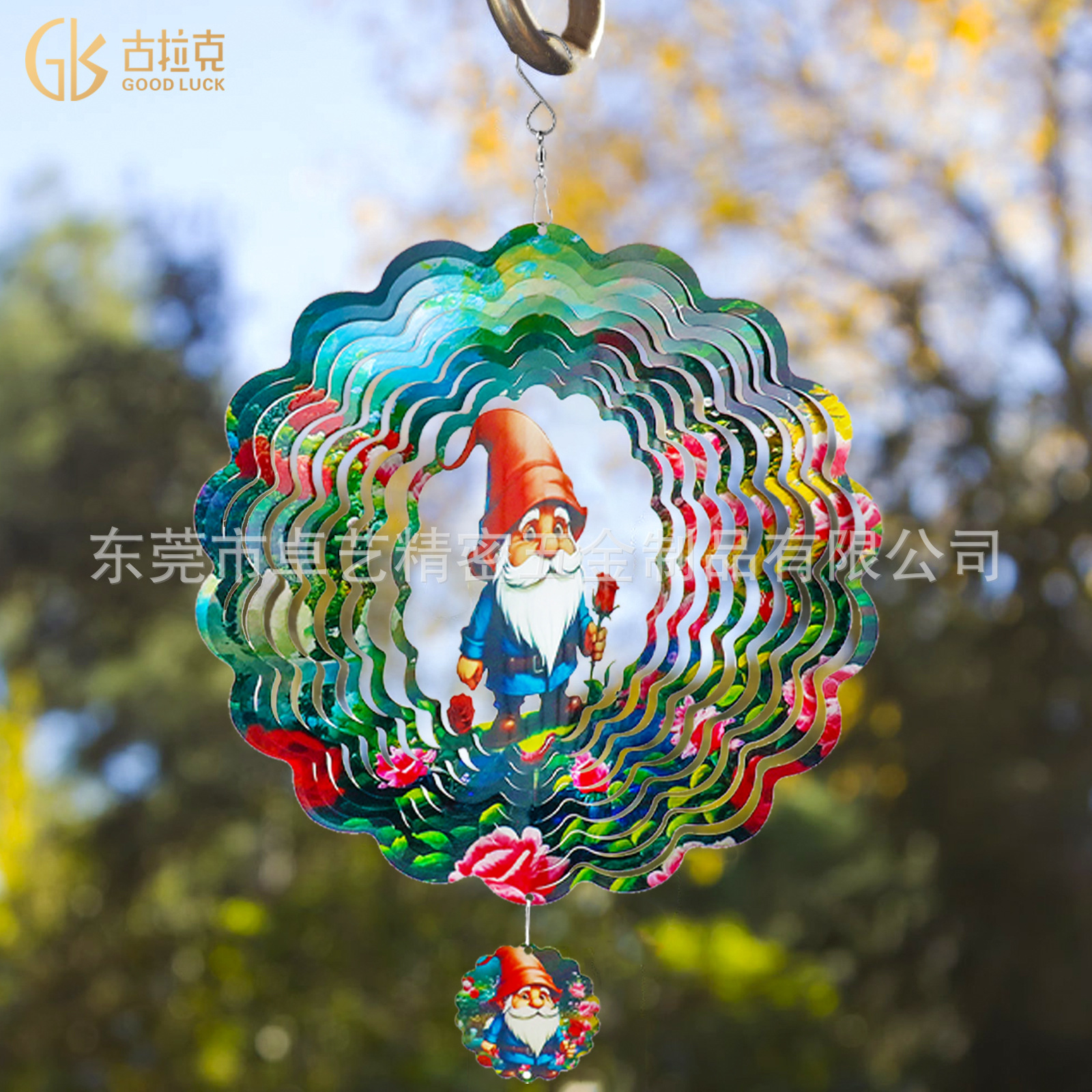 아마존 크리스마스 메탈 3D 회전 풍차 장미 그놈 만다라 풍경종 정원 금속 장식품
