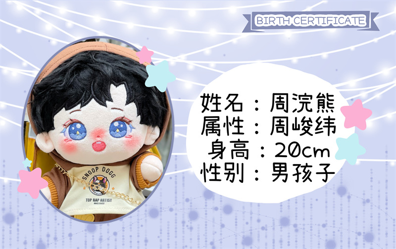 20cm Zhou Junwei 면 인형 봉제 원래 인형 Zhou 너구리 스타 인형 장난감 휴일 선물 재고스토어 가기