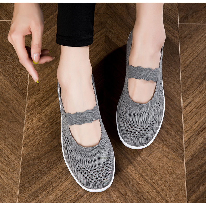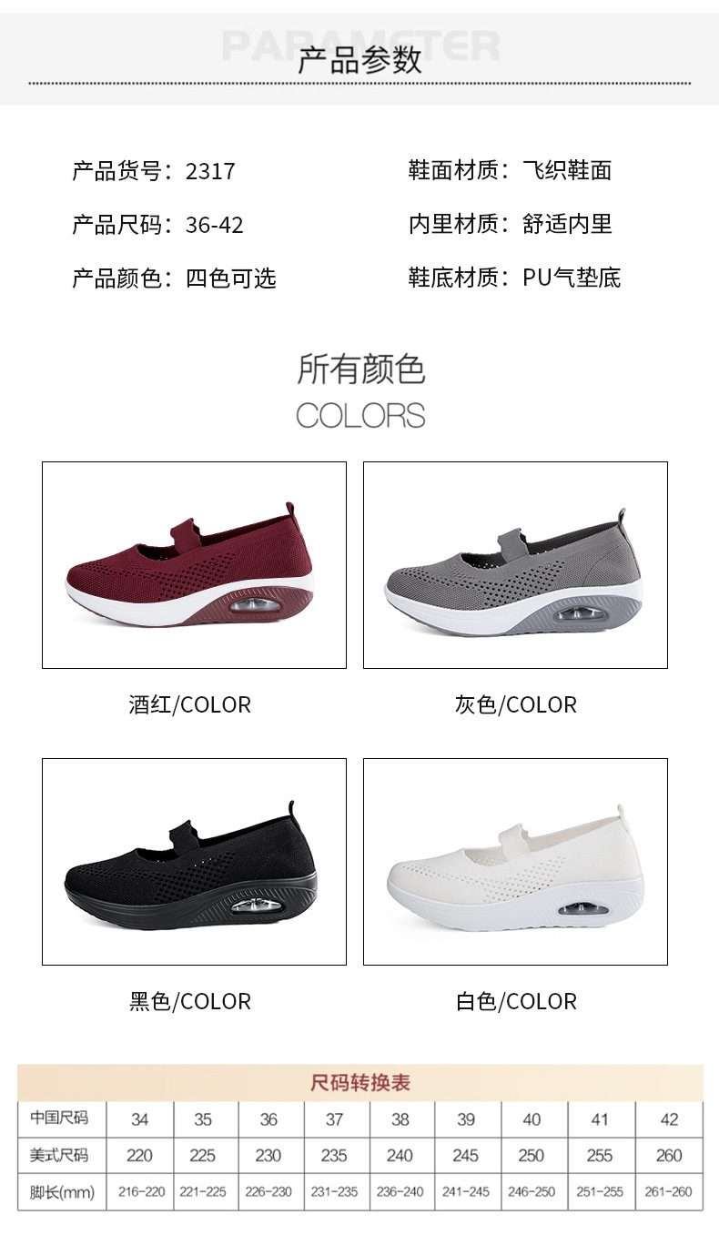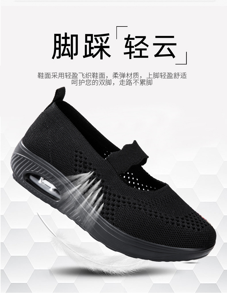 플라잉 짠 흔들 신발 여성 슬립 온 발 두꺼운 바닥 강화 공기 쿠션 새로운 스타일 메쉬 통기성 캐주얼 여성 신발스토어 가기