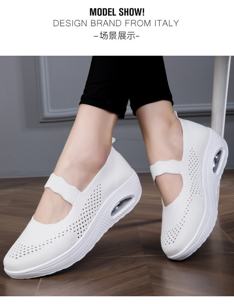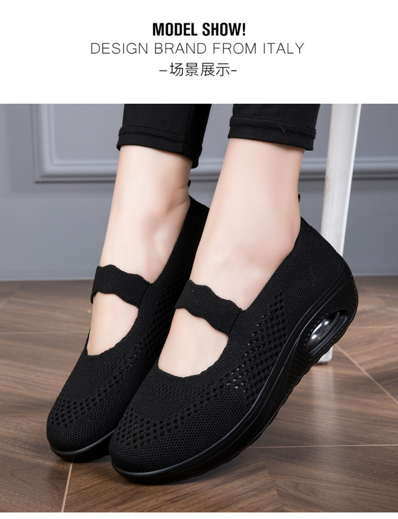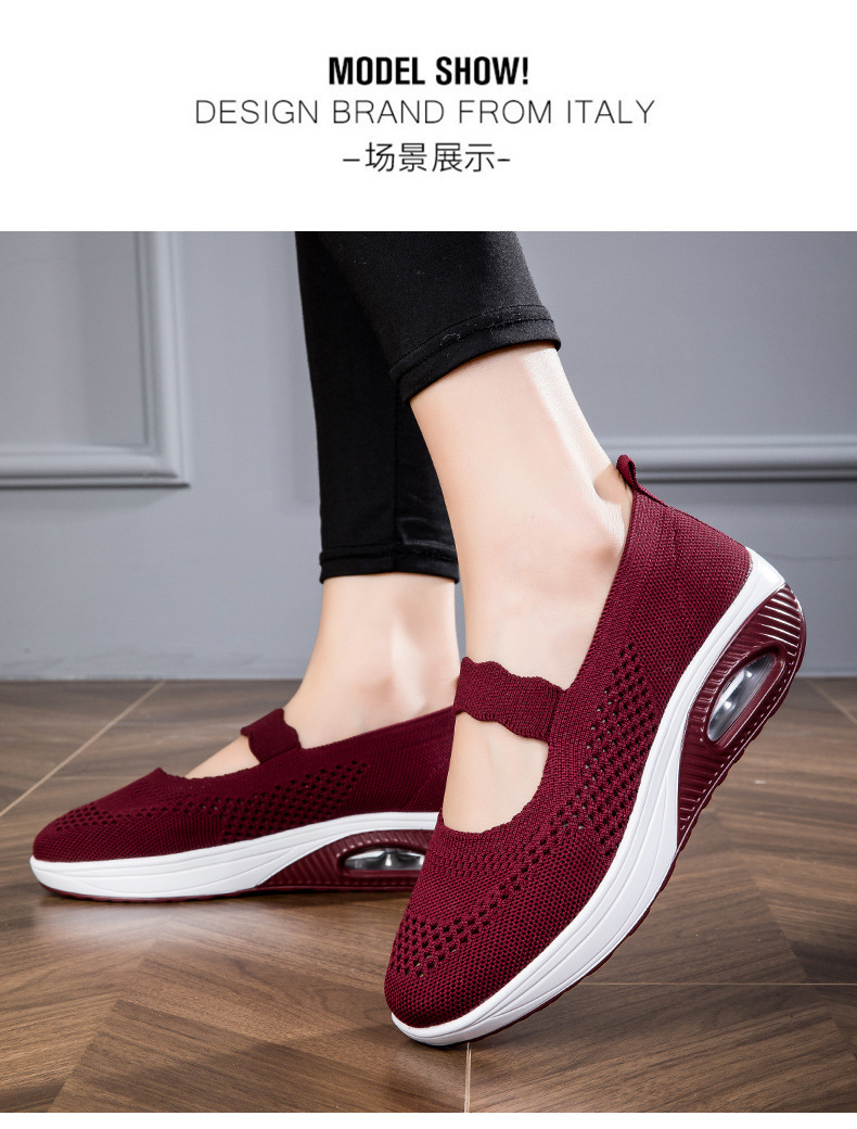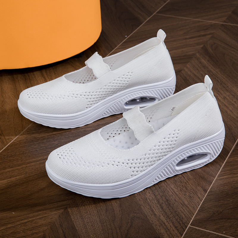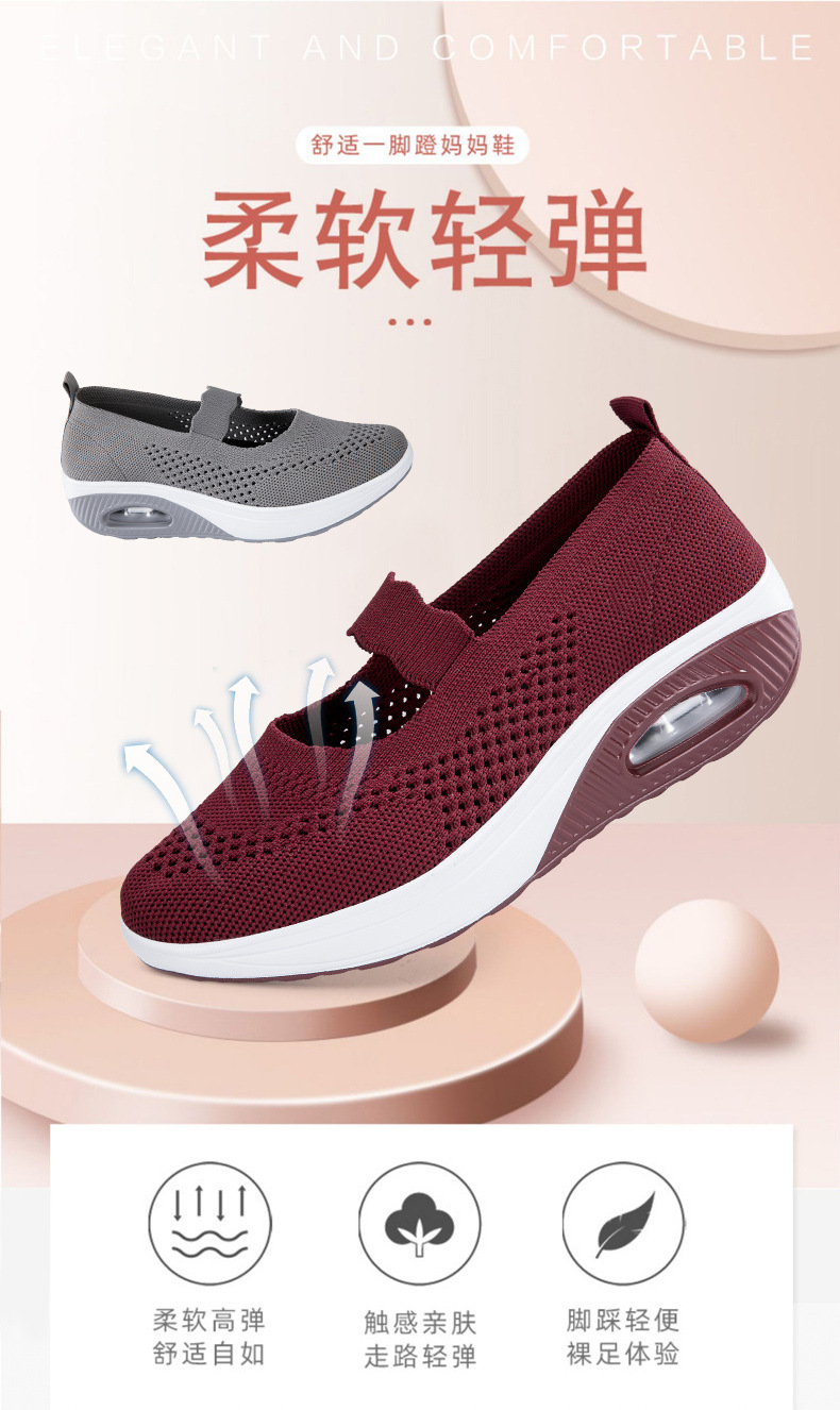 플라잉 짠 흔들 신발 여성 슬립 온 발 두꺼운 바닥 강화 공기 쿠션 새로운 스타일 메쉬 통기성 캐주얼 여성 신발