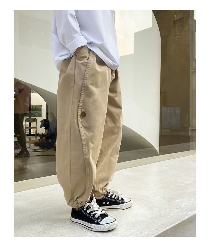 소년 작업복 아동 캐주얼 바지 순면 봄, 가을 느슨한 중대형 아동 2025 새로운 여름 얇은 바지 유행