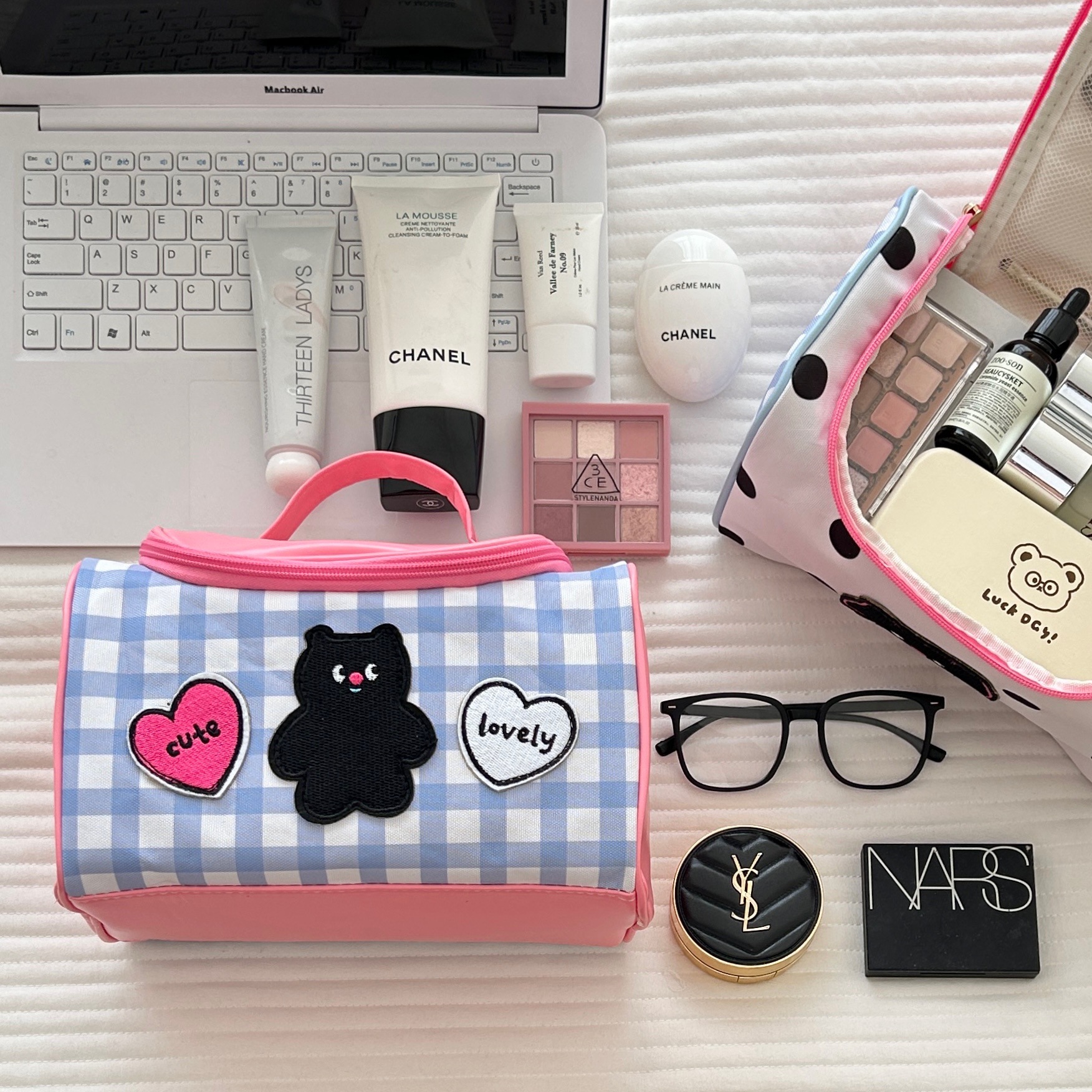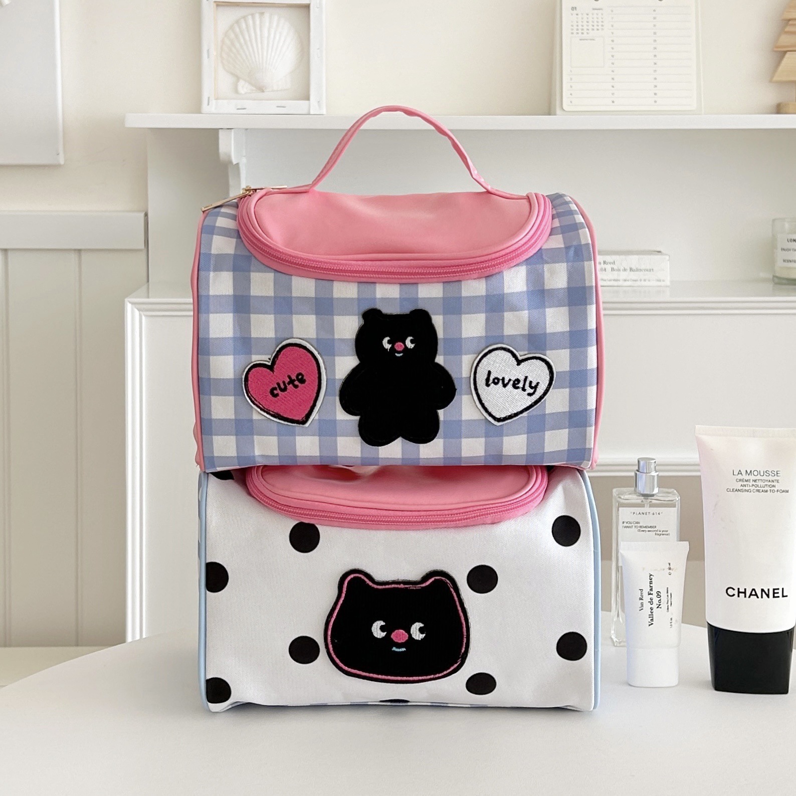 귀여운 만화 휴대용 화장품 가방 여성의 2024 새로운 소녀의 심장 휴대용 대용량 화장품 보관 세척 가방스토어 가기