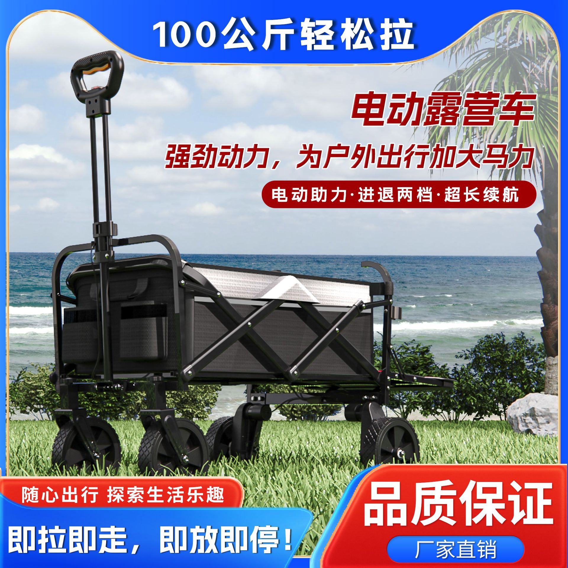 야외 전기 캠핑카, 대형 캠프 카트, 접이식 휴대용 카트, 전기 캠핑카스토어 가기