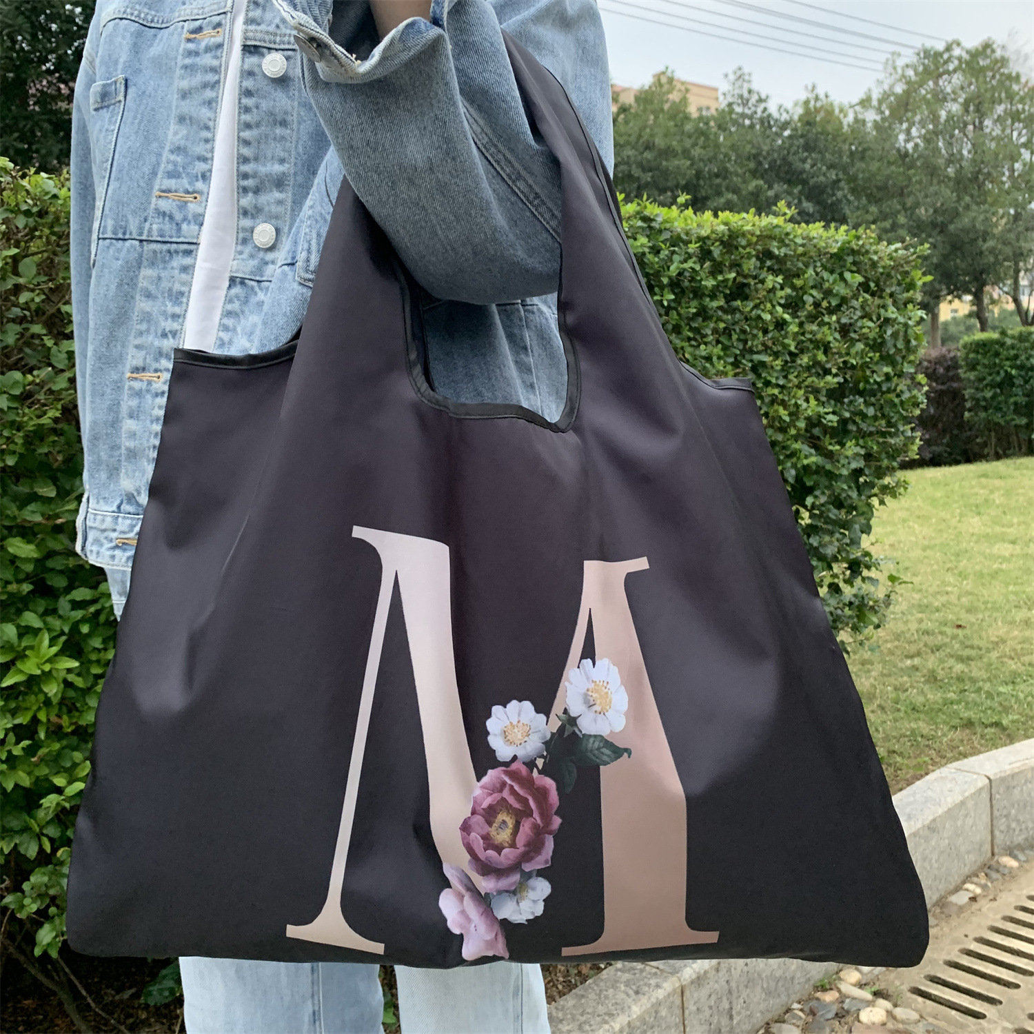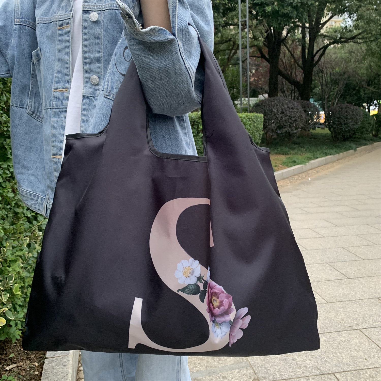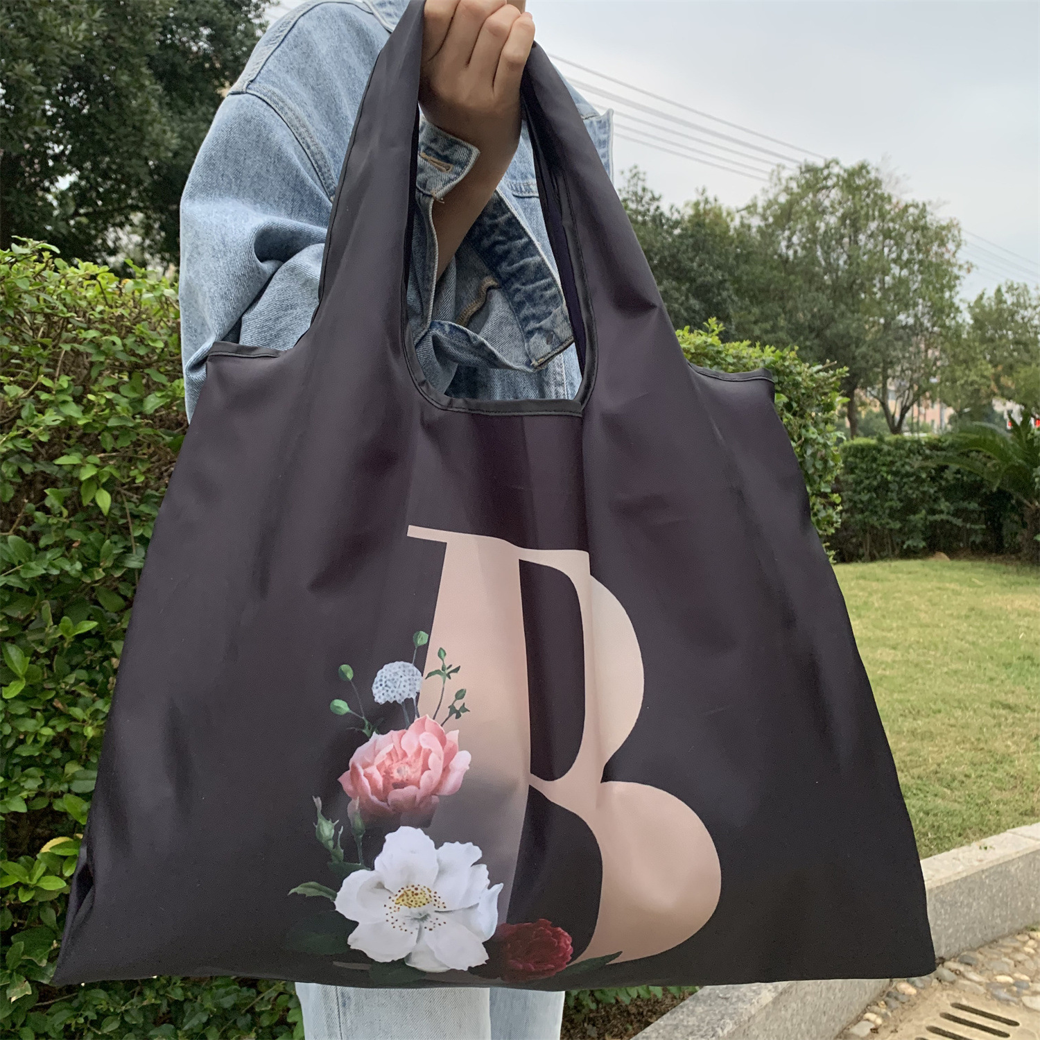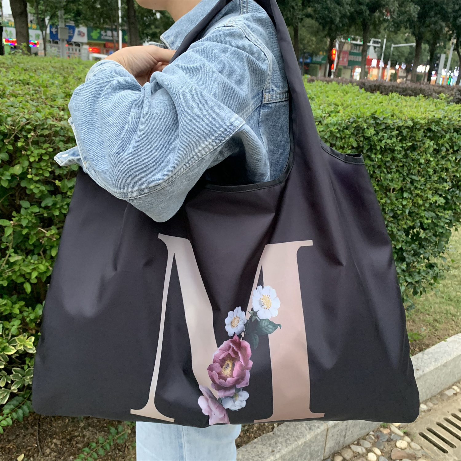 새로운 알파벳 접이식 친환경 여행 휴대용 슈퍼마켓 대용량 어깨 쇼핑백 여성 쇼핑백