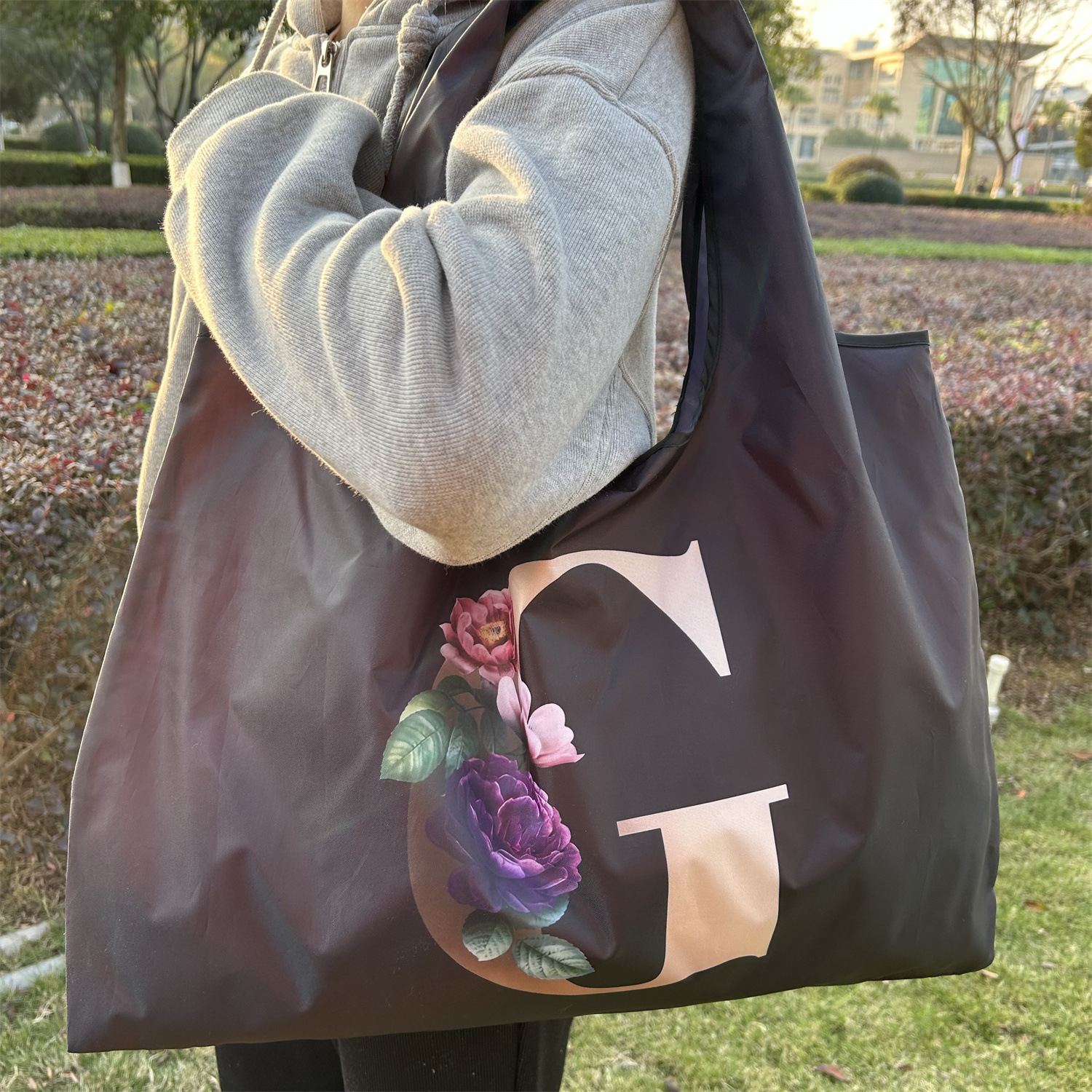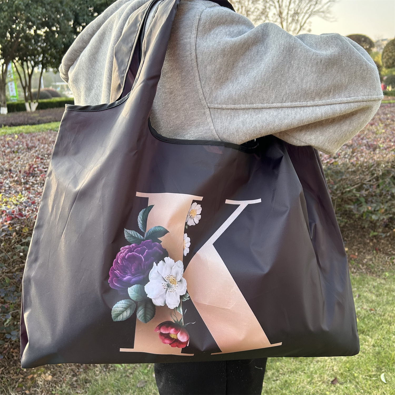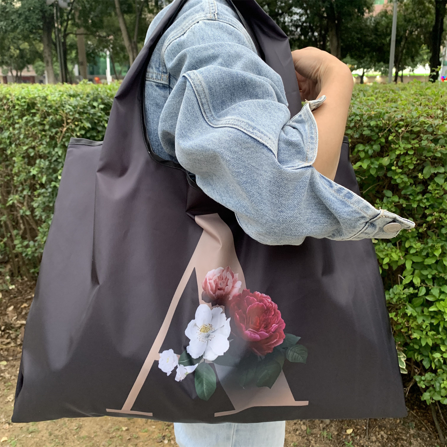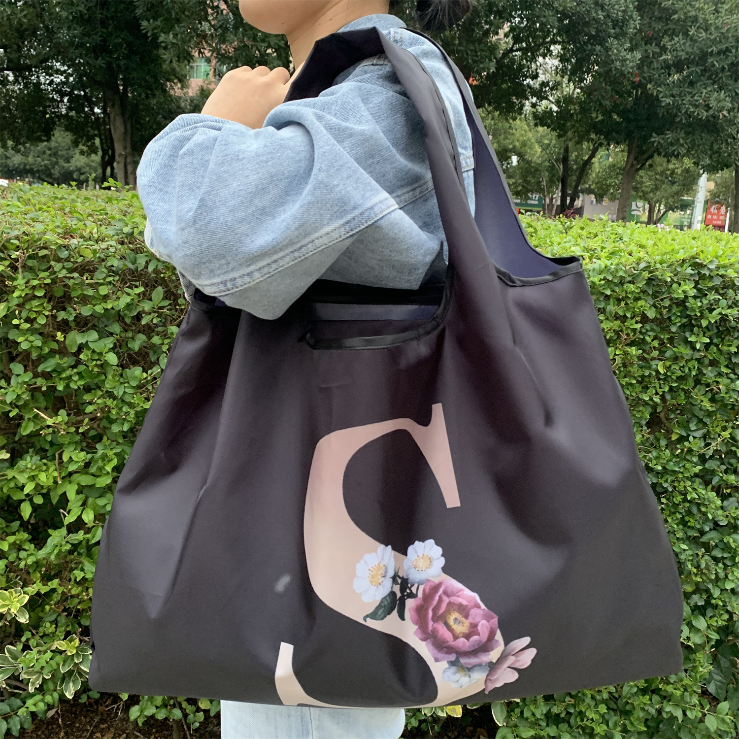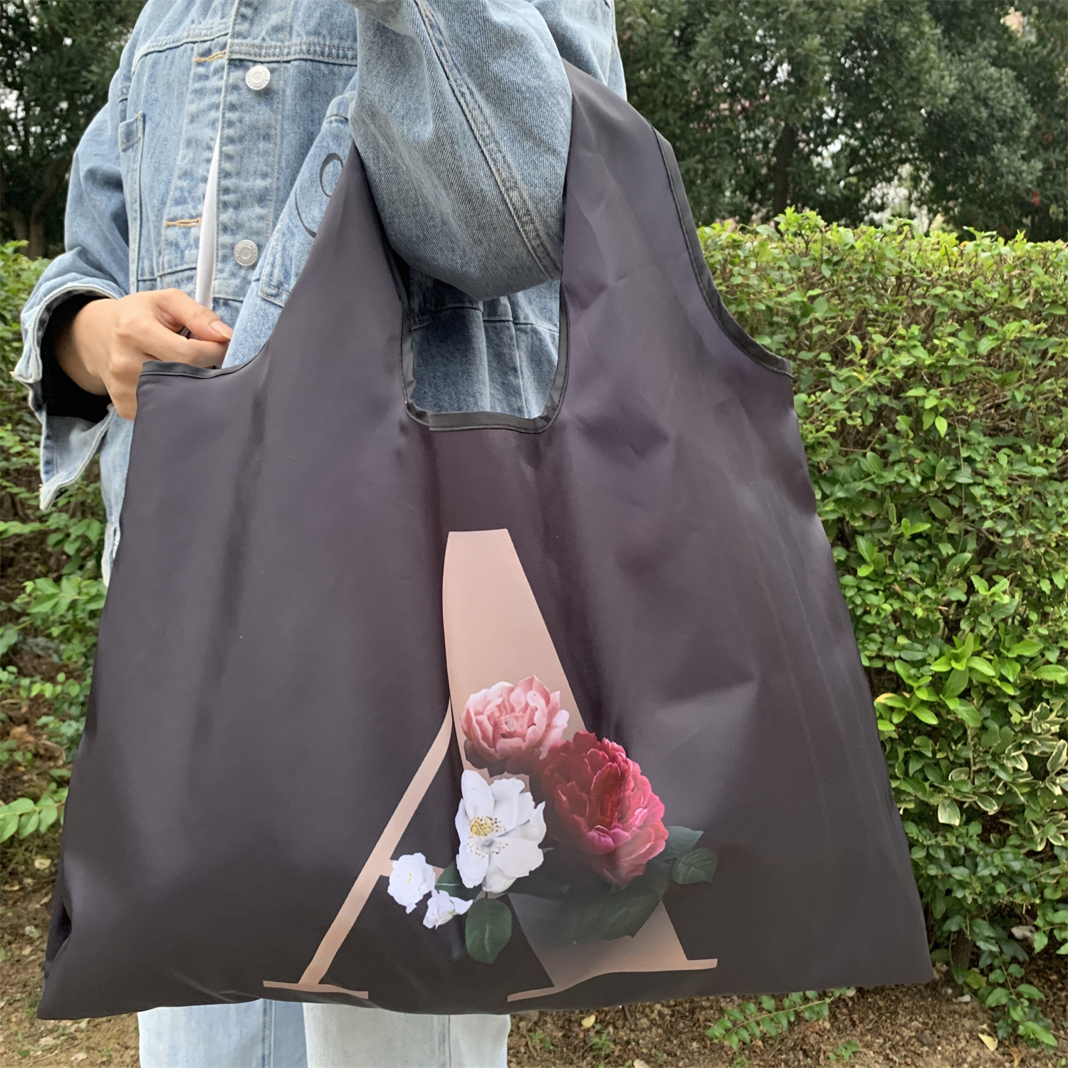 새로운 알파벳 접이식 친환경 여행 휴대용 슈퍼마켓 대용량 어깨 쇼핑백 여성 쇼핑백