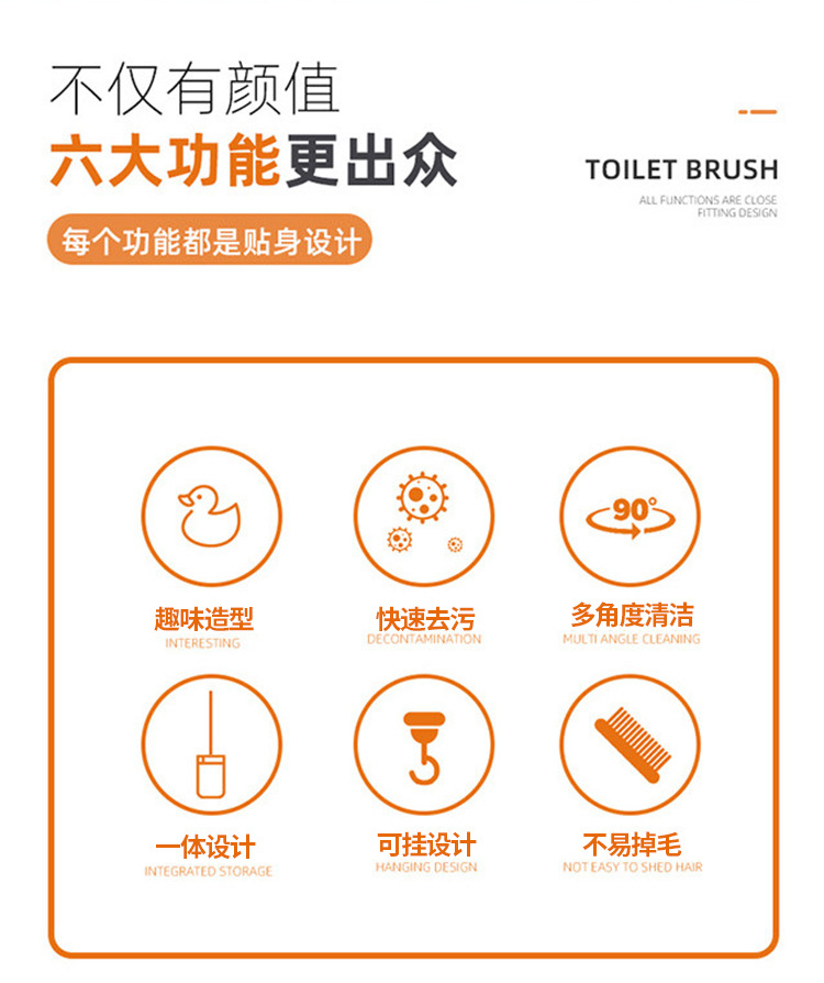 다이빙 오리 노란 오리 화장실 브러시 가정용 죽은 각도 없음 2024 새로운 실리콘 화장실 브러시 벽 교수형