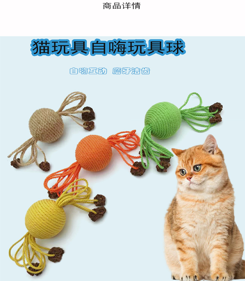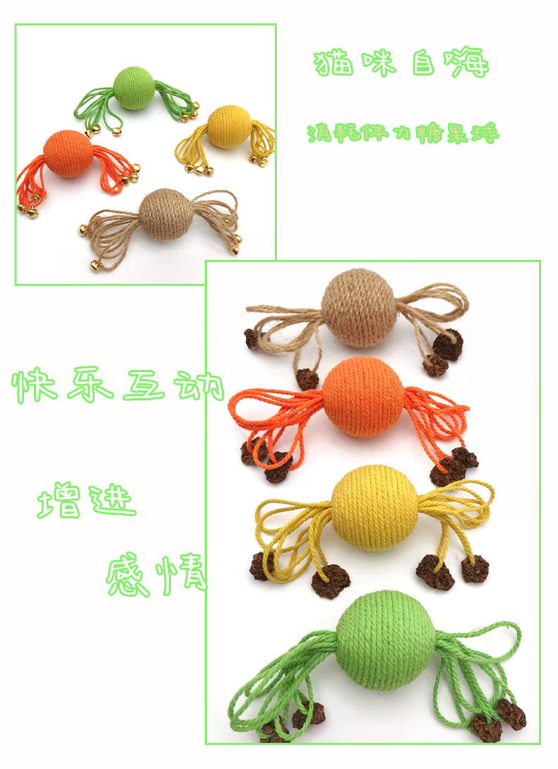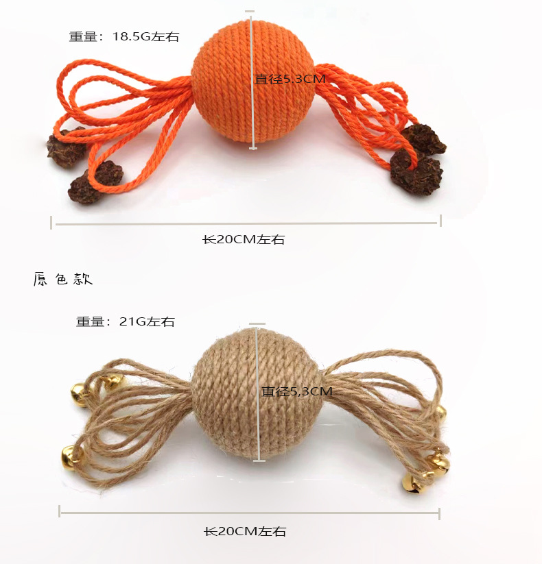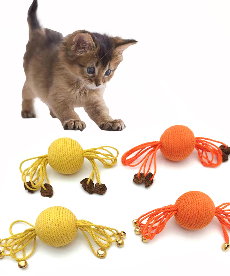 도매 고양이 장난감 공, 면 로프로 감싼 셀프-엔터테인먼트 상호작용 애완 동물 용품, 고양이 애완 동물 장난감