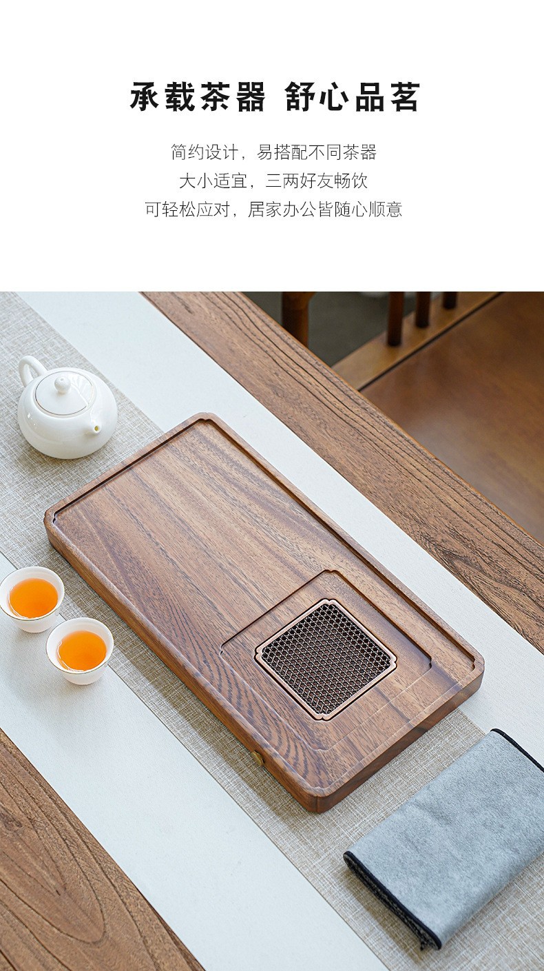 호두 나무 차 트레이 건조하고 젖은 이중 사용 건조 양조 차 테이블 여행 차 세트 트레이 배수 새로운 중국 미적 다도