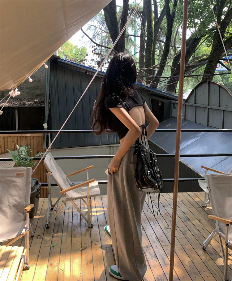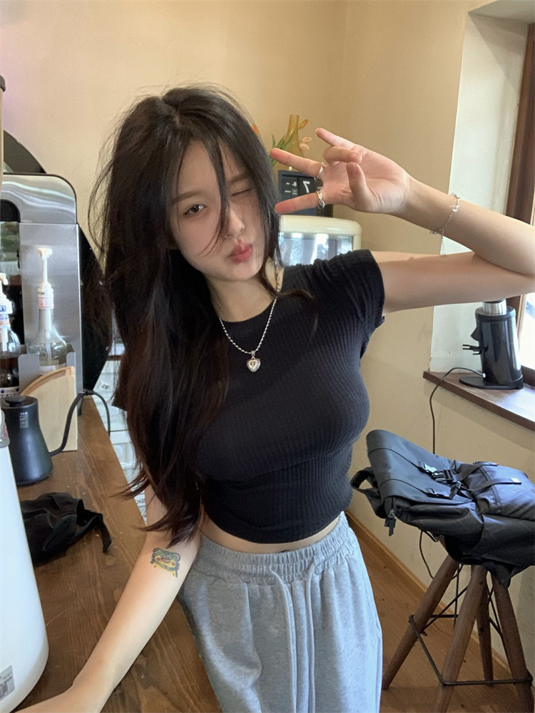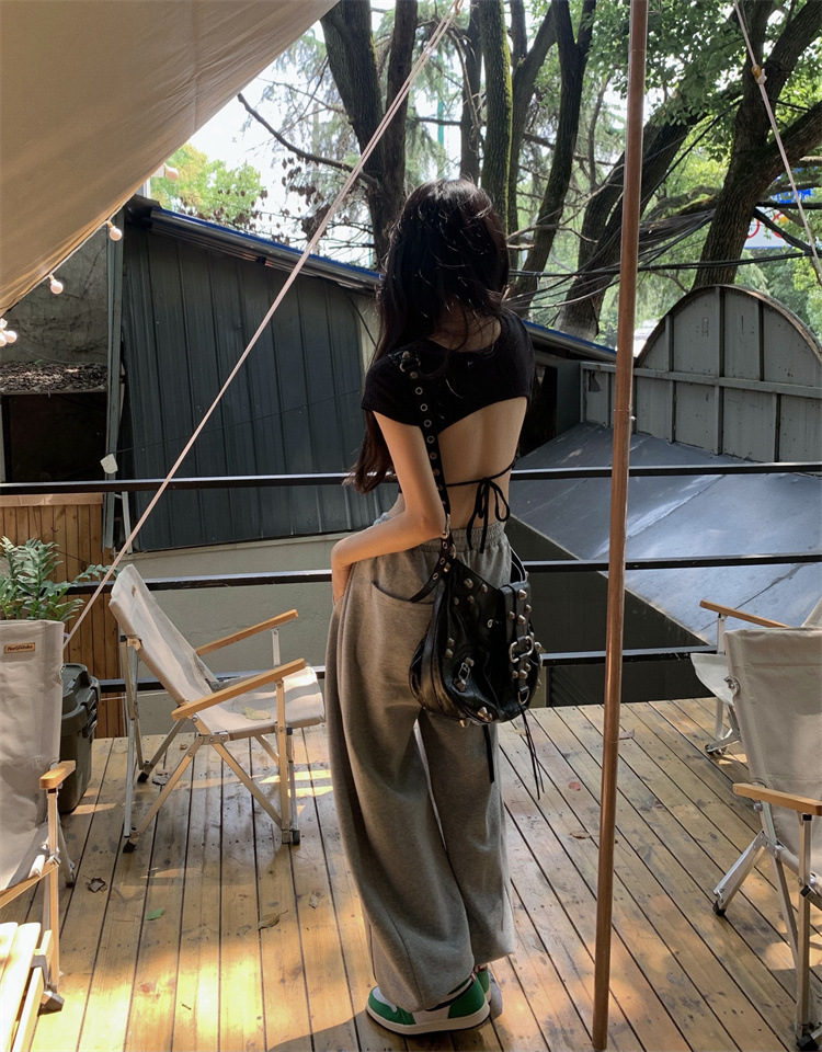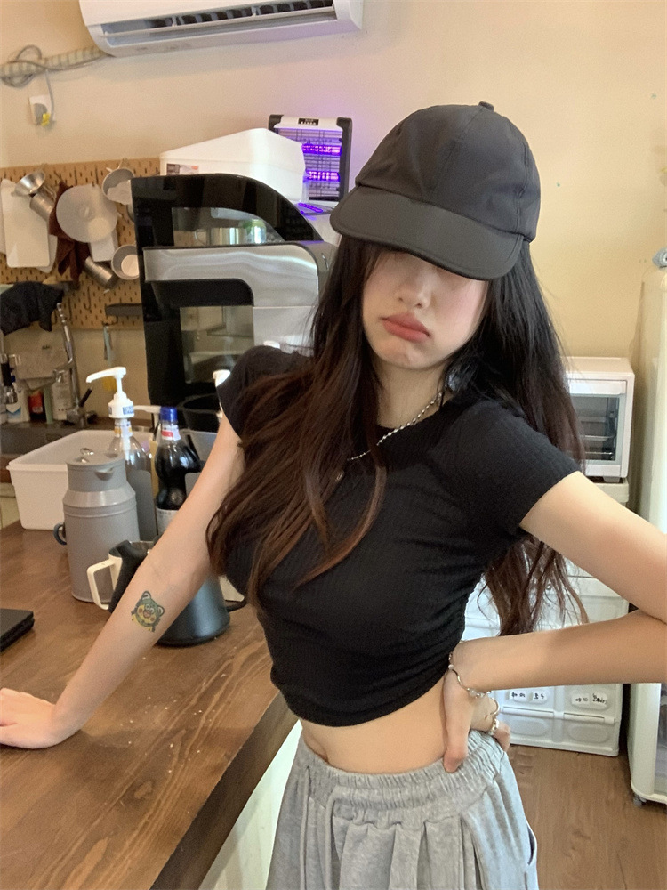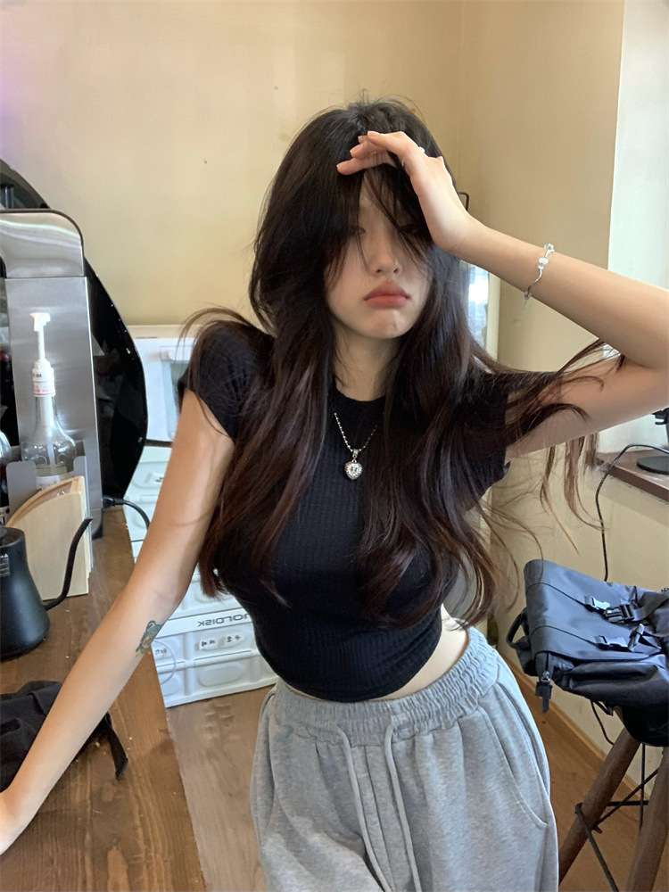 (40 모달 2X 2 260g 레이온) 백리스 스트랩 짧은 소매 티셔츠 슬림 빈 섹시한 짧은 탑