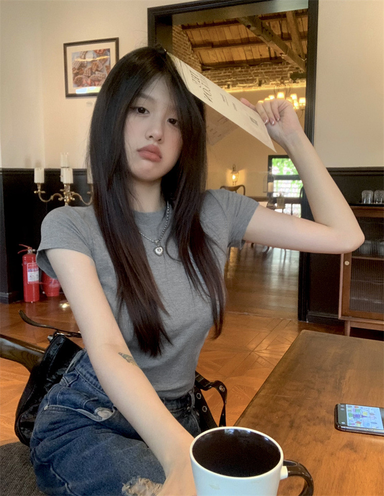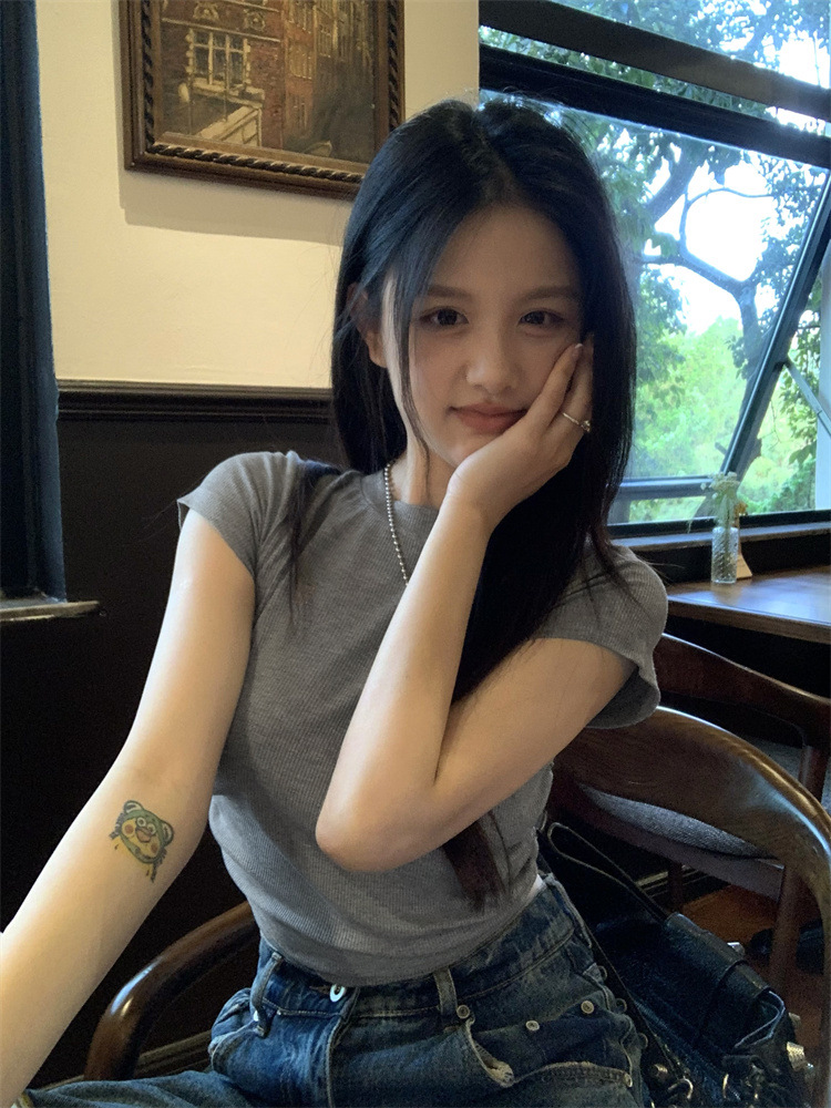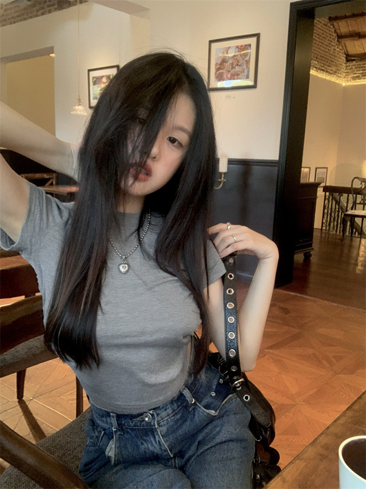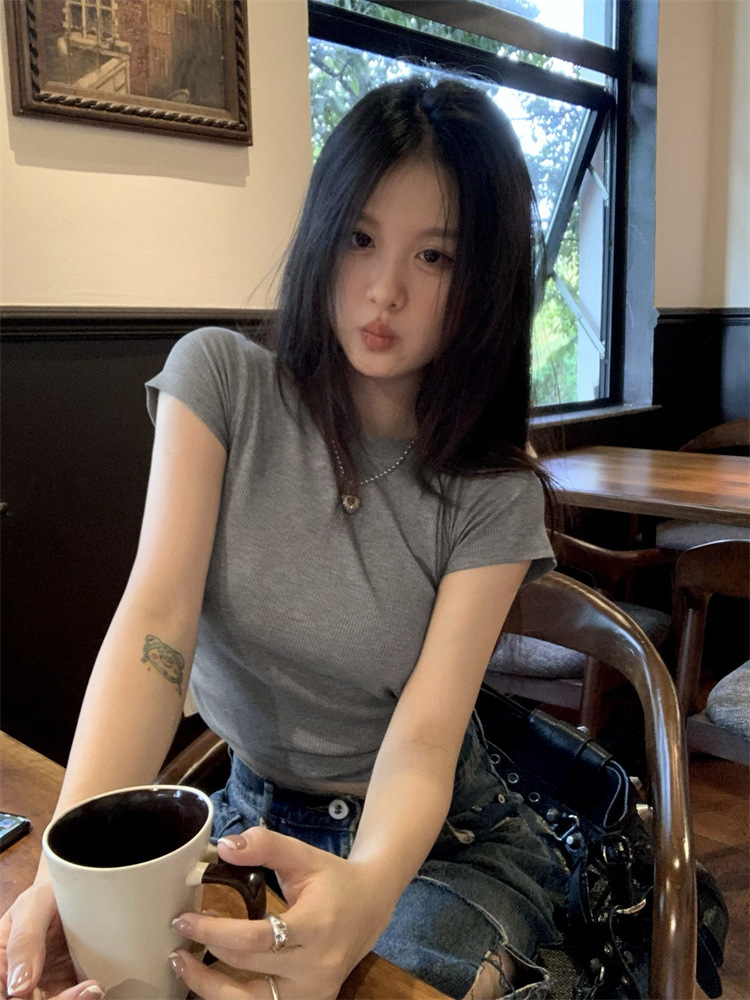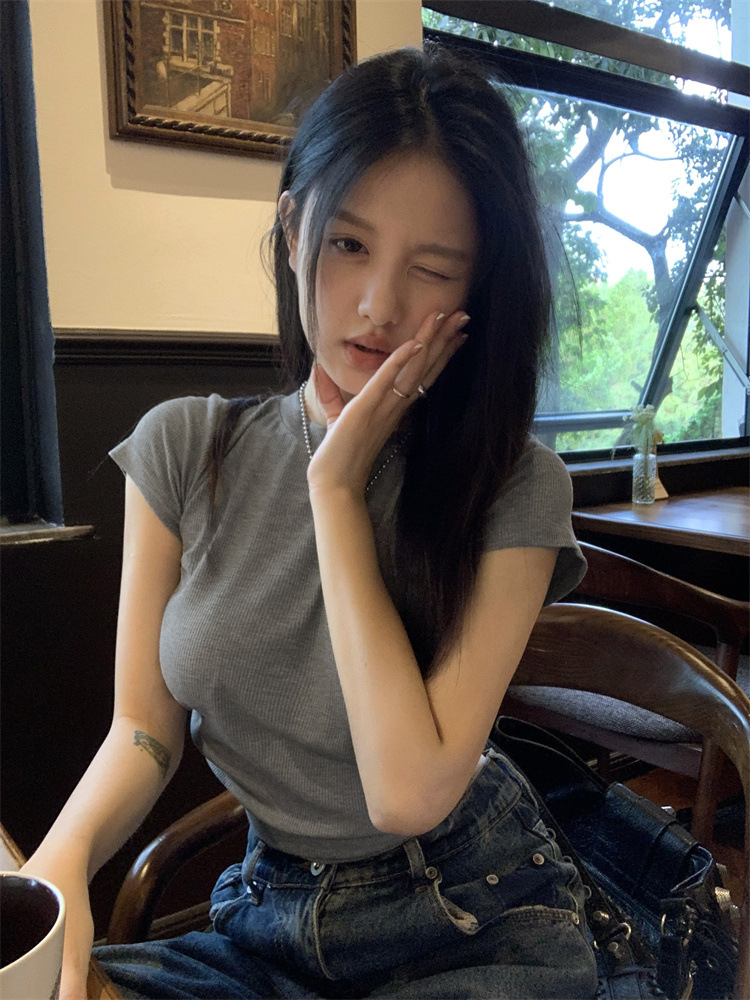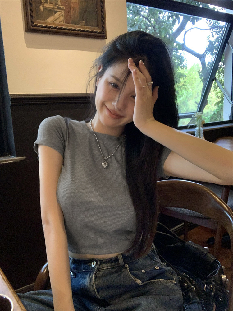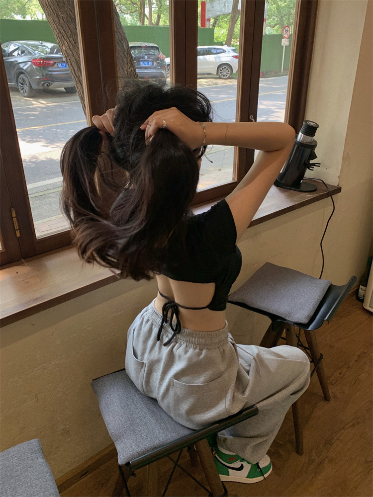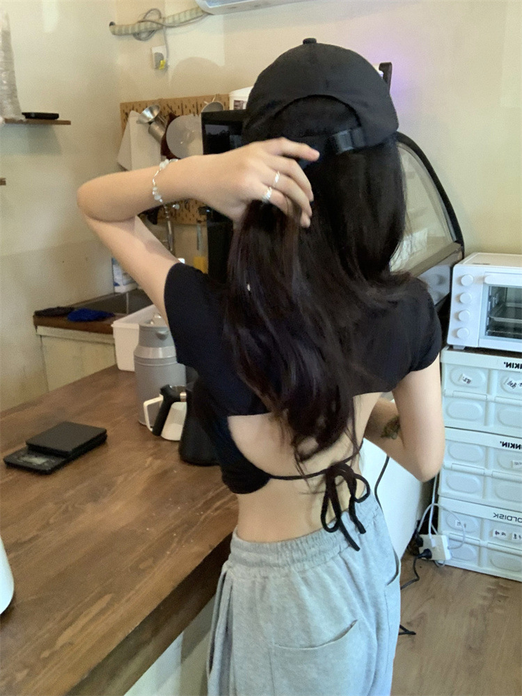 (40 모달 2X 2 260g 레이온) 백리스 스트랩 짧은 소매 티셔츠 슬림 빈 섹시한 짧은 탑스토어 가기