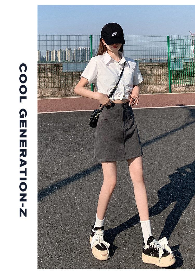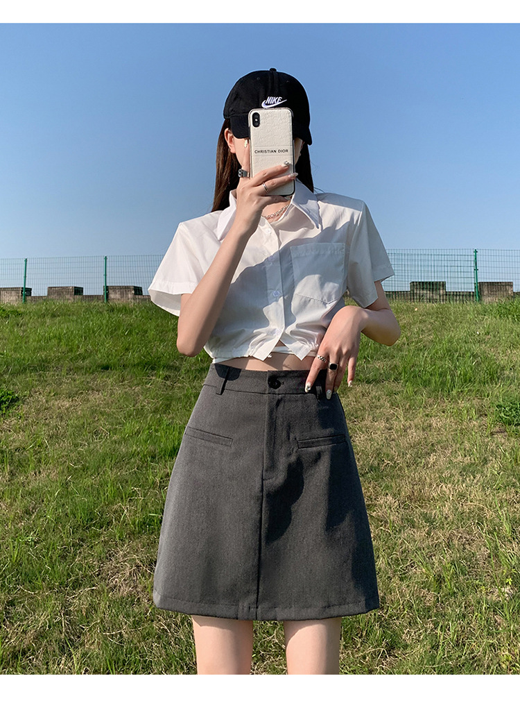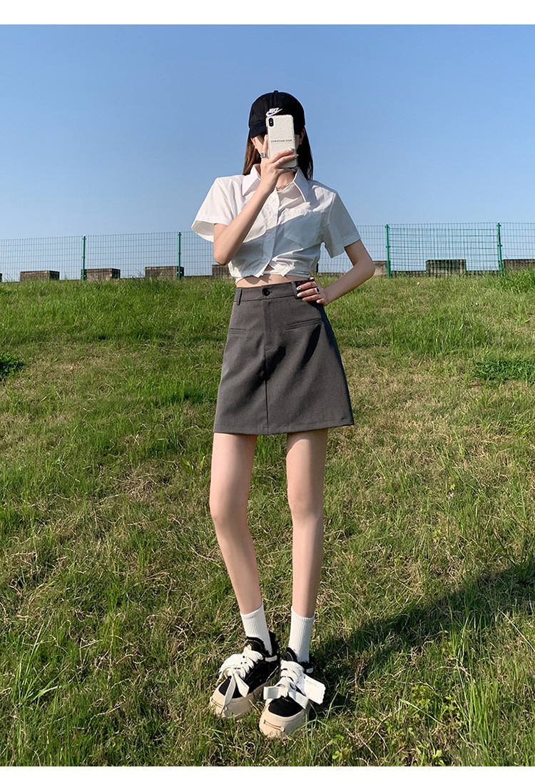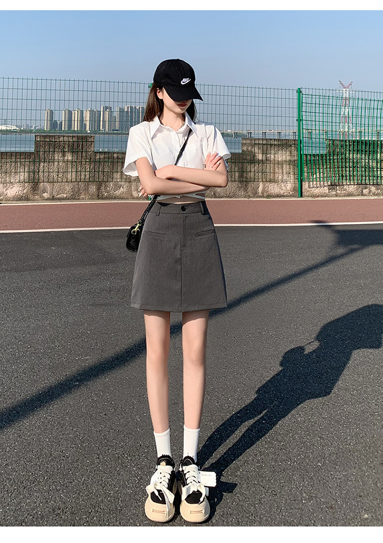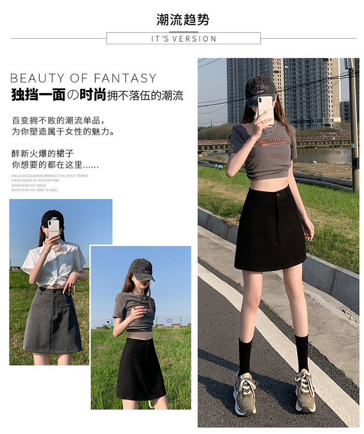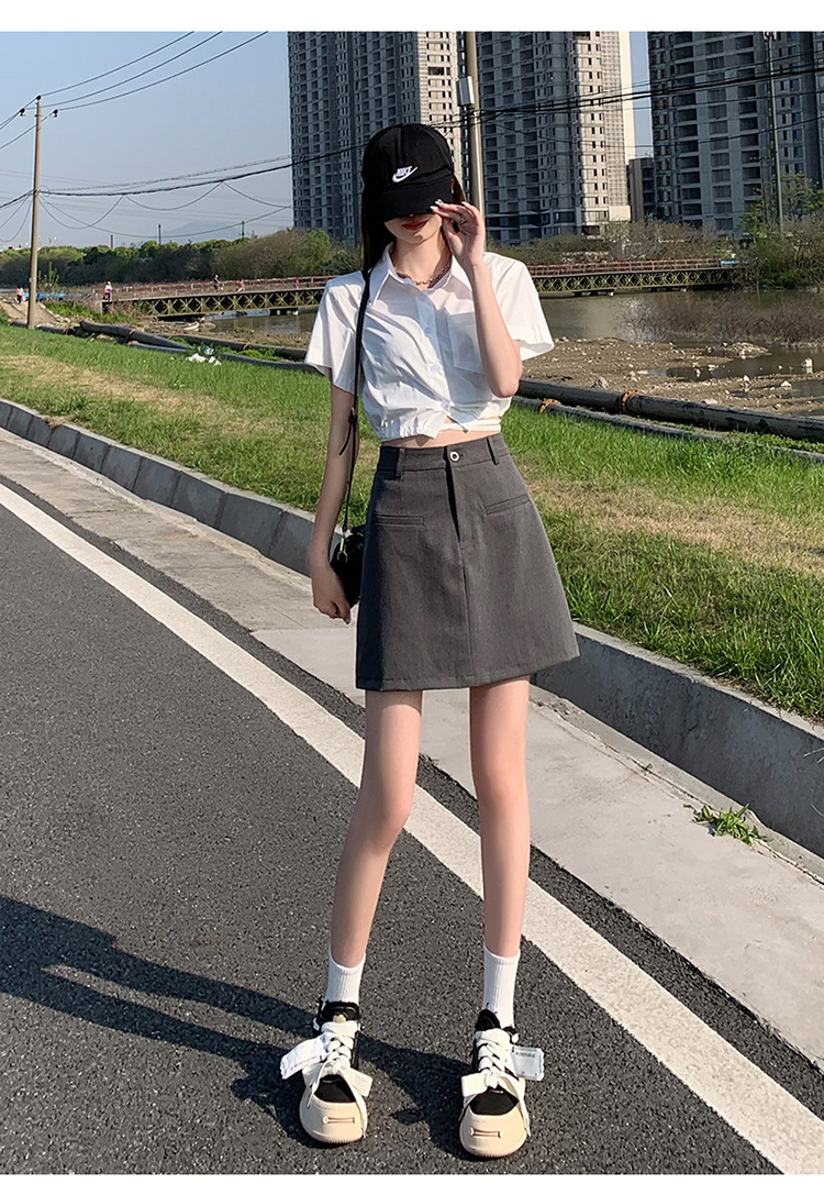 높은 허리 세트 치마 여자 여름 2024 새로운 눈부심 방지 A 라인 스커트 작은 느슨한 슬리밍 하프 길이 스커트스토어 가기