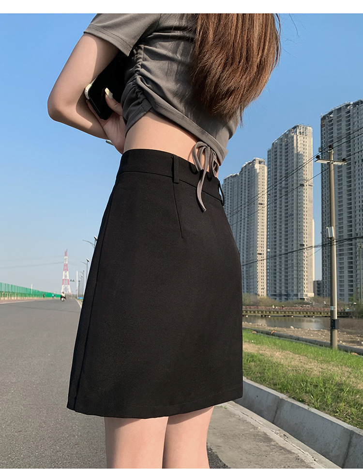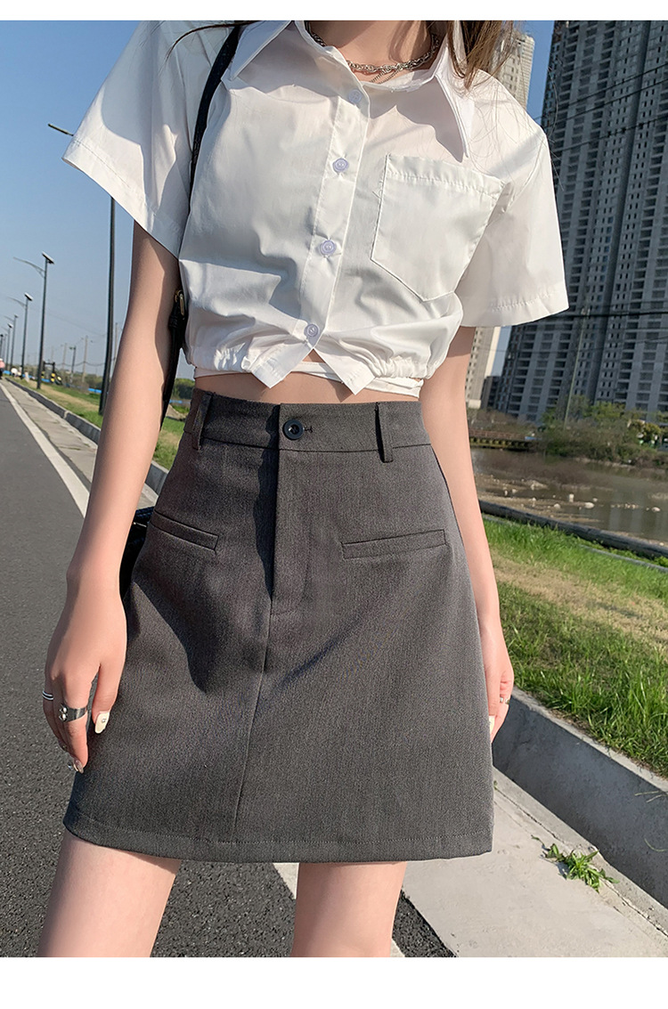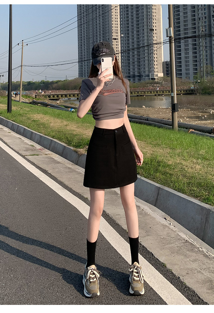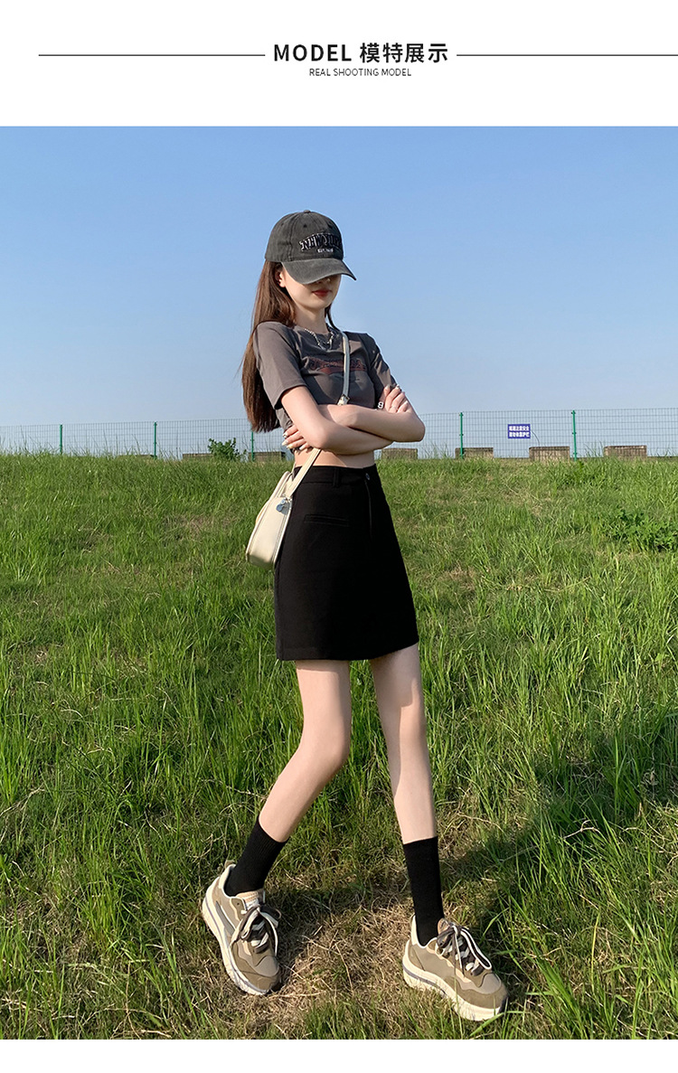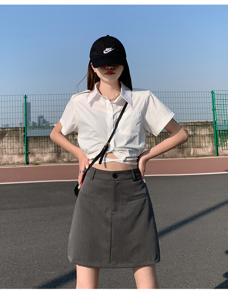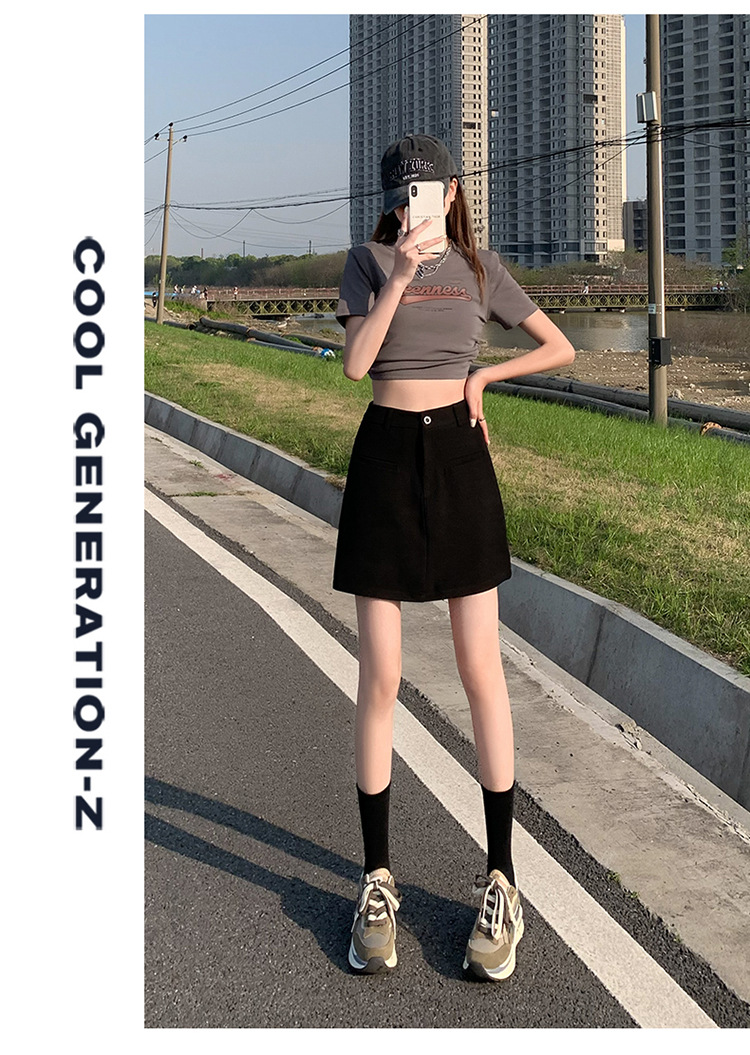 높은 허리 세트 치마 여자 여름 2024 새로운 눈부심 방지 A 라인 스커트 작은 느슨한 슬리밍 하프 길이 스커트스토어 가기