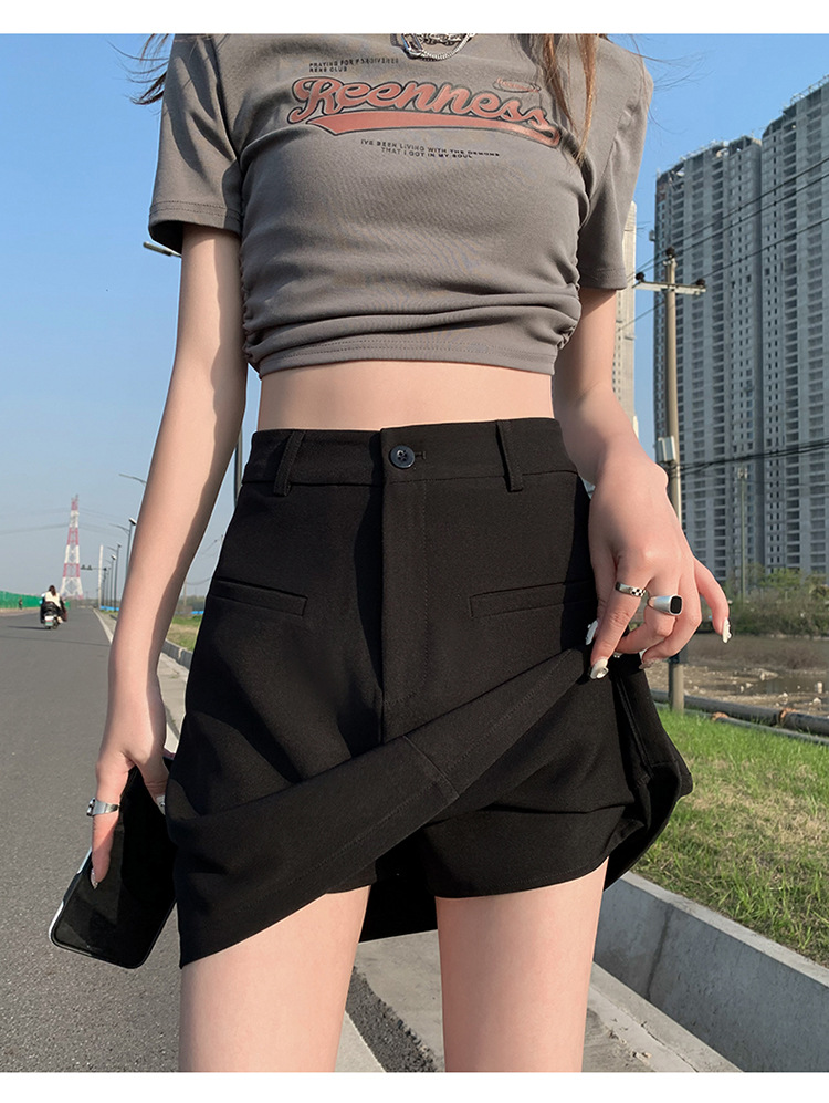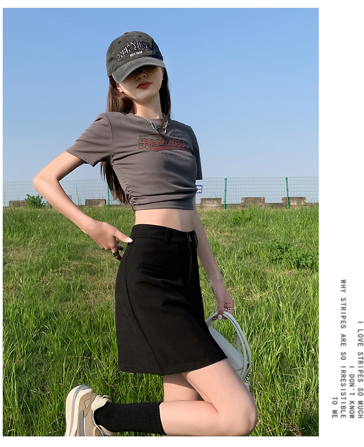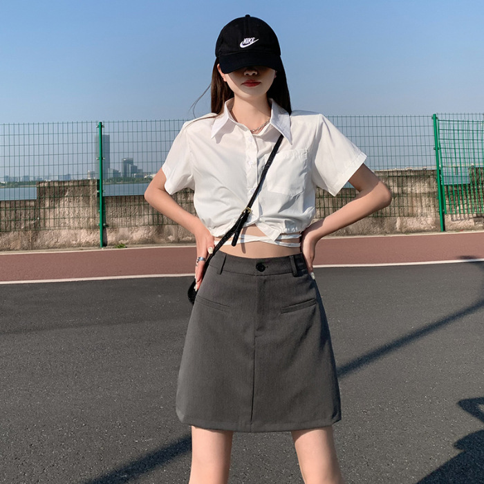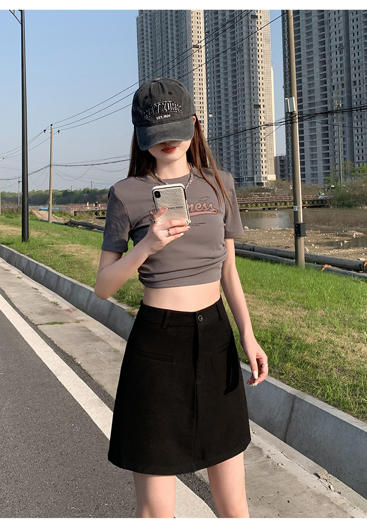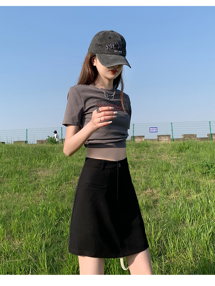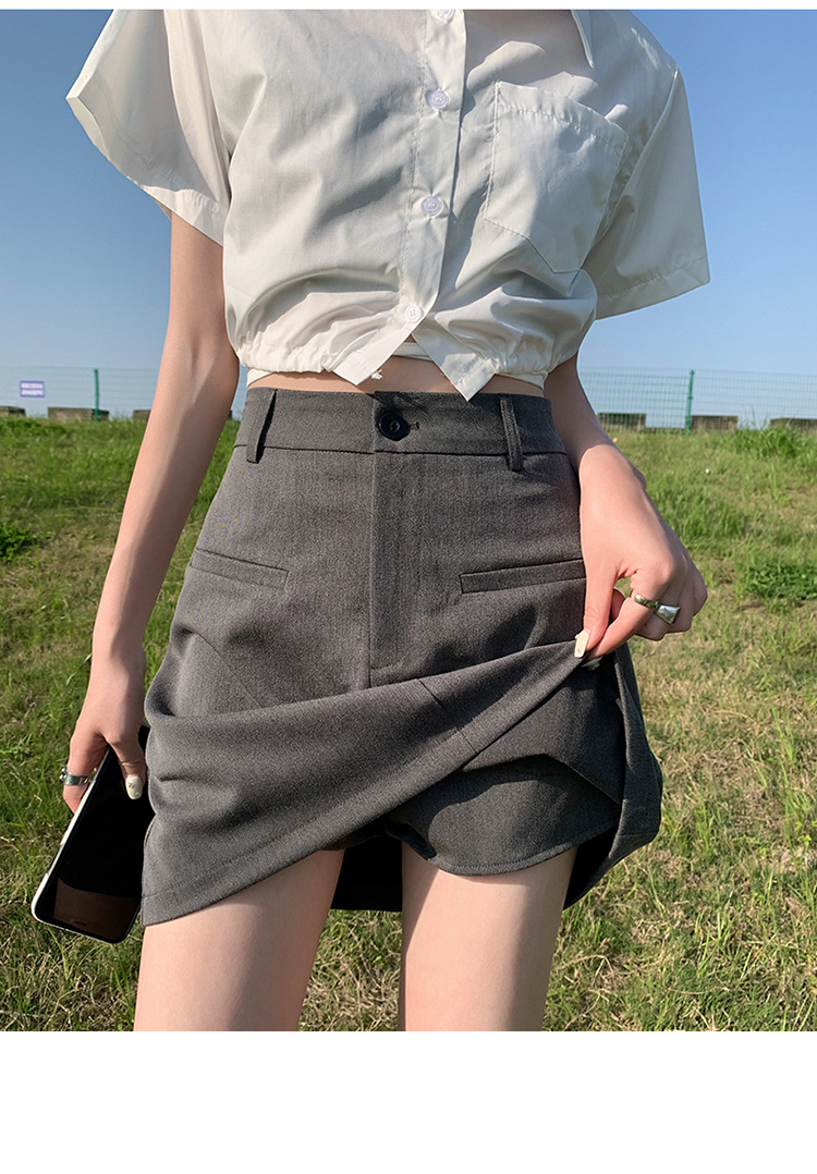 높은 허리 세트 치마 여자 여름 2024 새로운 눈부심 방지 A 라인 스커트 작은 느슨한 슬리밍 하프 길이 스커트스토어 가기