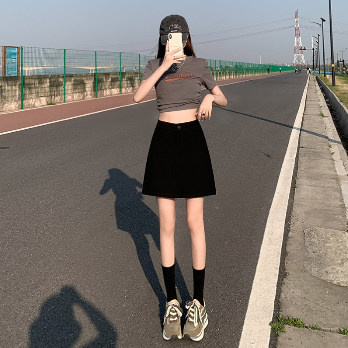 높은 허리 세트 치마 여자 여름 2024 새로운 눈부심 방지 A 라인 스커트 작은 느슨한 슬리밍 하프 길이 스커트