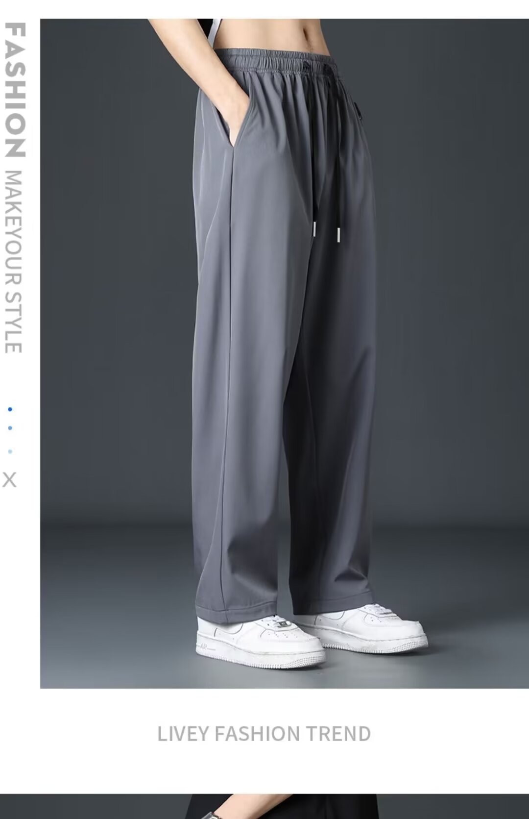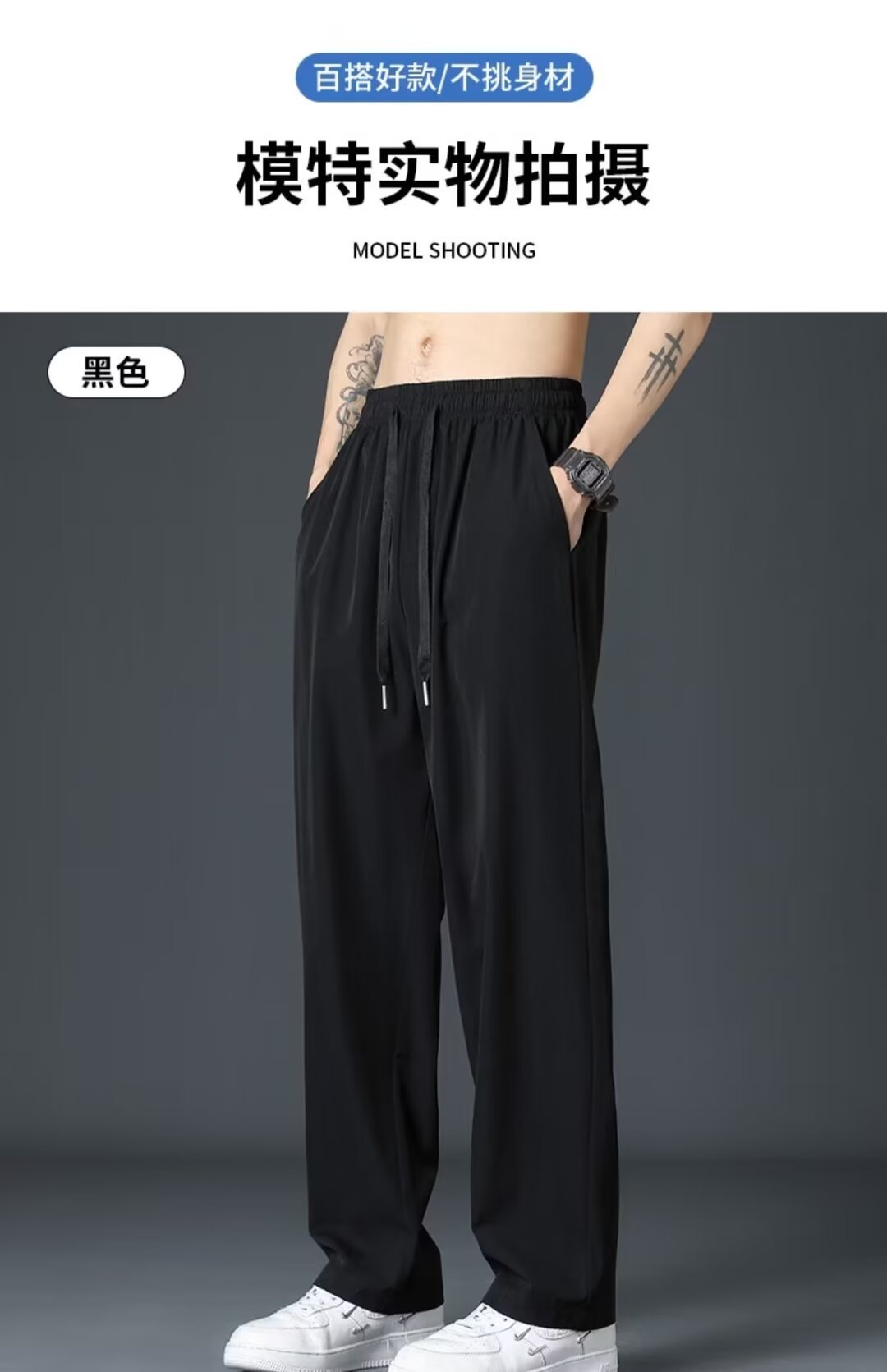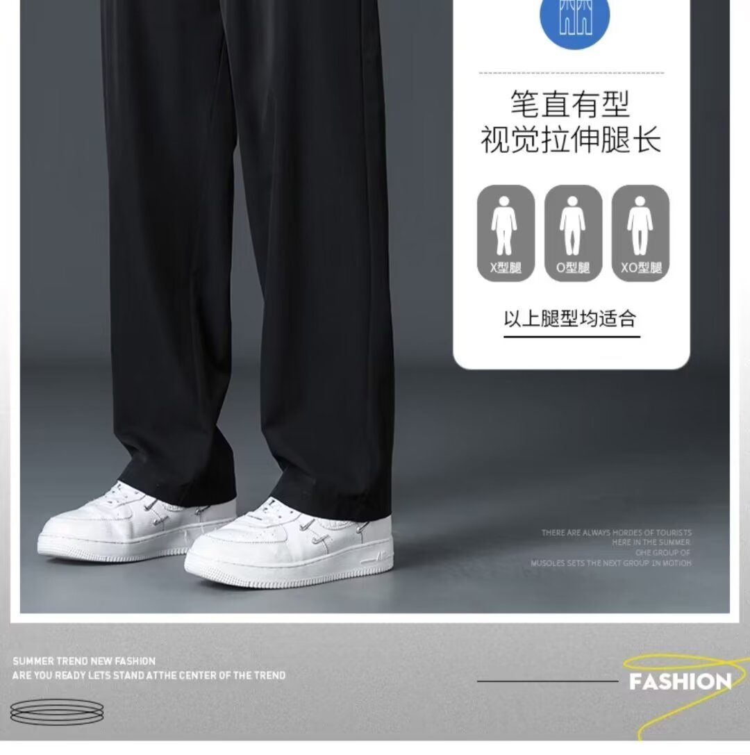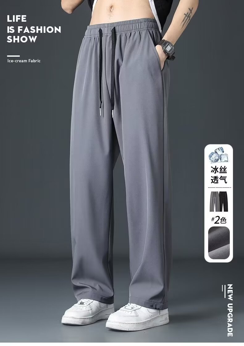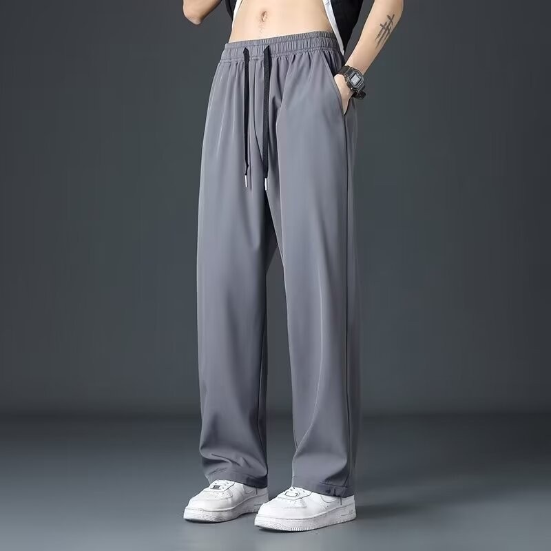 Staggedness Waist Drawstring 아이스 실크 스트레이트 바지 소년 여름 새로운 디핑 솔리드 컬러 느슨한 넓은 다리 캐주얼 바지스토어 가기