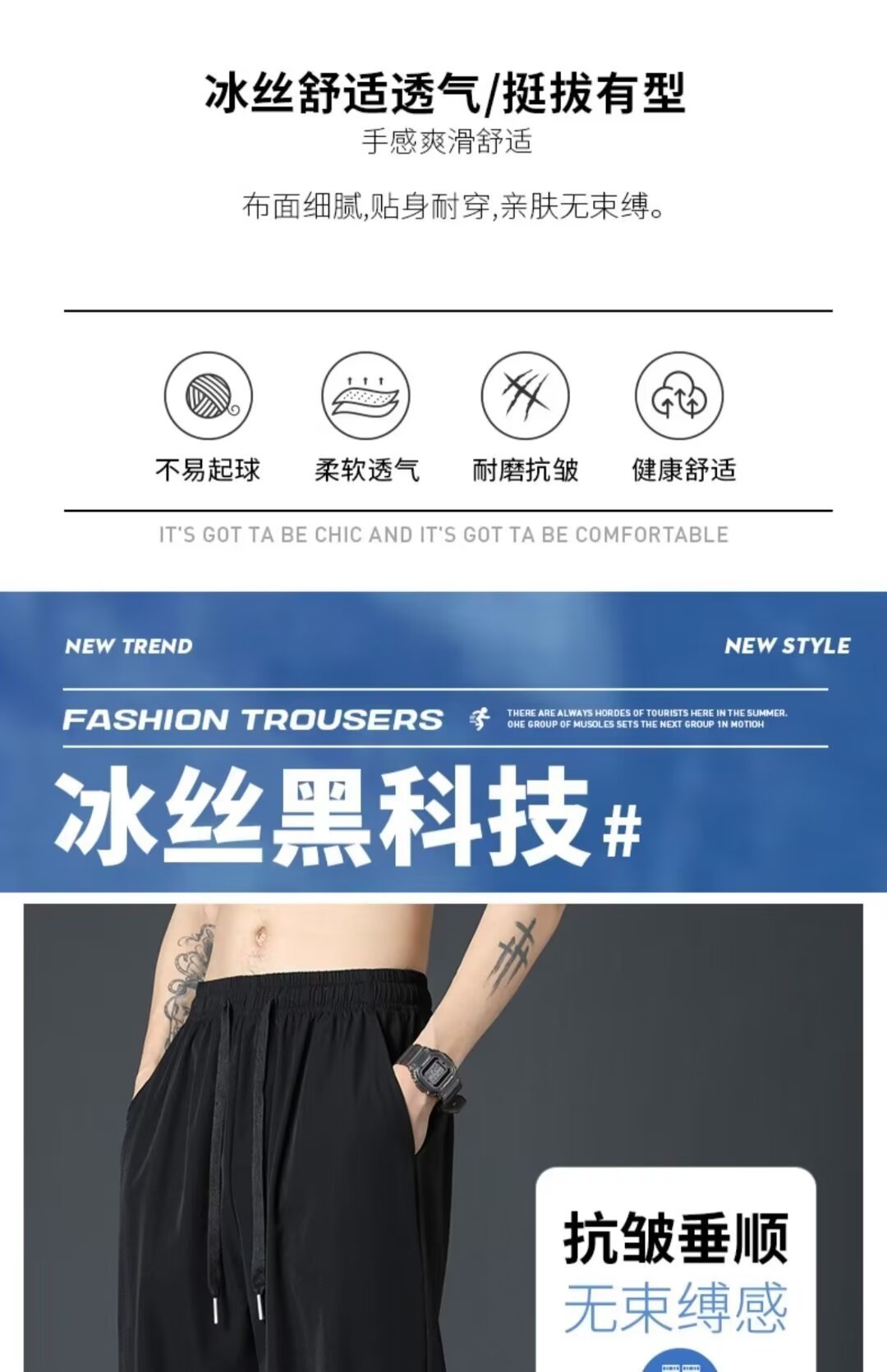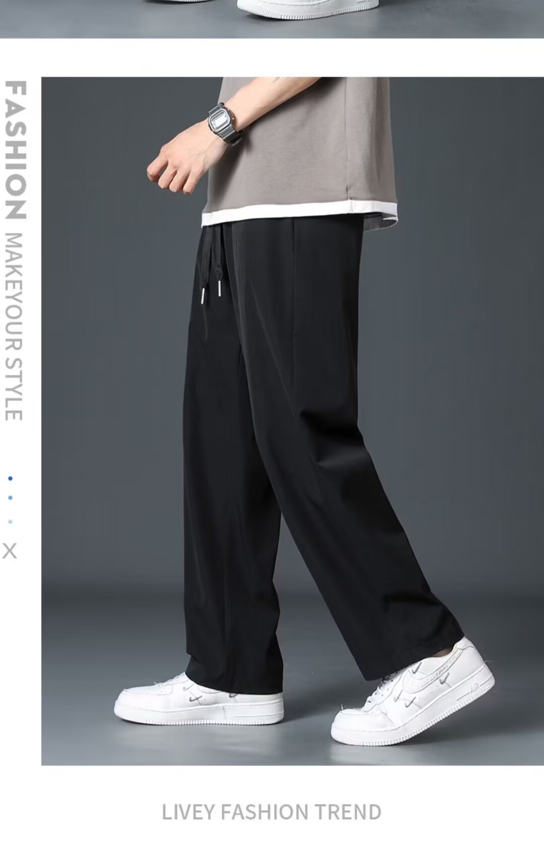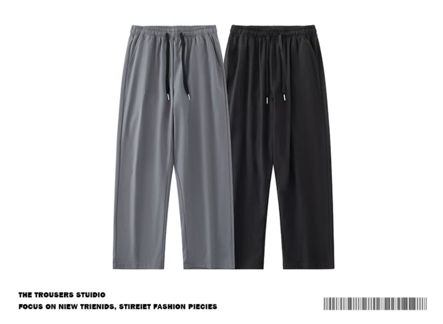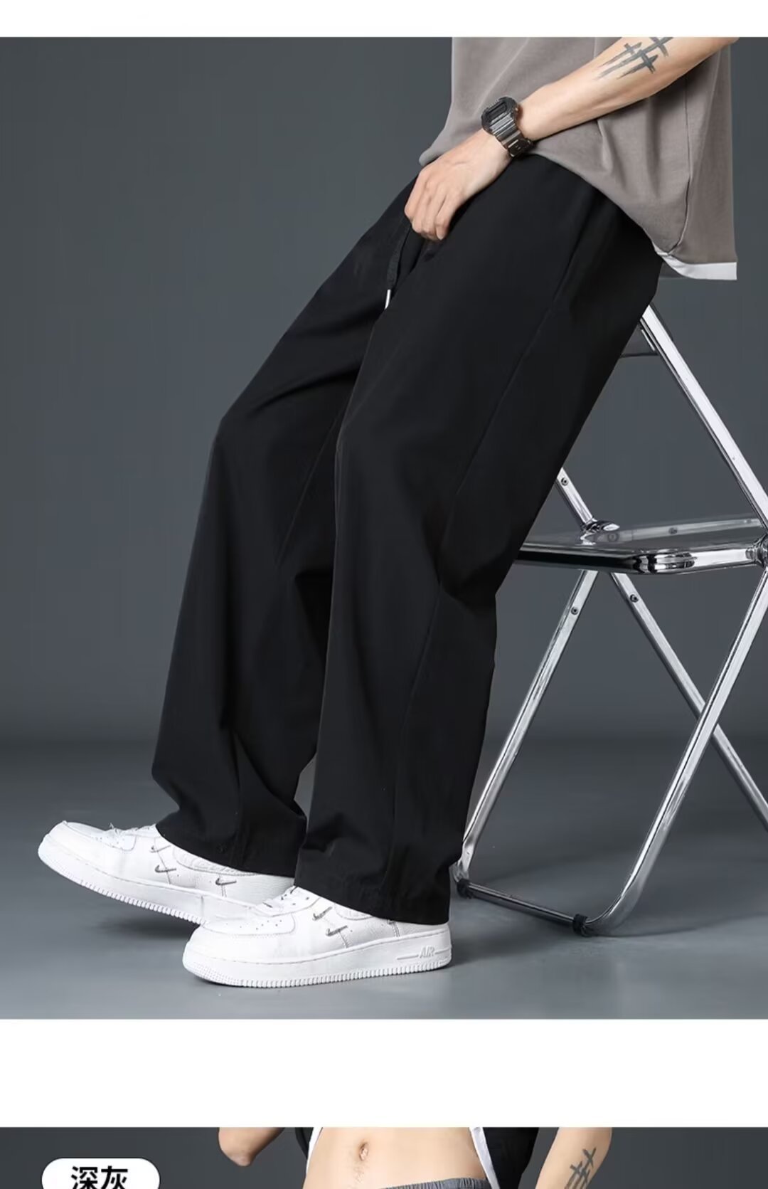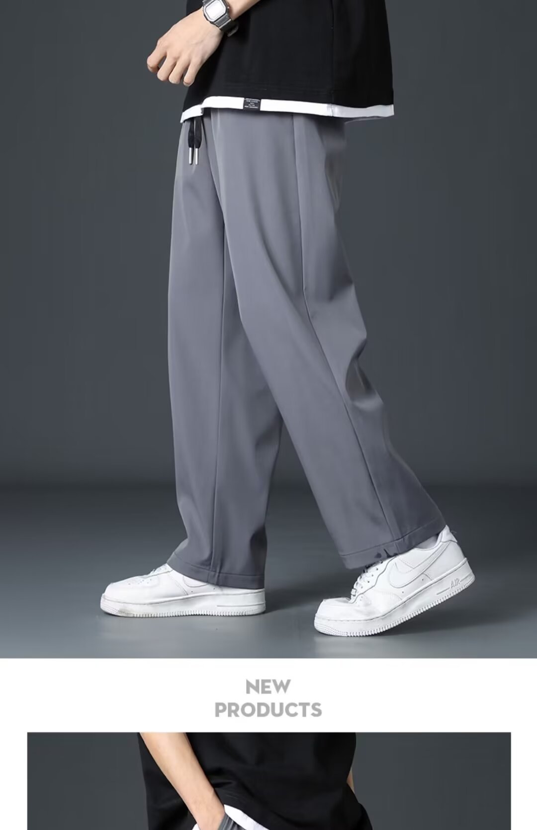 Staggedness Waist Drawstring 아이스 실크 스트레이트 바지 소년 여름 새로운 디핑 솔리드 컬러 느슨한 넓은 다리 캐주얼 바지스토어 가기