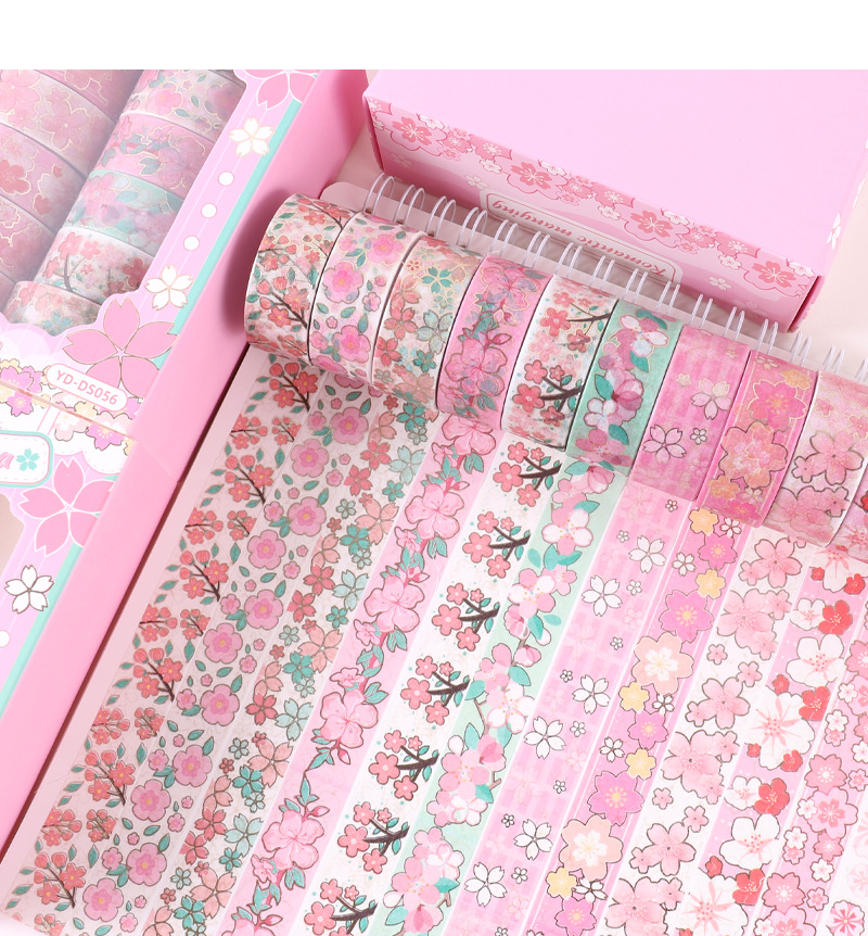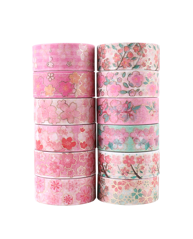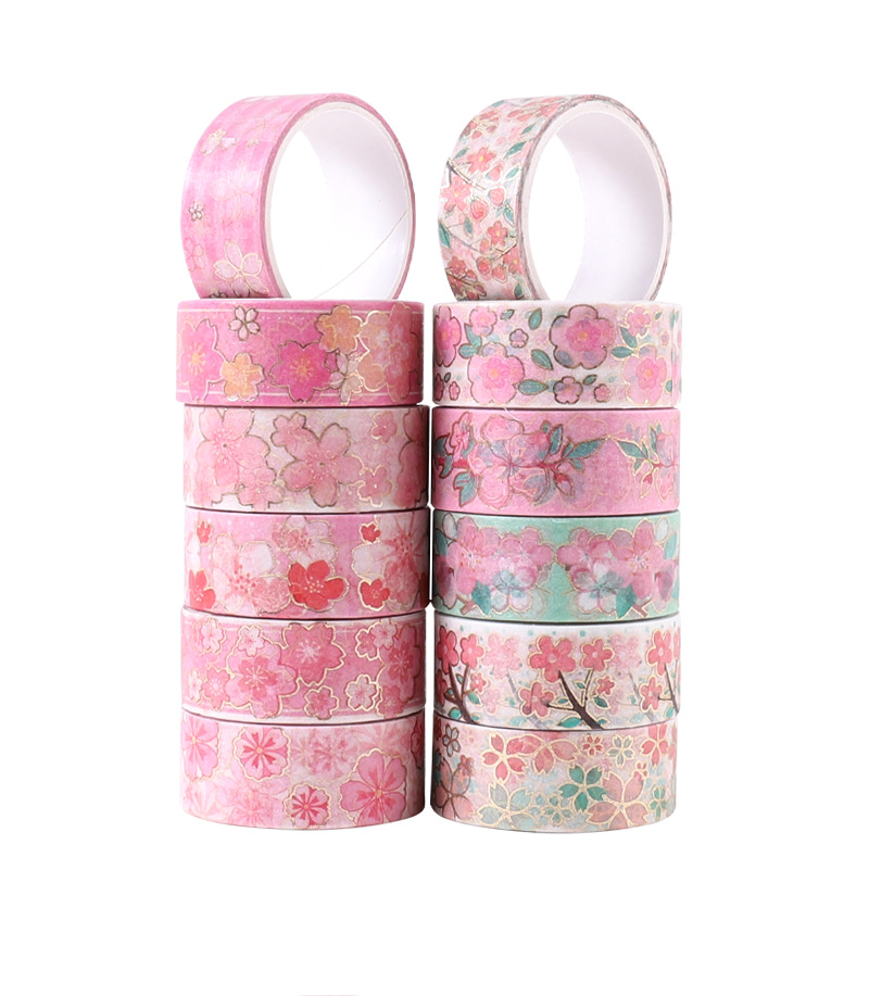Yida 국경 4 월 체리 핑크 12 롤 세트 청동 및 종이 테이프 손 계정 장식 테이프스토어 가기