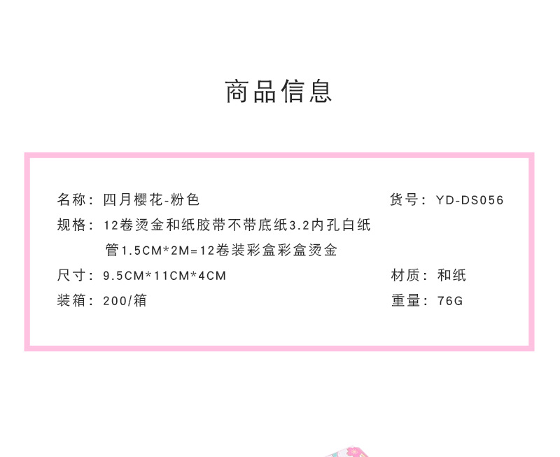 Yida 국경 4 월 체리 핑크 12 롤 세트 청동 및 종이 테이프 손 계정 장식 테이프