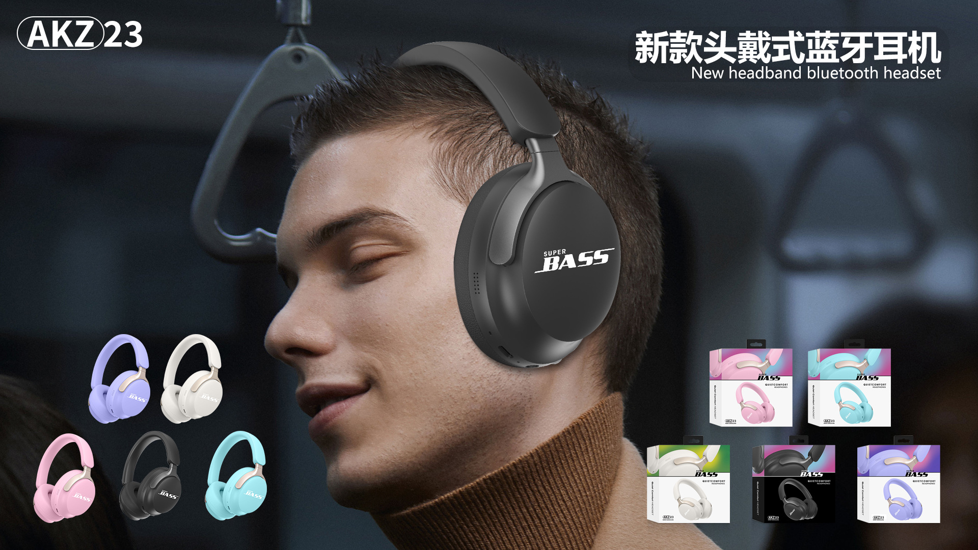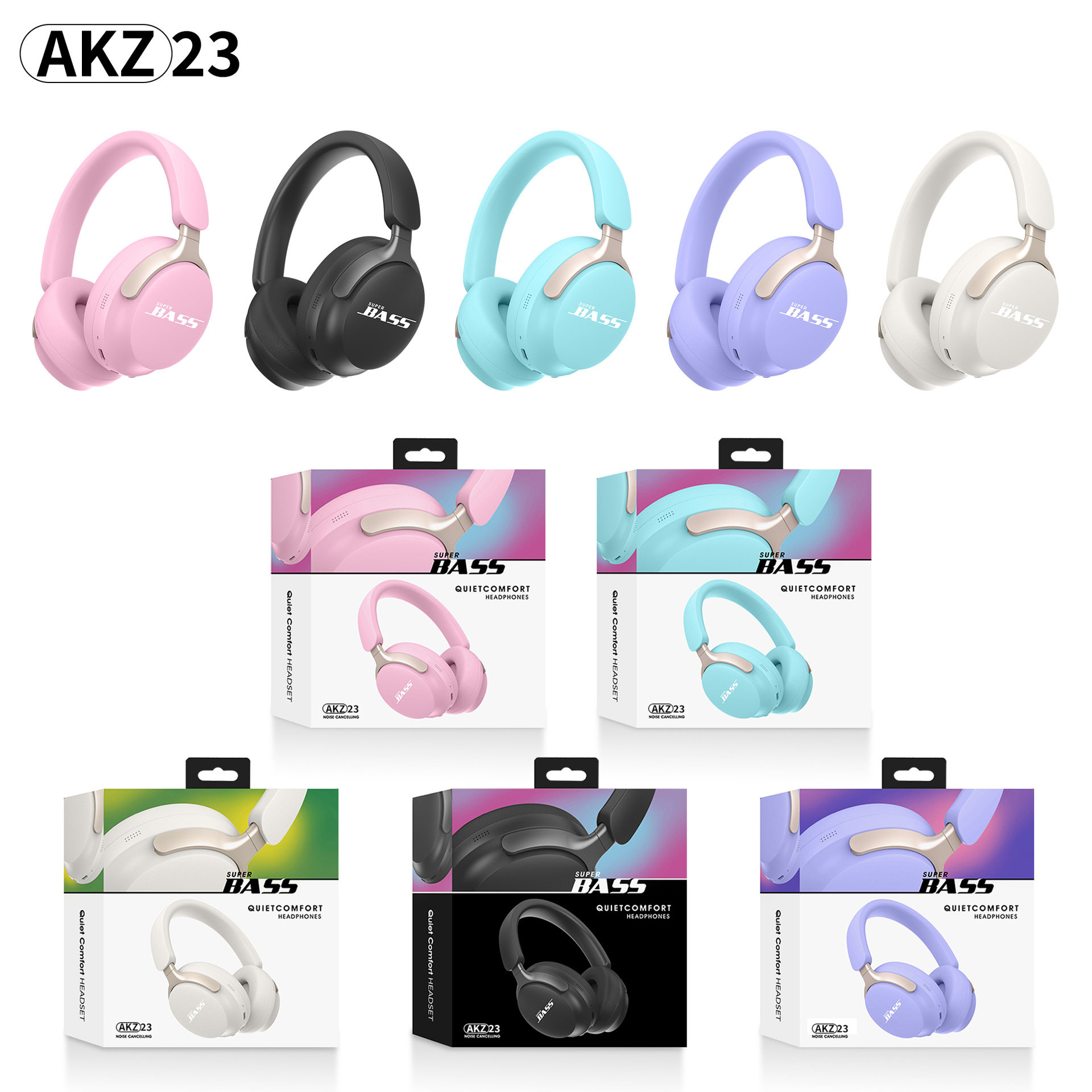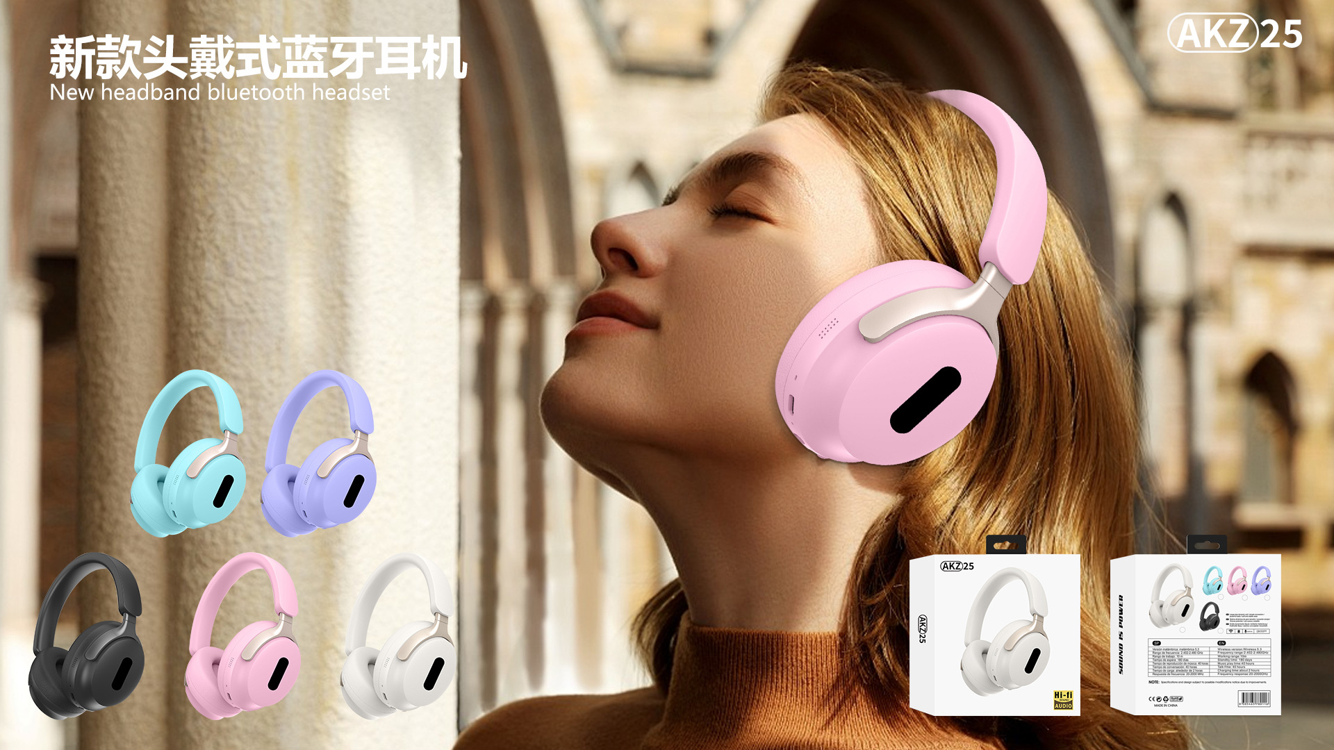 2024 국경 무선 새로운 블루투스 헤드셋 마카롱 컬러 헤드셋 AKZ-23 카드 FM스토어 가기