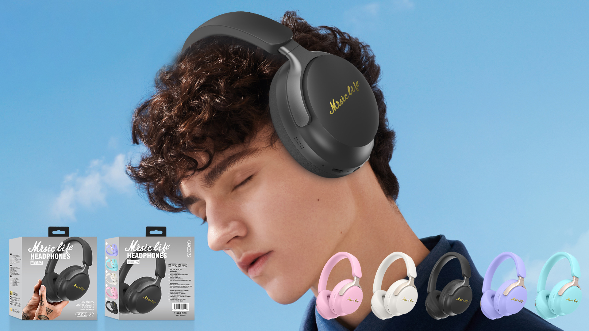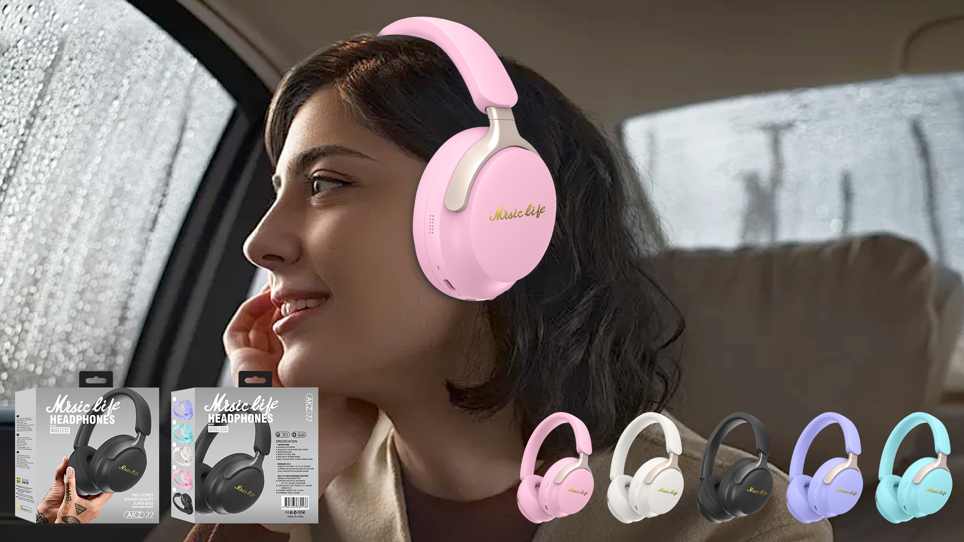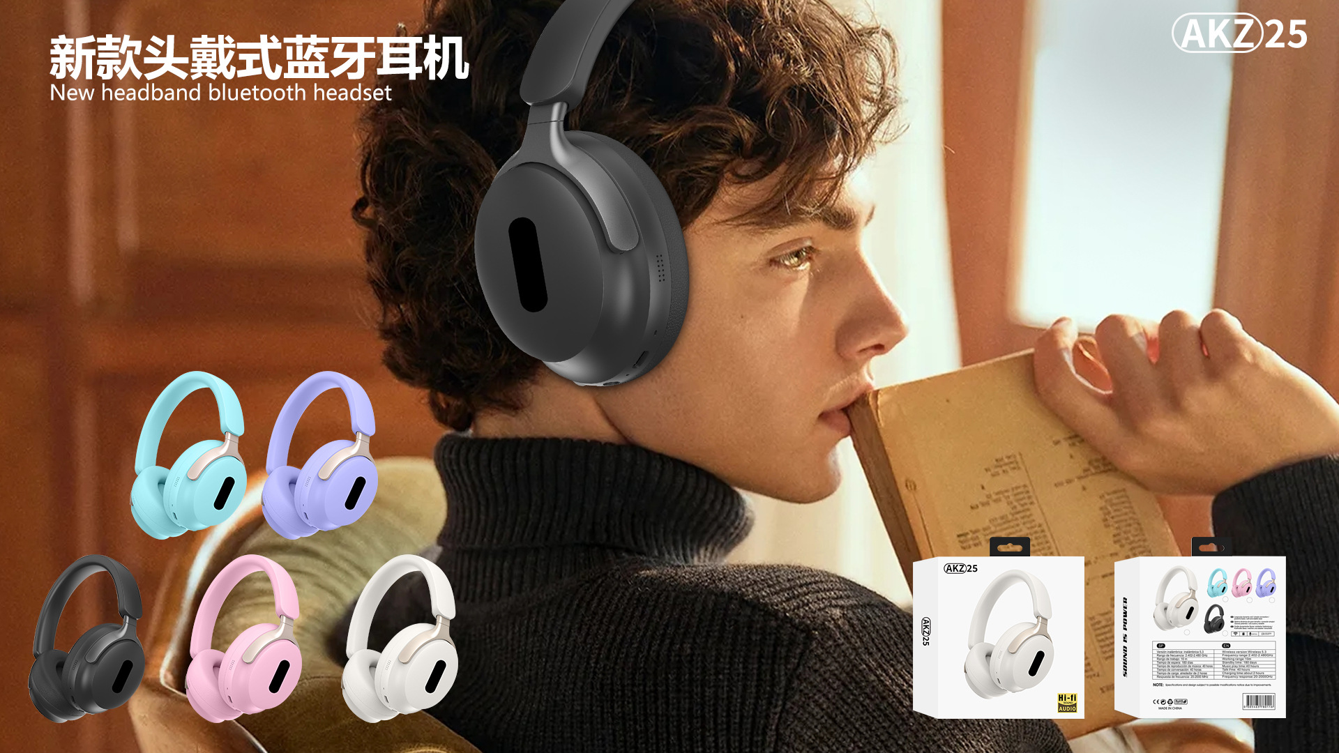 2024 국경 무선 새로운 블루투스 헤드셋 마카롱 컬러 헤드셋 AKZ-23 카드 FM스토어 가기