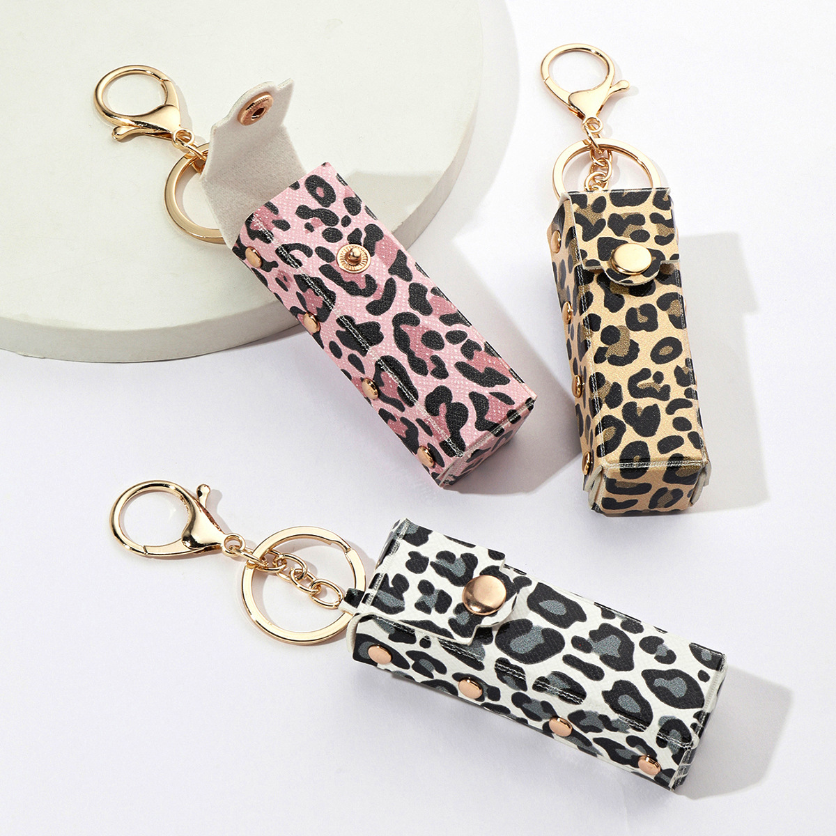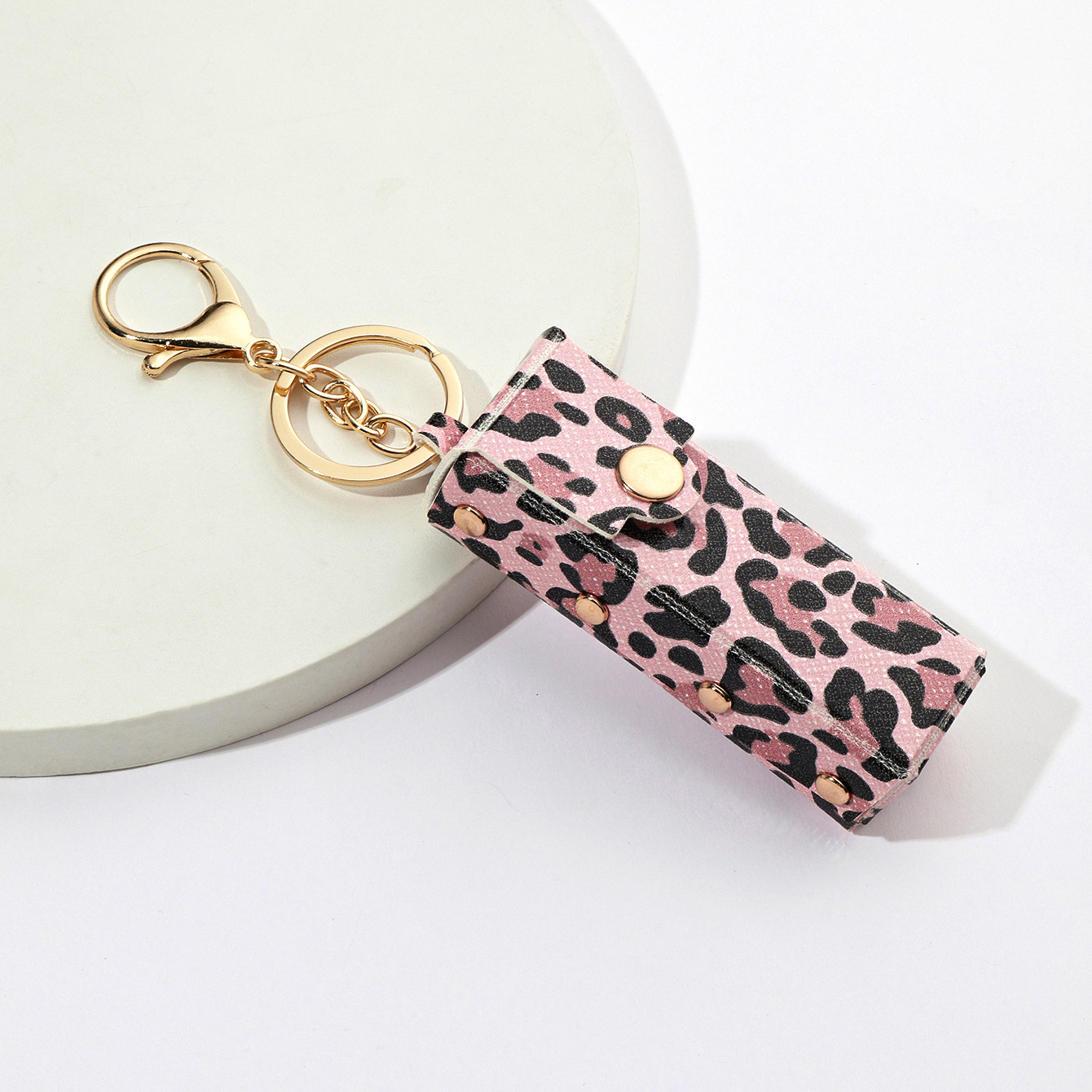 레오파드 무늬 금속 리벳 입 빨간 봉투 키 체인 PU 가죽 제품 키 휴대 전화 가방 펜던트 라이브 작은 선물스토어 가기