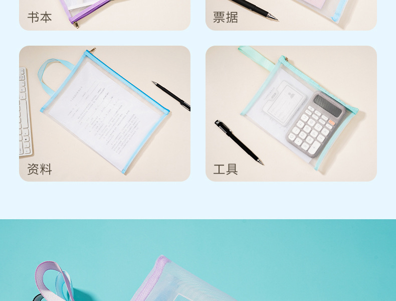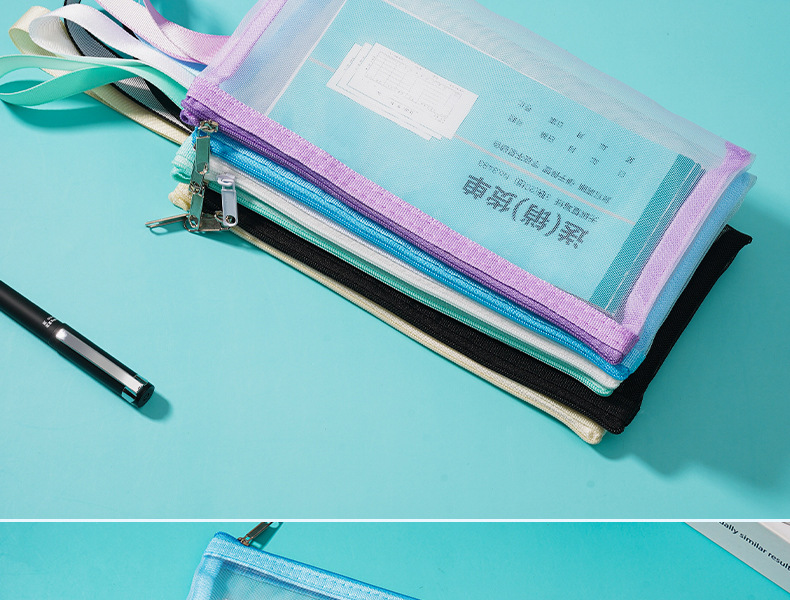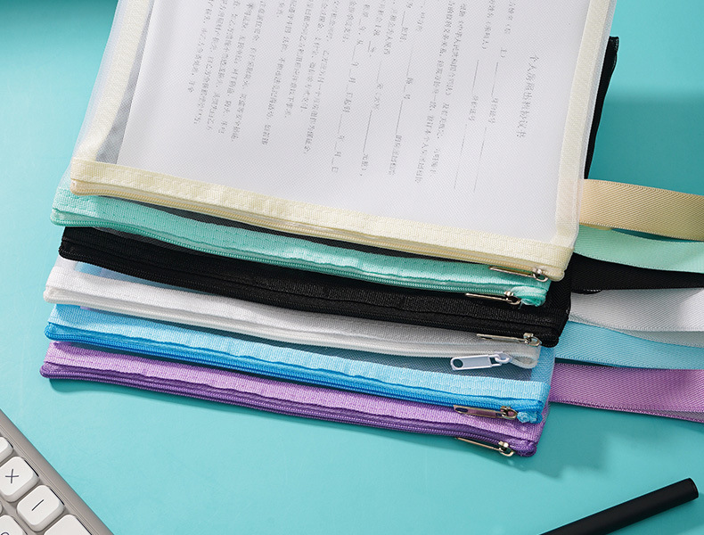 A4 문서 가방 투명 나일론 메쉬 지퍼 정보 가방 사무실 다기능 문서 영수증 파일 저장 가방