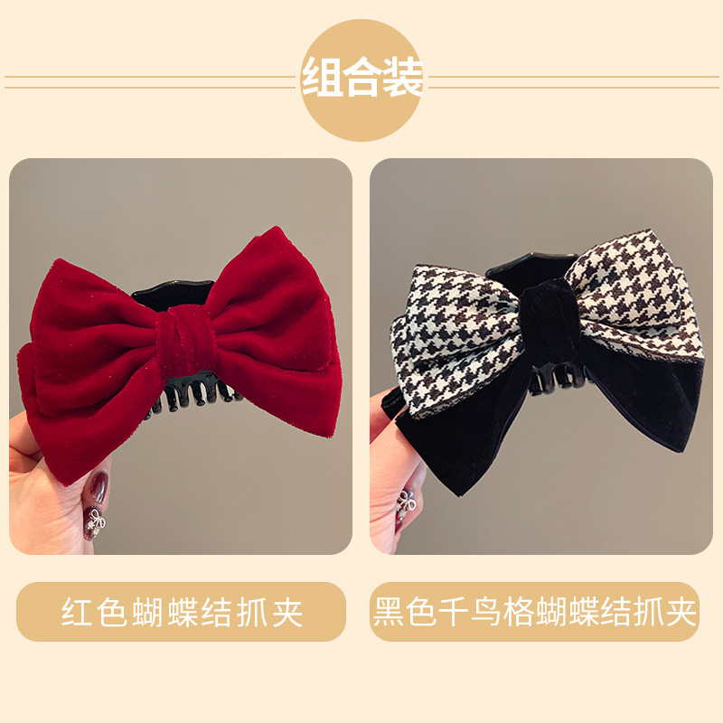 • 빨간색과 검은 색 houndstooth 그립 클립 2 조각 세트 2 조각 세트