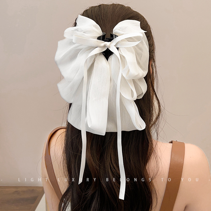 활 머리핀 여성용 거즈 2024 새로운 상어 클립 헤어 헤드 리본의 뒷면을 잡아 클립 헤어 액세서리 클립 헤드웨어