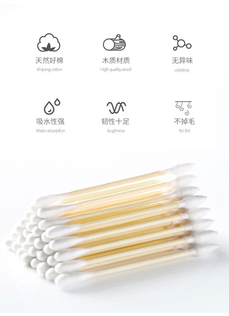 귀 청소용 양면 면봉, 가정용 일회용 뾰족한 대나무 면봉, 면봉, 생리대, 메이크업 리무버 박스