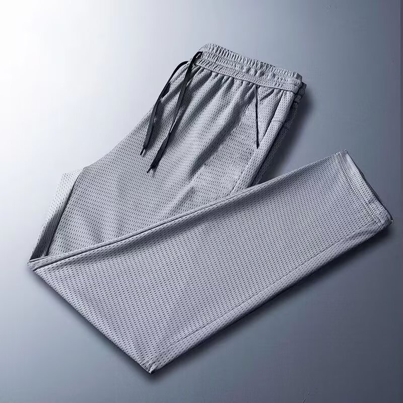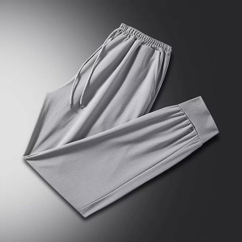 여름 아이스 실크 남성 스포츠 캐주얼 바지 얇은 느슨한 에어컨 바지 9 메쉬 스트레칭 머리카락