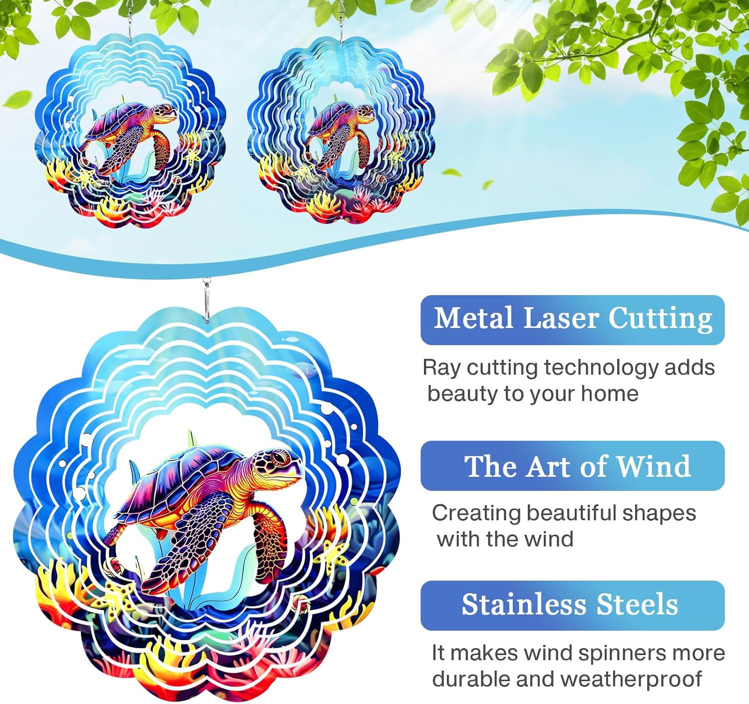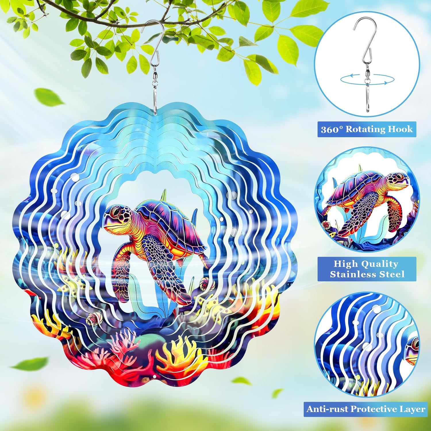 거북이 바람 스피너 3D 교수형 거북이 장식 12 인치 금속 바람 동적 조각 장식 선물